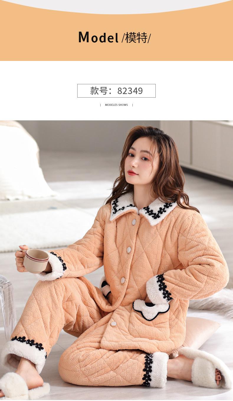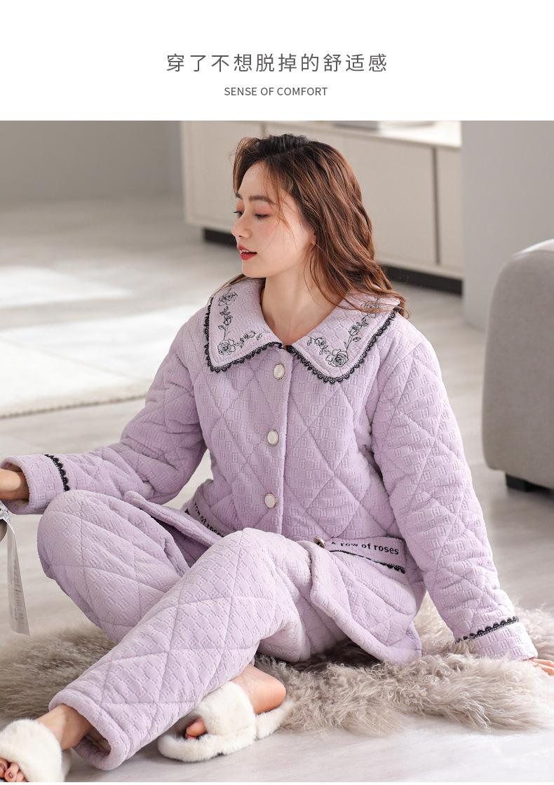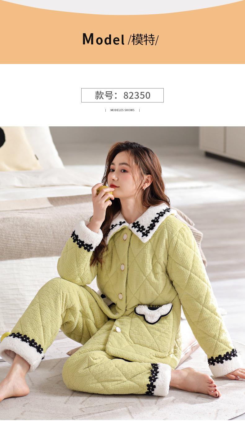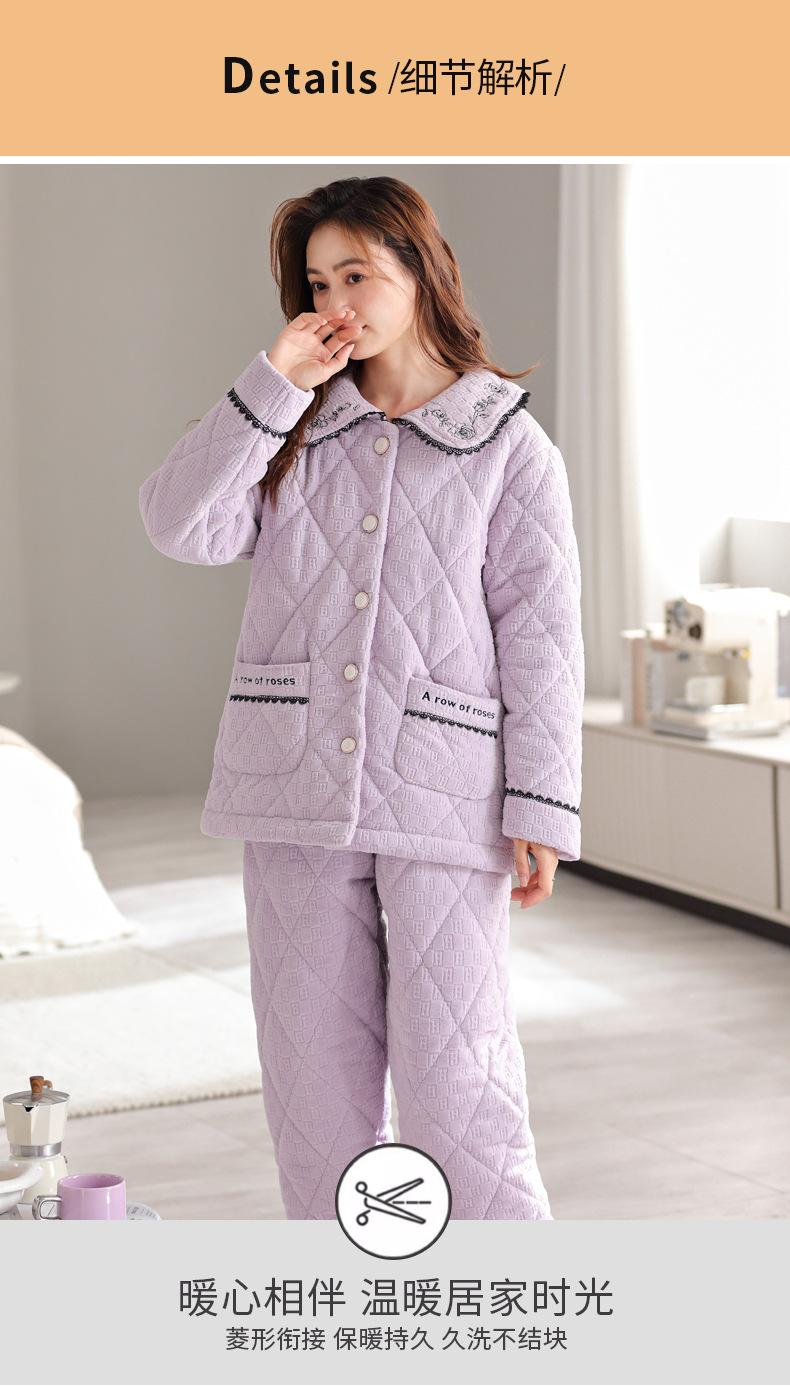 Pijama de invierno nuevo para mujer, cárdigan grueso acolchado de tres capas cálido, estilo casual simple, ropa de casa, traje de mujer