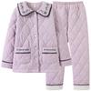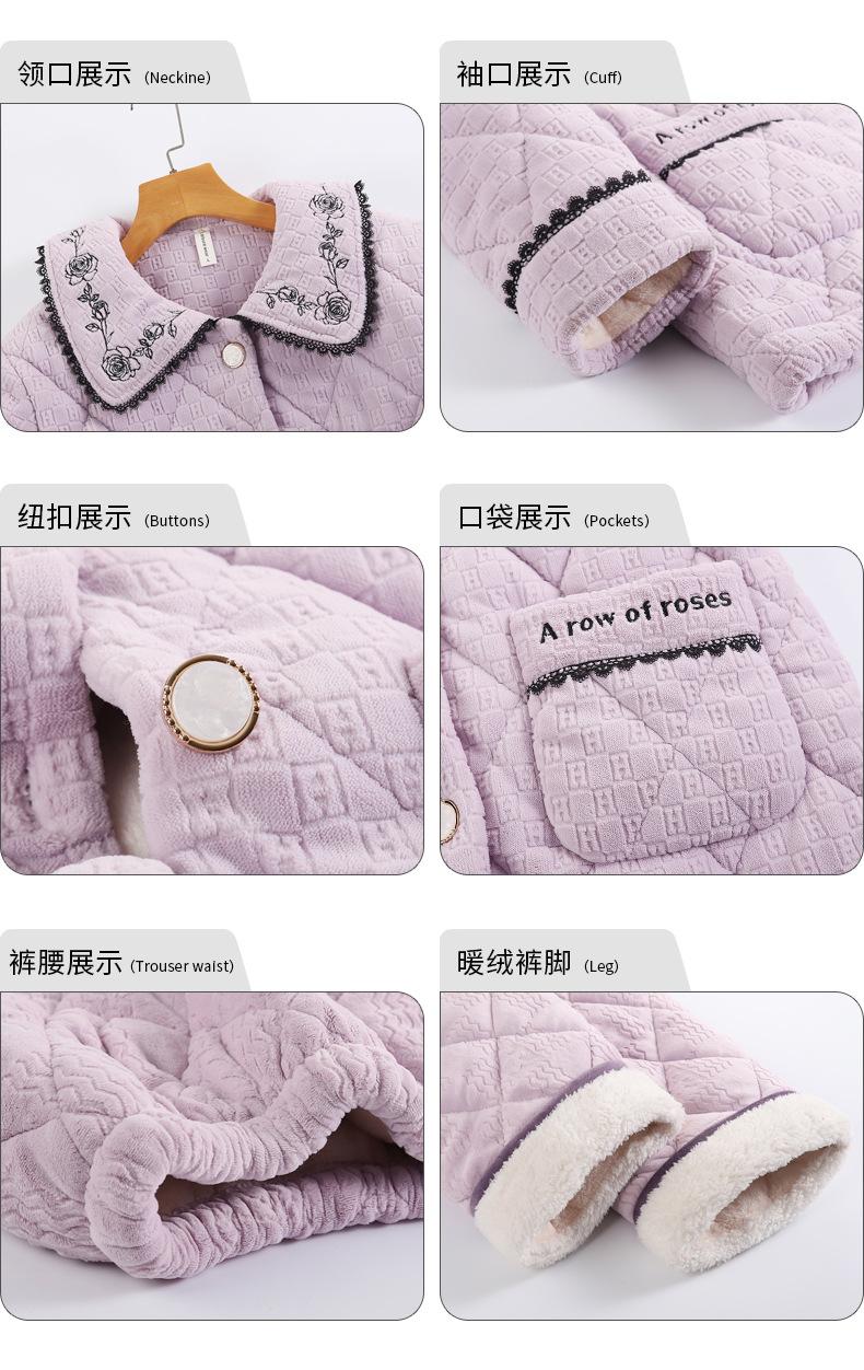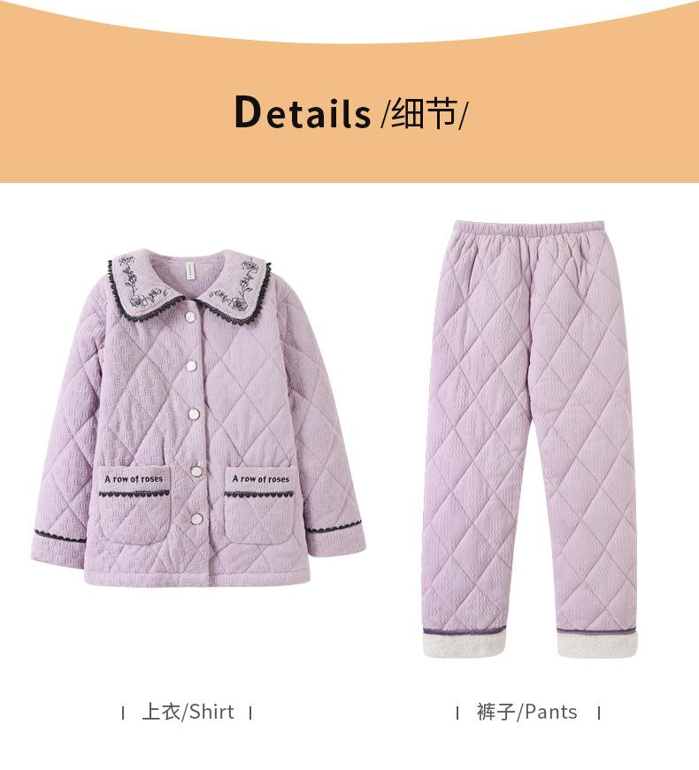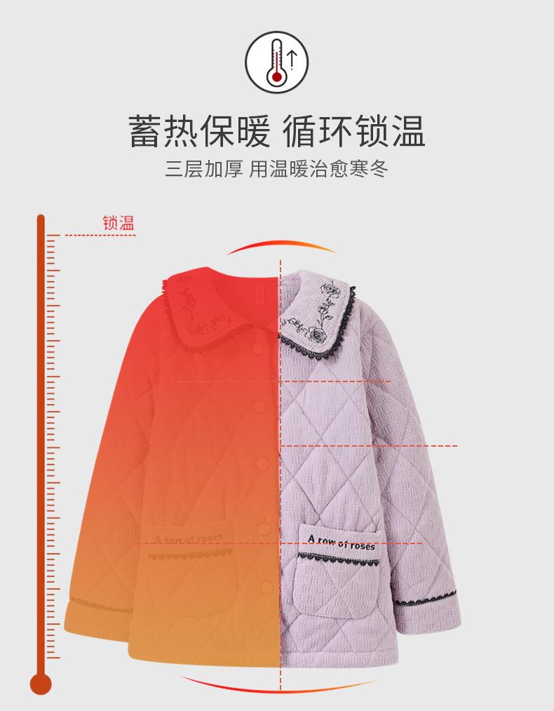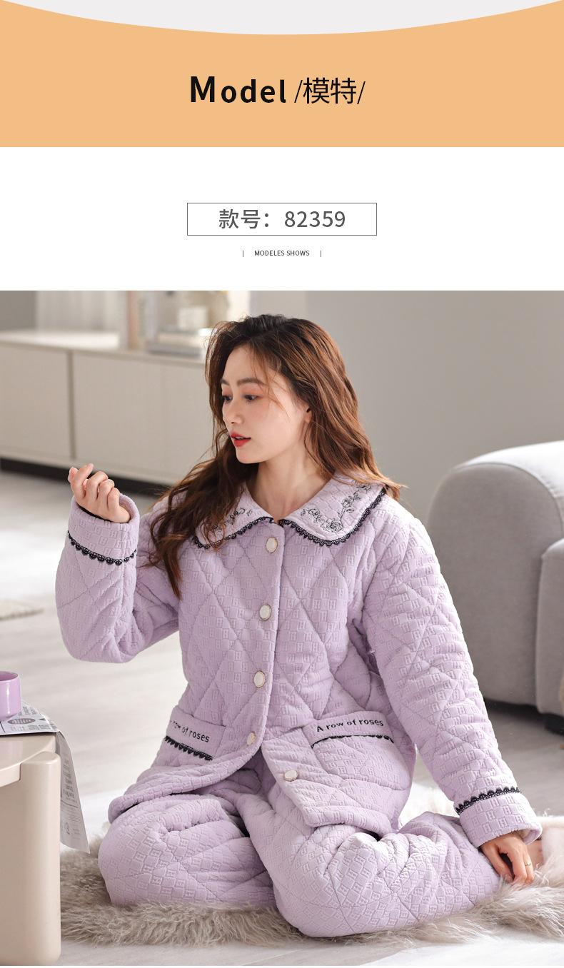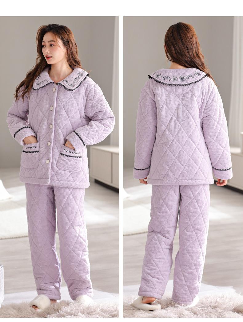 Pijama de invierno nuevo para mujer, cárdigan grueso acolchado de tres capas cálido, estilo casual simple, ropa de casa, traje de mujer