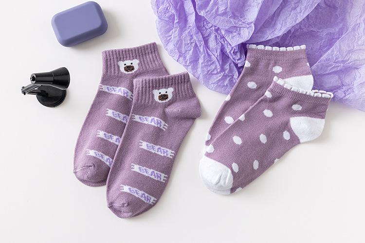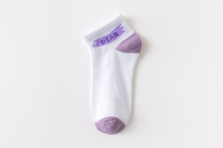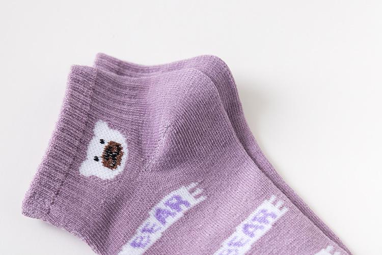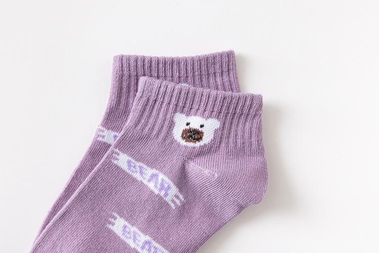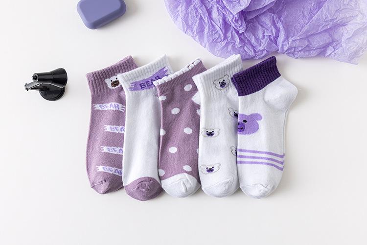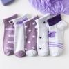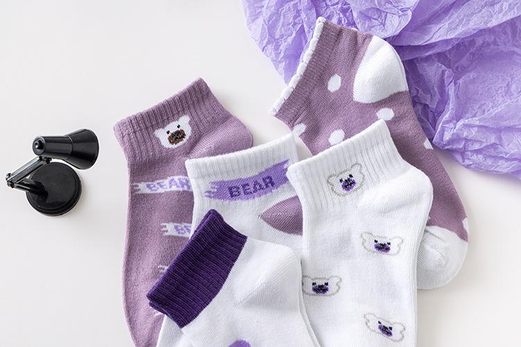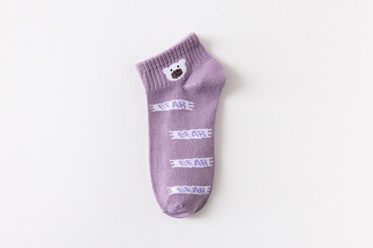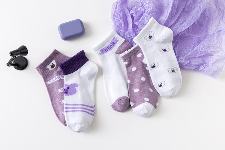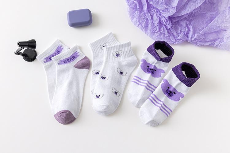 Calcetines finos de verano para mujer, estilo japonés, con bonitos dibujos de oso morado, de cintura baja, estilo náutico, para estudiantes, deportivos