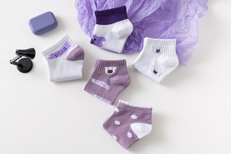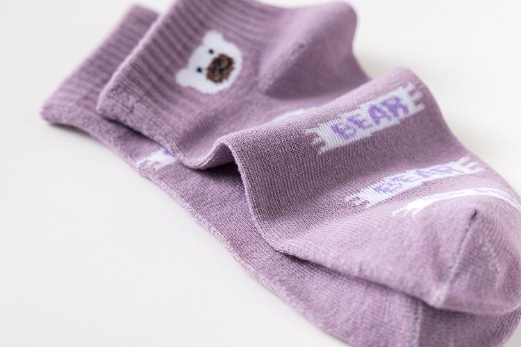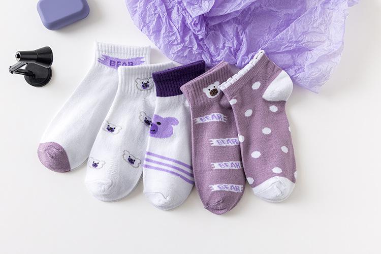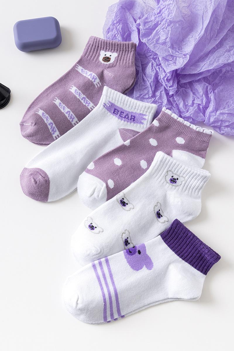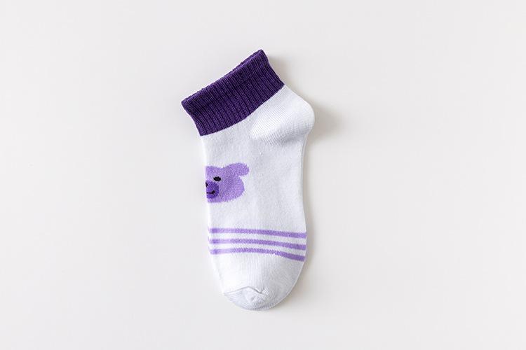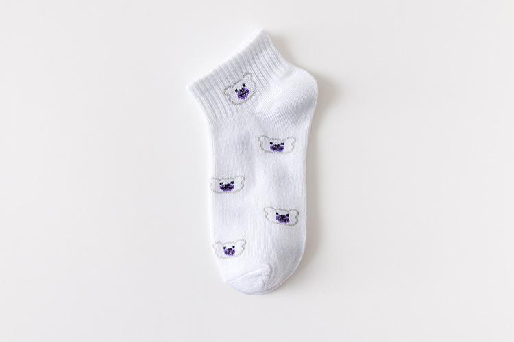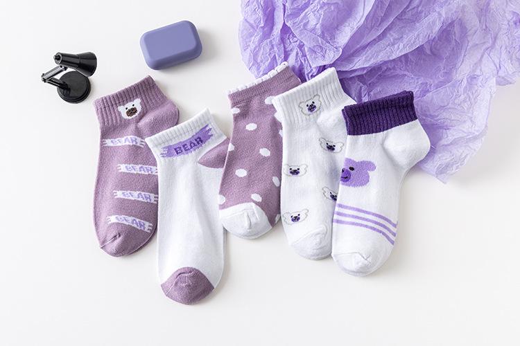 Calcetines finos de verano para mujer, estilo japonés, con bonitos dibujos de oso morado, de cintura baja, estilo náutico, para estudiantes, deportivos