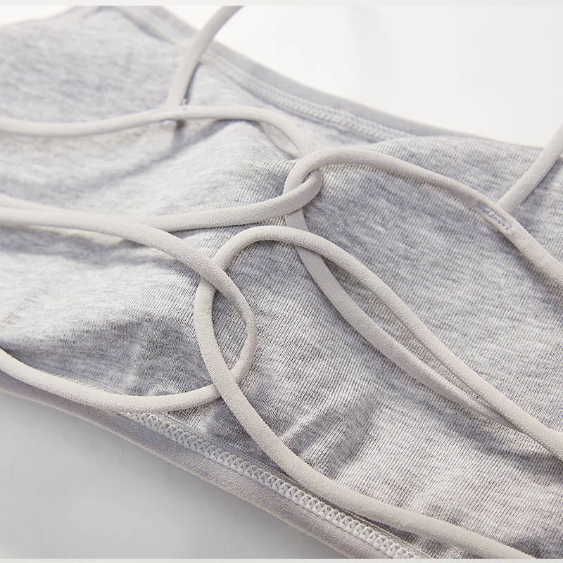 Camisola de primavera y verano con espalda descubierta y cinturón cruzado sexy para mujer, estilo nuevo, con tirantes finos, sin aros de acero.