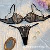 Encaje transparente europeo y americano espalda hermosa pecho pequeño sexy conjunto de brasier para mujer de alta gama ultradelgado talla grande ropa interior ropa interior