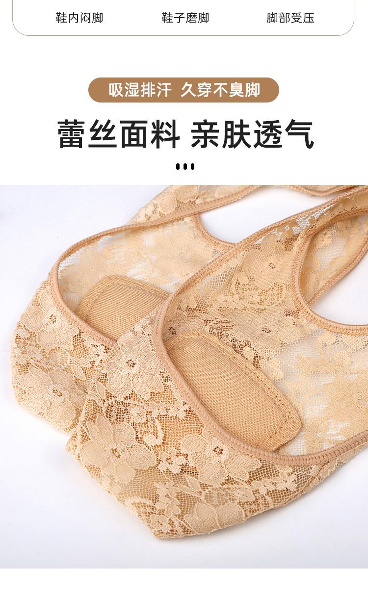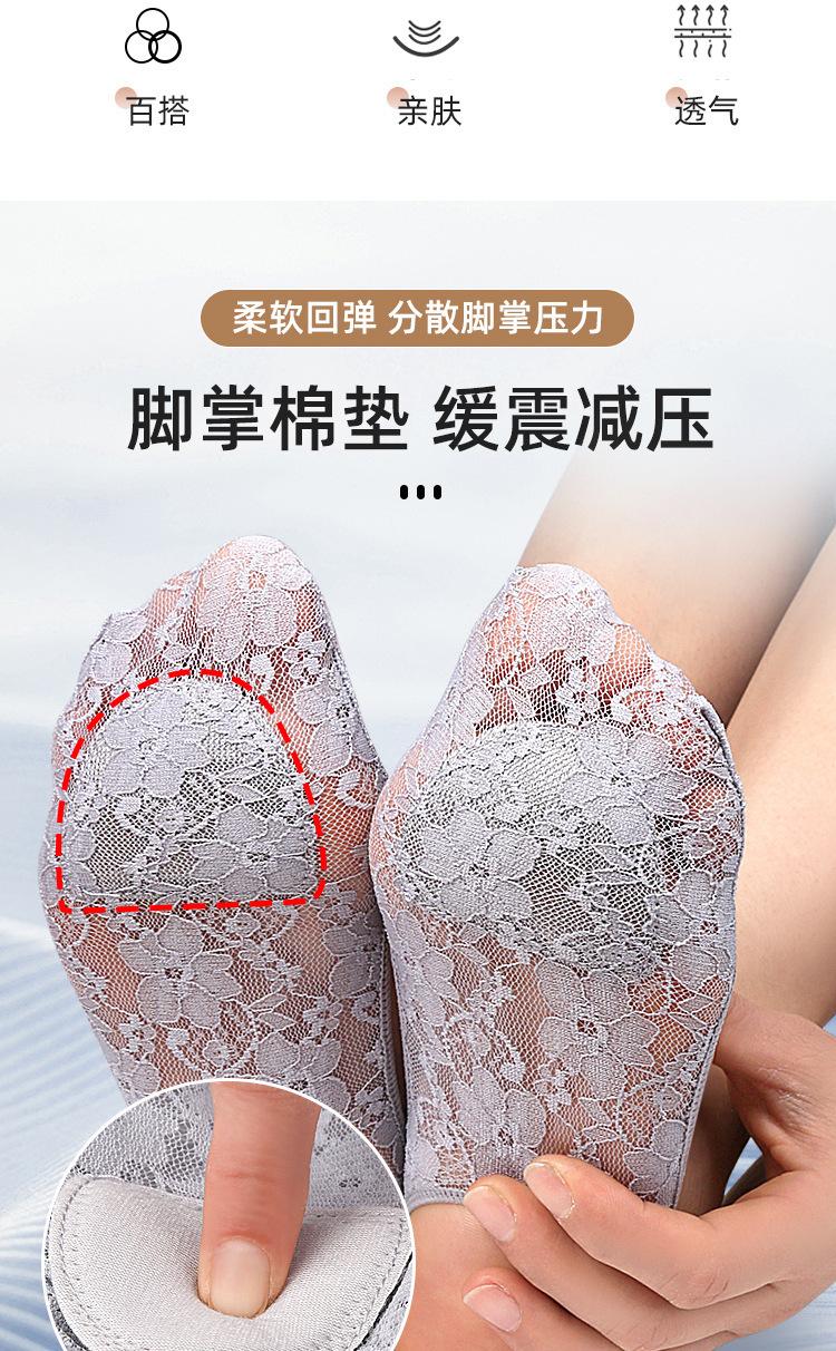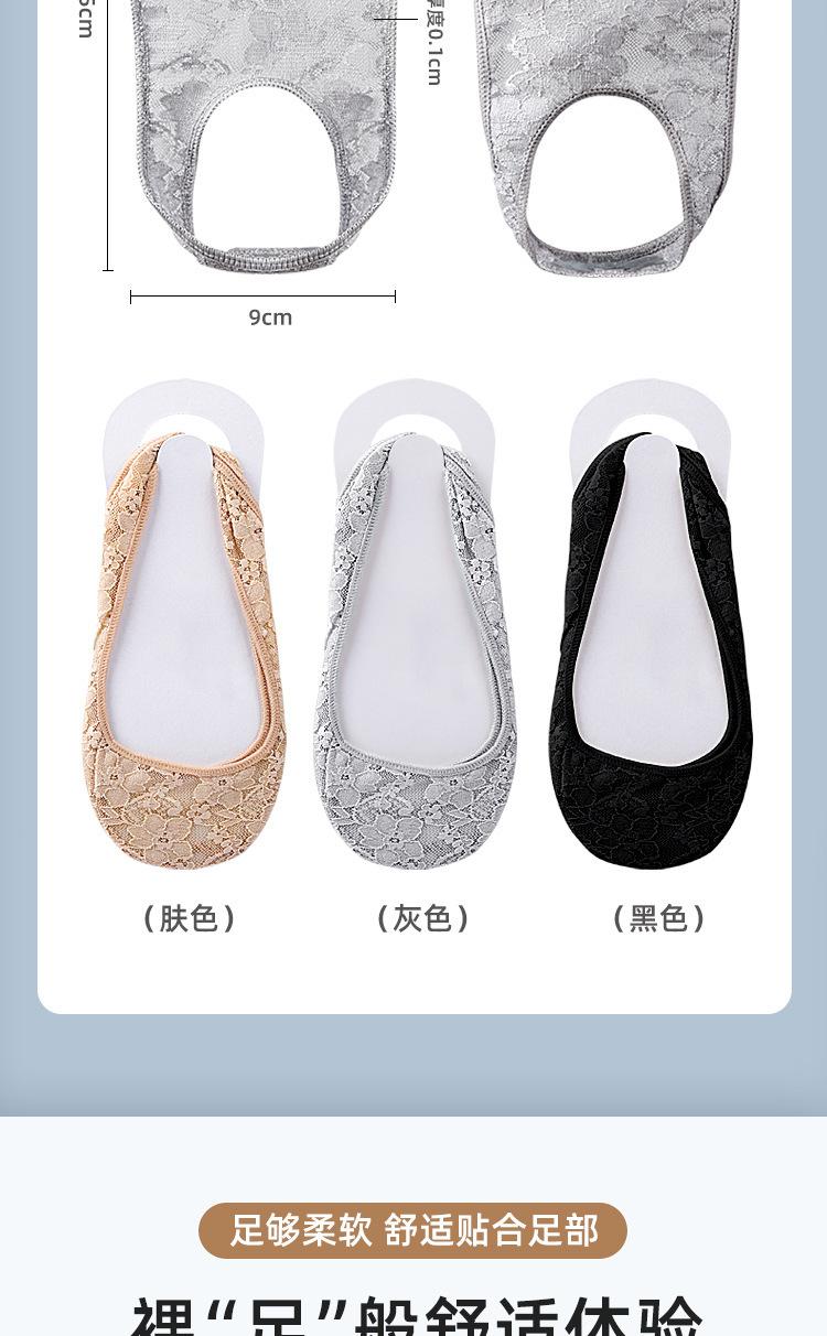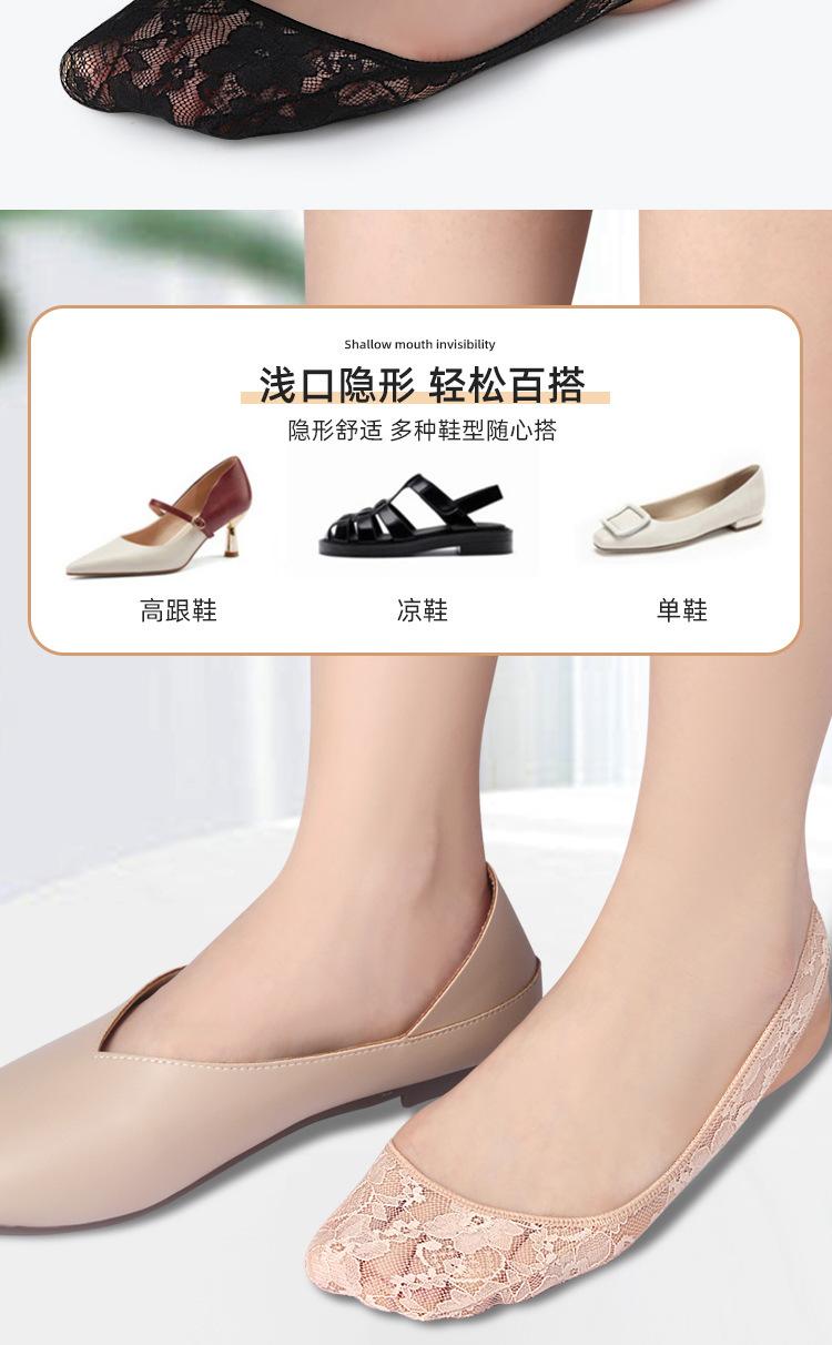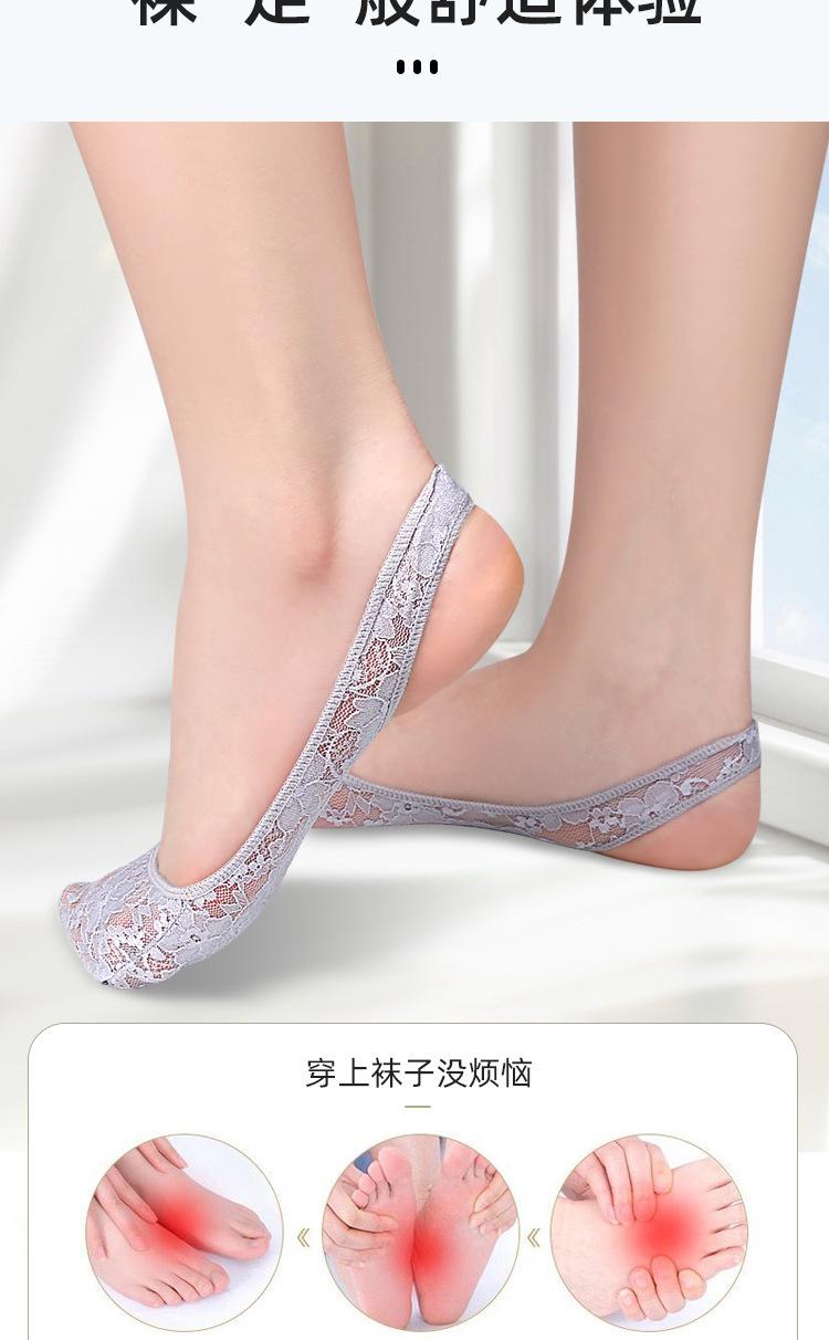 Calcetines náuticos de caña baja para mujer, con encaje calado, almohadilla de esponja, talón de silicona con amortiguación de impactos, antideslizantes, invisibles.