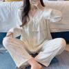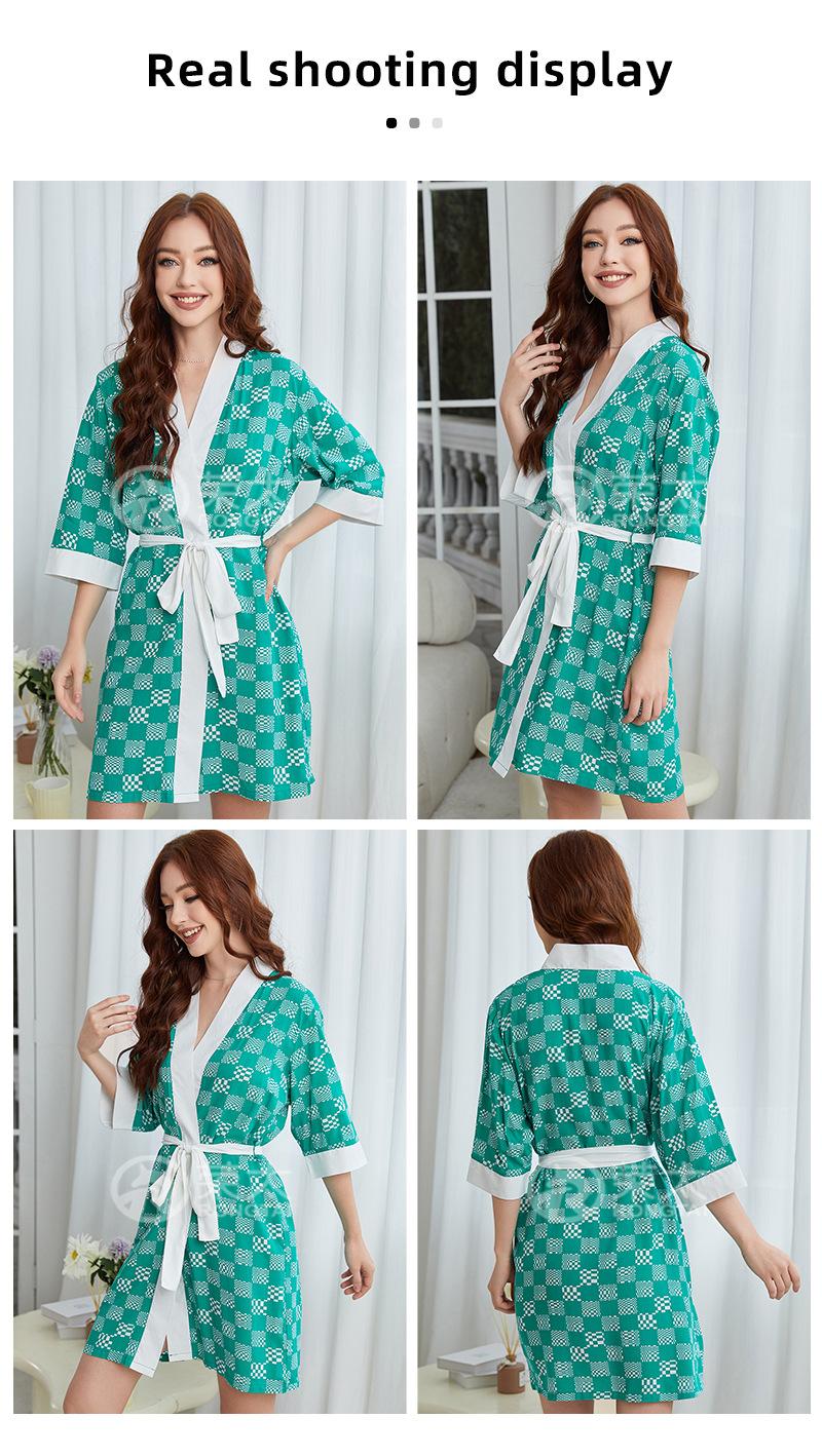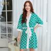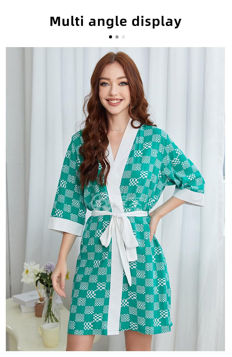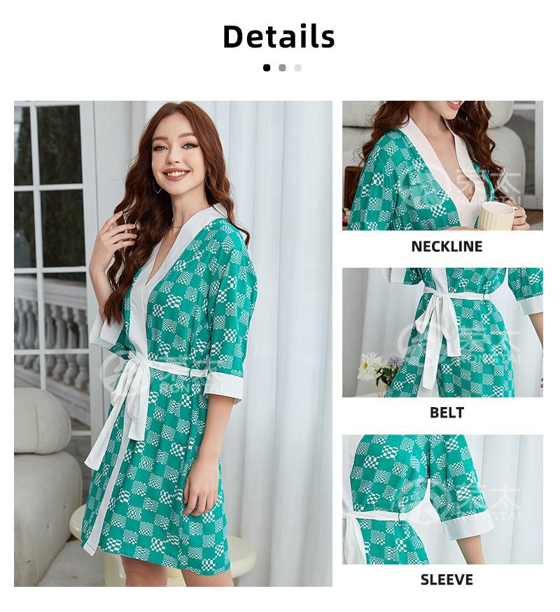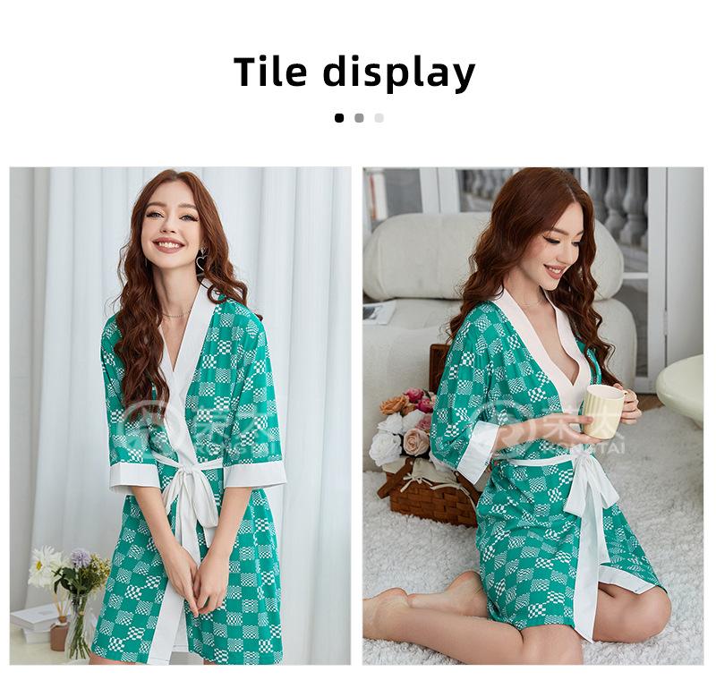 Pijamas Rongtai de primavera y verano con estampado a cuadros y cordones para mujer, ropa de casa, camisón verde fino y transpirable.