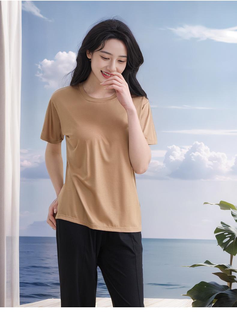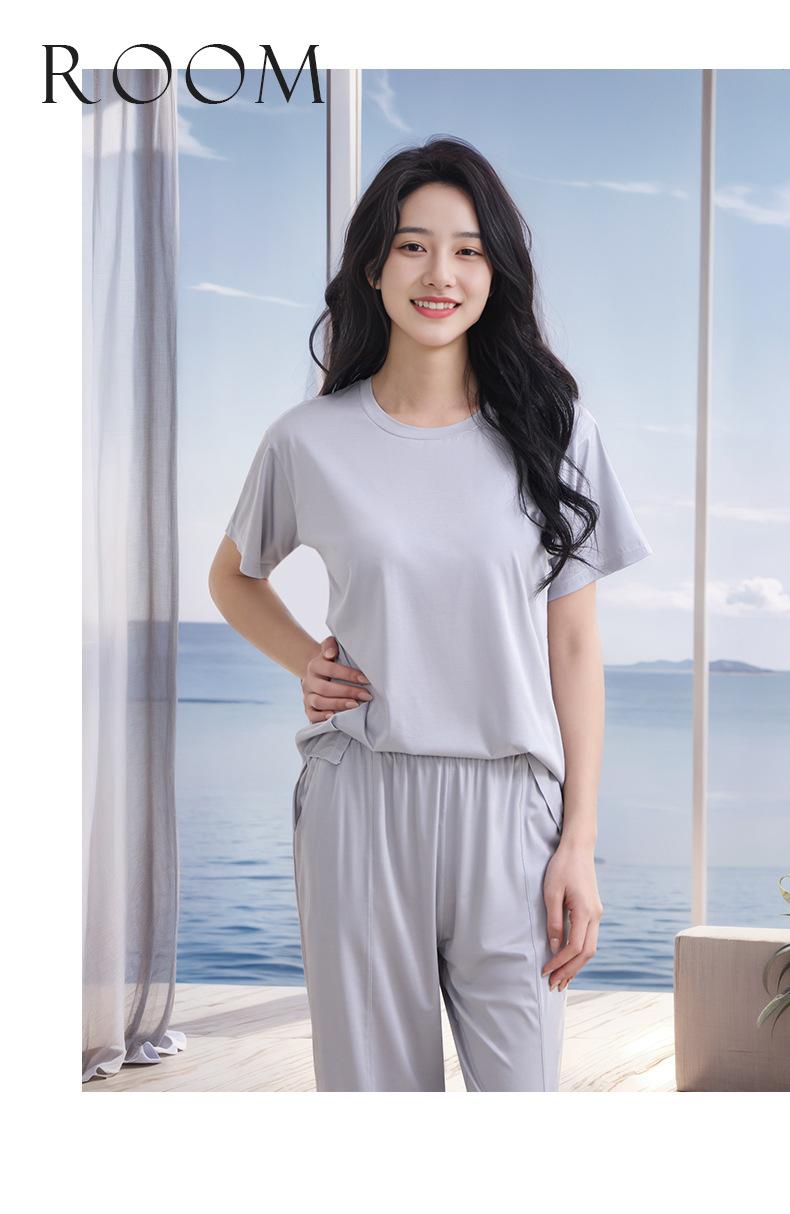[Sin Sostén] Pijama Clase A Verano para Mujer con Almohadilla en el Pecho 100% Modal Almohadilla en el Pecho Integrada Ropa para el Hogar Mujer