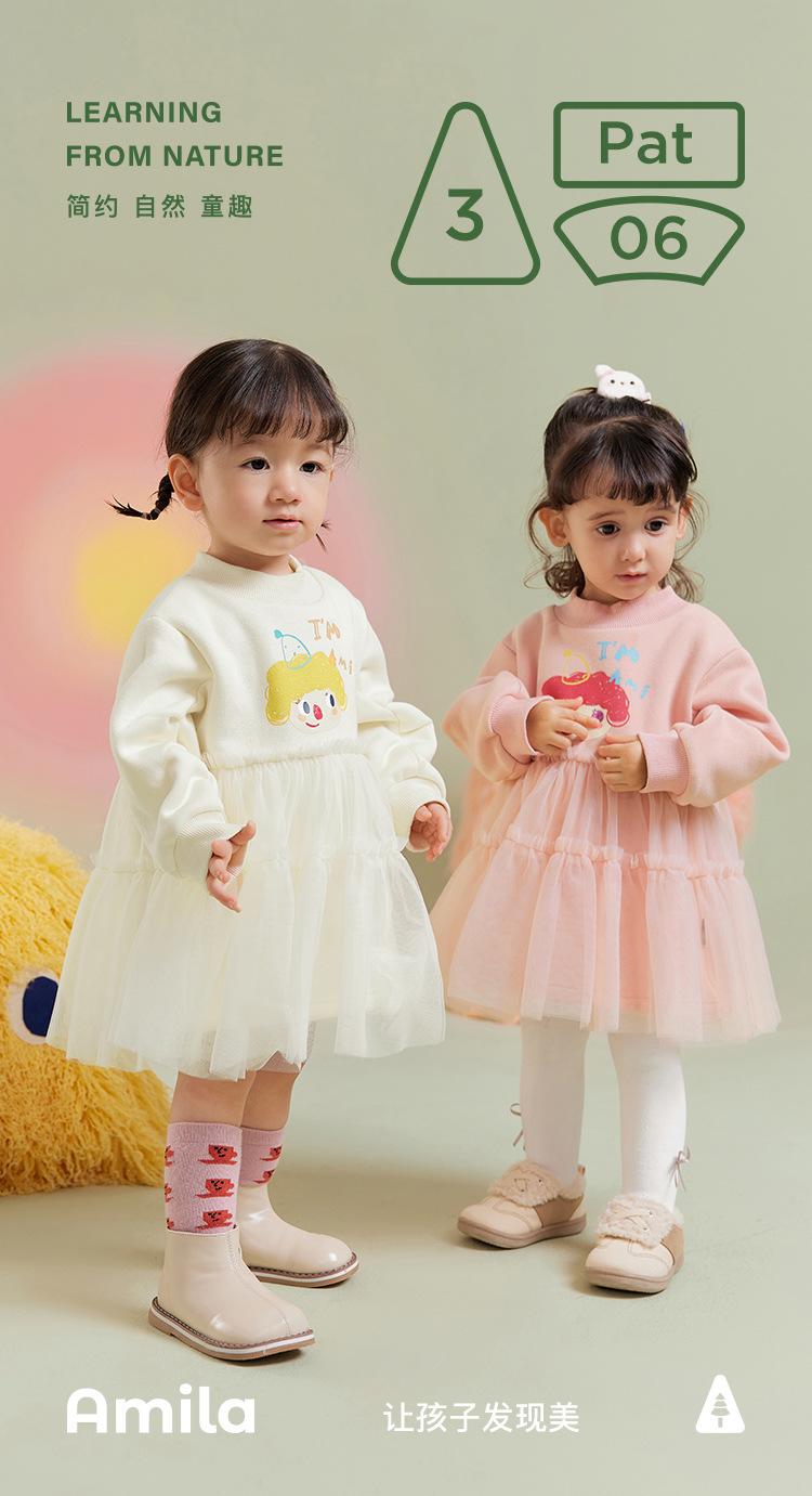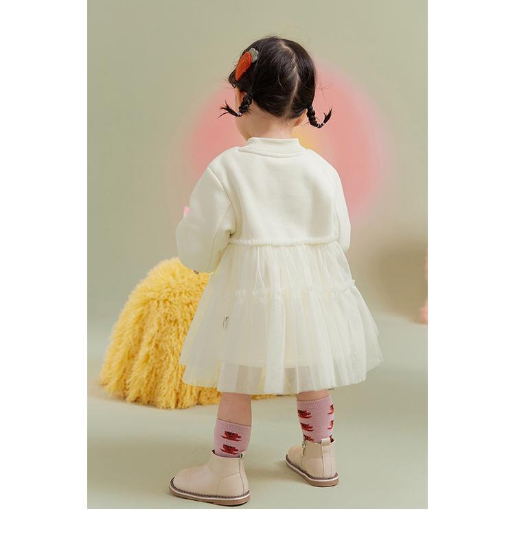 Ropa Infantil Amila 2024 Invierno Nuevo Vestido de Niña Falda Tutú Gruesa con Forro Polar Vestido de Princesa de Manga Larga