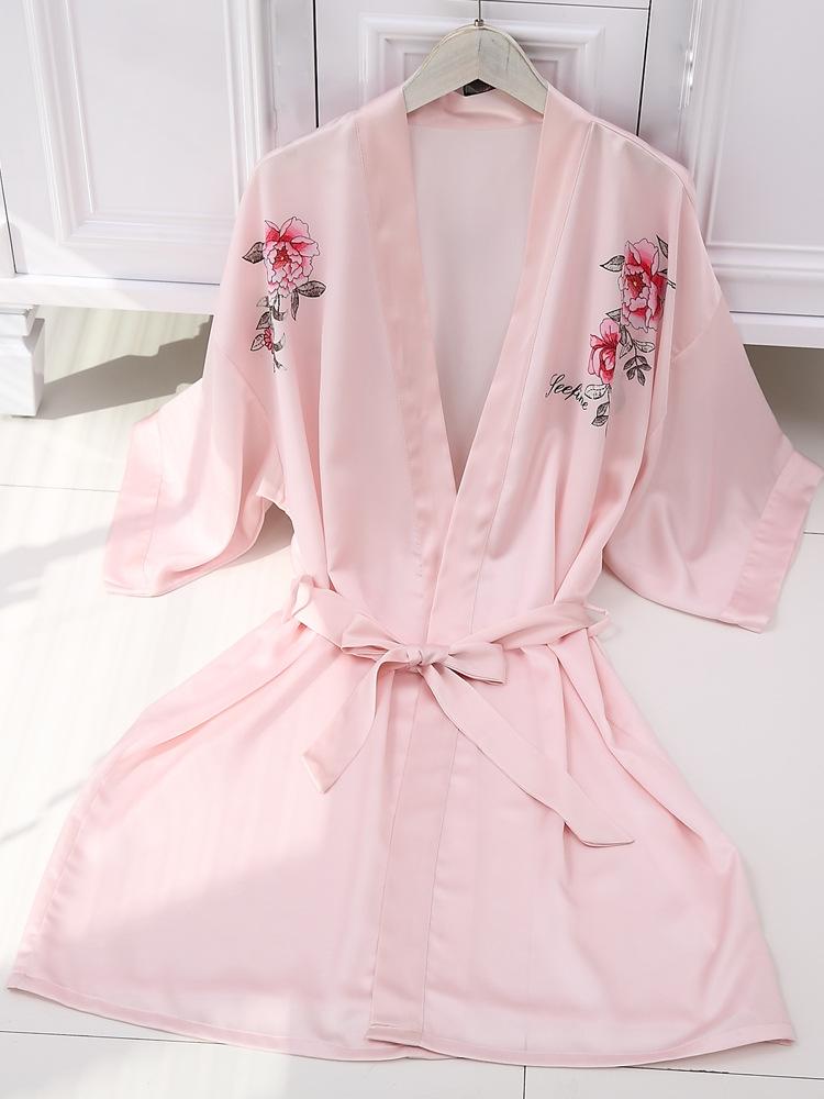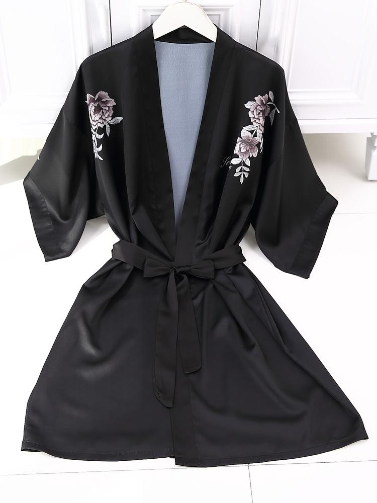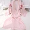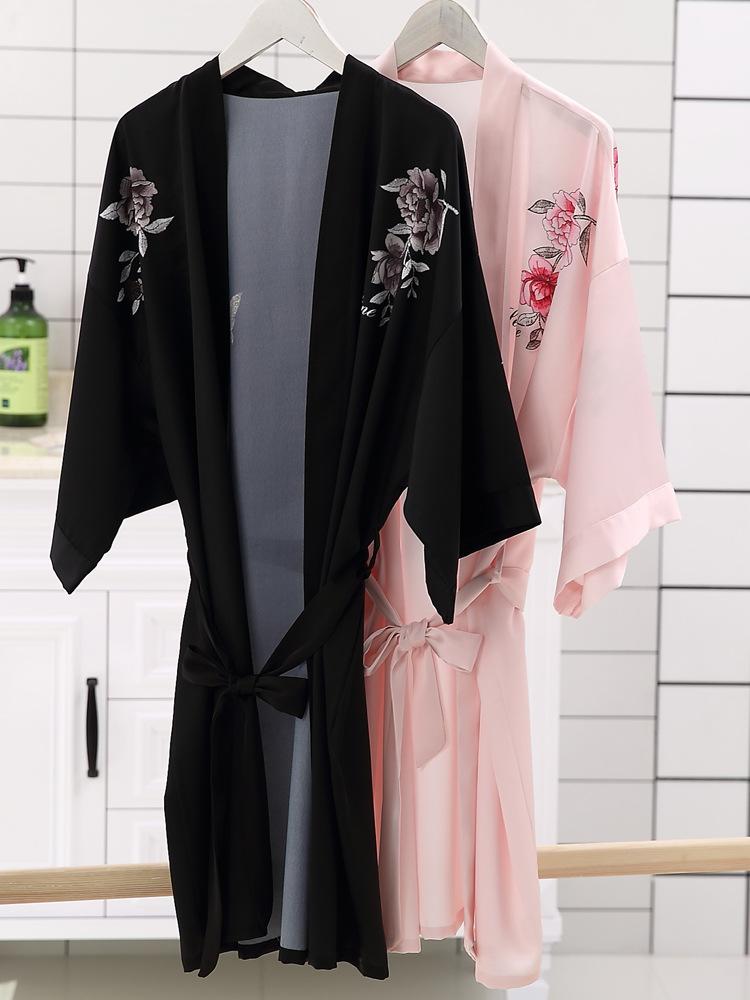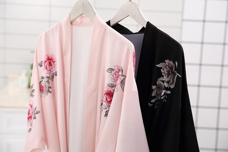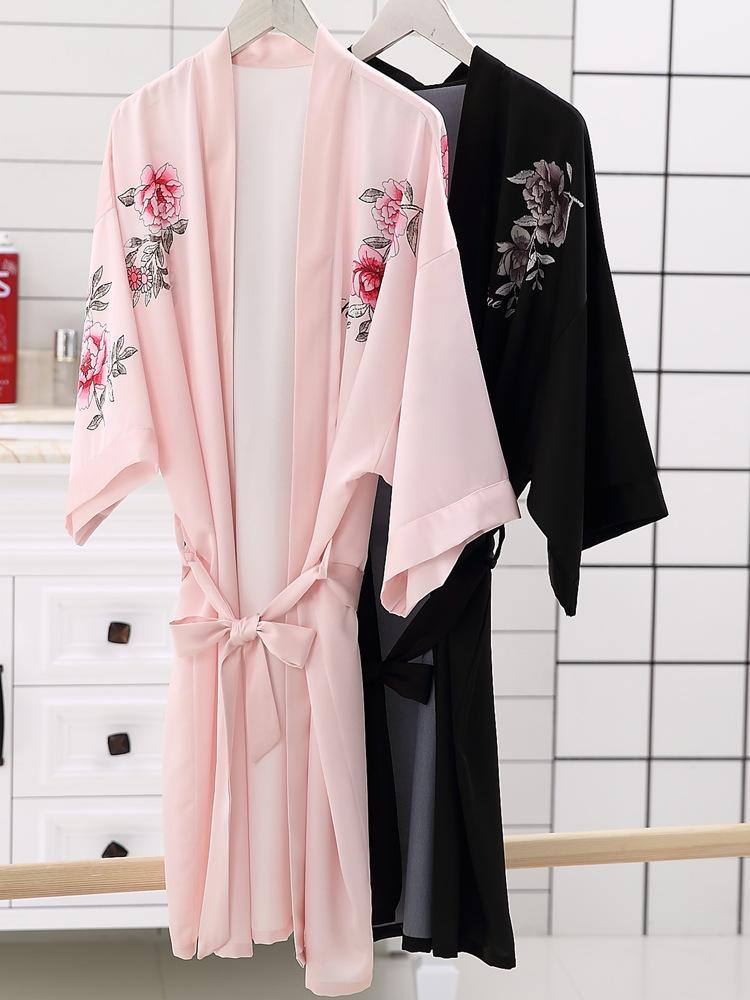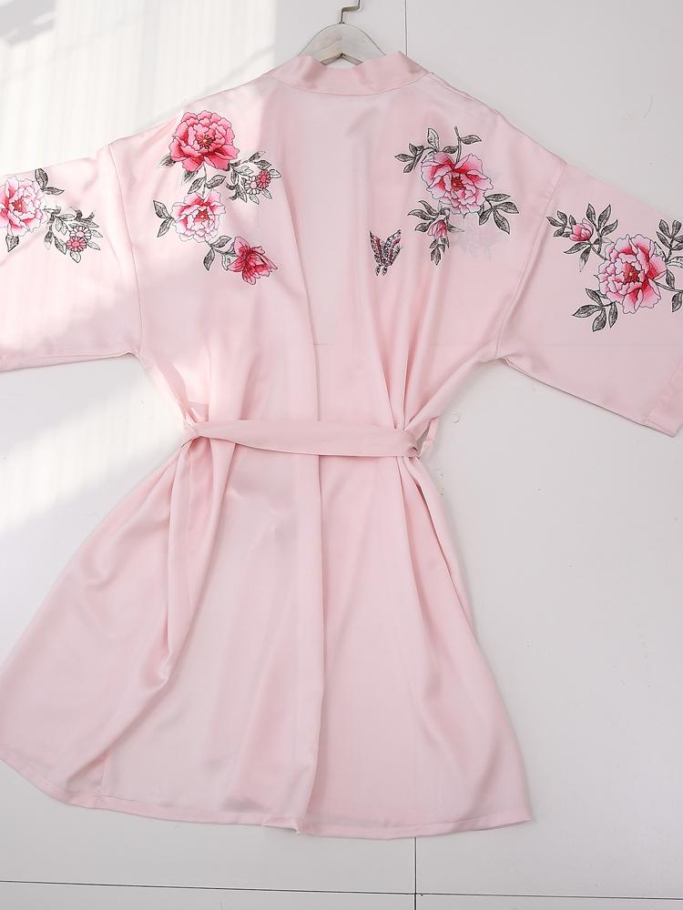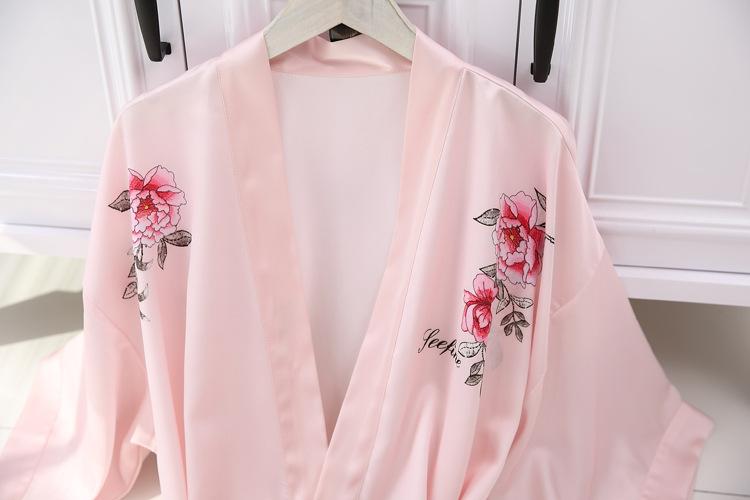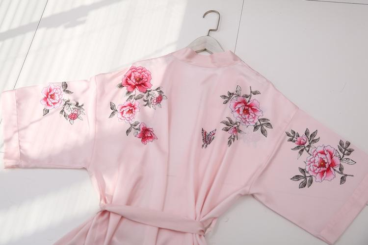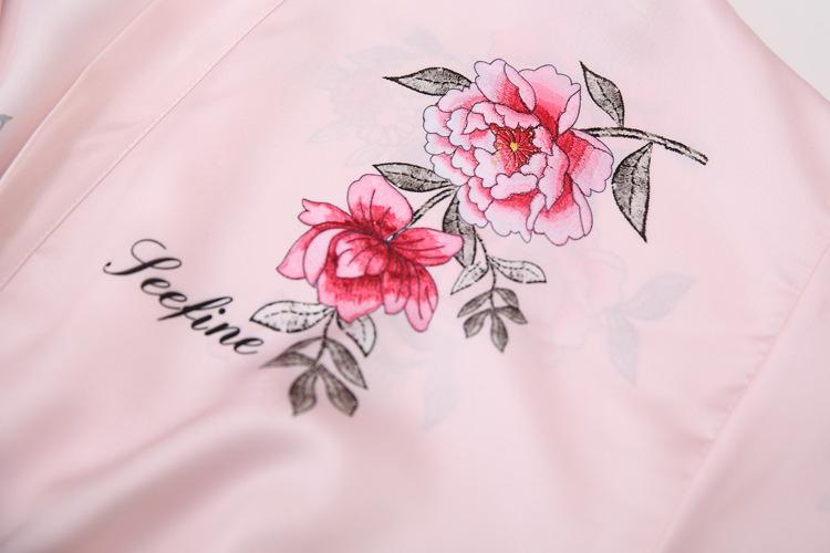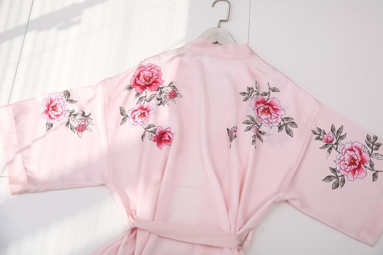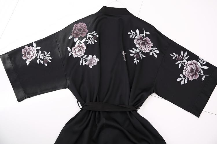 Novo Roupão de Manhã de Seda Sintética Flor Peônia Cardigã Pijama Feminino Robe Quimono Roupão Todas as Estações Universal Camisola Sexy