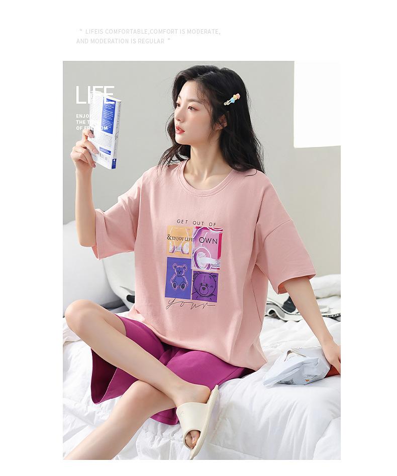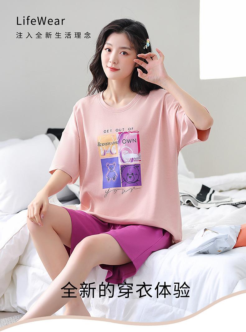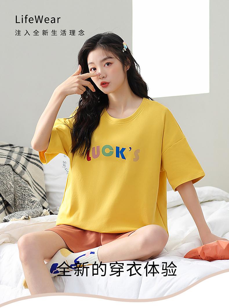 Pijamas de verano nuevos en stock para mujer, venta directa, informales, cómodos, sueltos, de color sólido, de manga corta, para el hogar