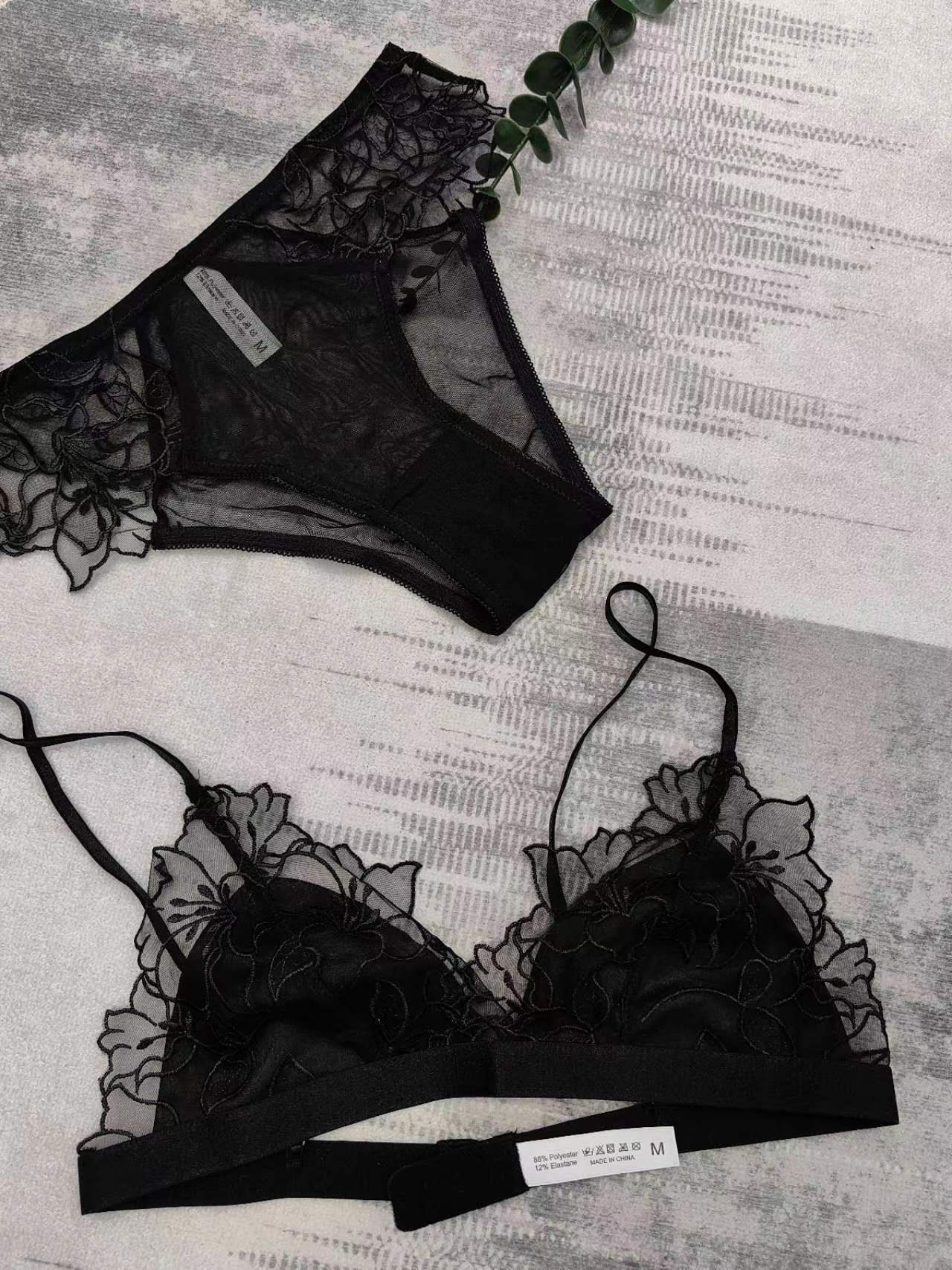 Ropa interior de encaje francés, perspectiva ultrafina, flocado, malla estampada, ropa interior sexy, sujetador de lazo sexy para niña |