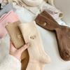 Calcetines gruesos de invierno cálidos nuevos calcetines de tubo bordados de oso de dibujos animados de color sólido más calcetines de terciopelo para mujer calcetines de embalaje independiente