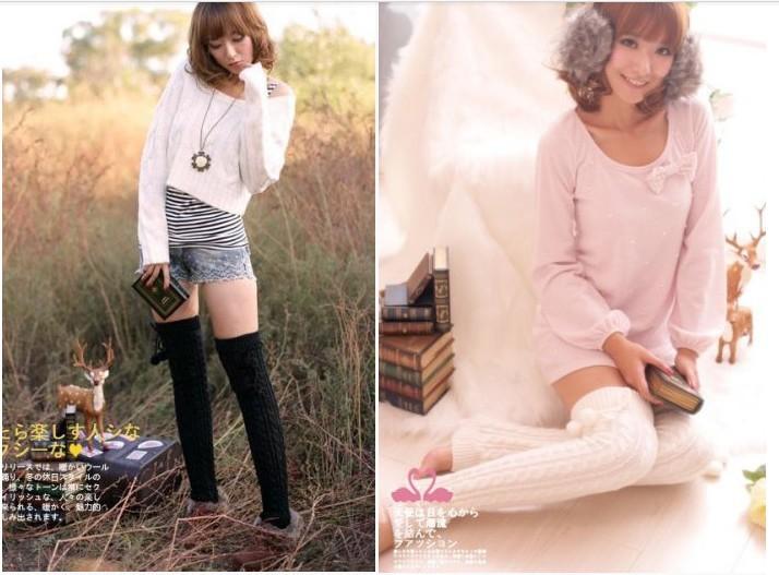 Calcetines Nuevos Lindos Apilados Calcetines de Lana Estilo Coreano para Mujer hasta la Rodilla Cálidos Cubre Pies Botas con Bolas