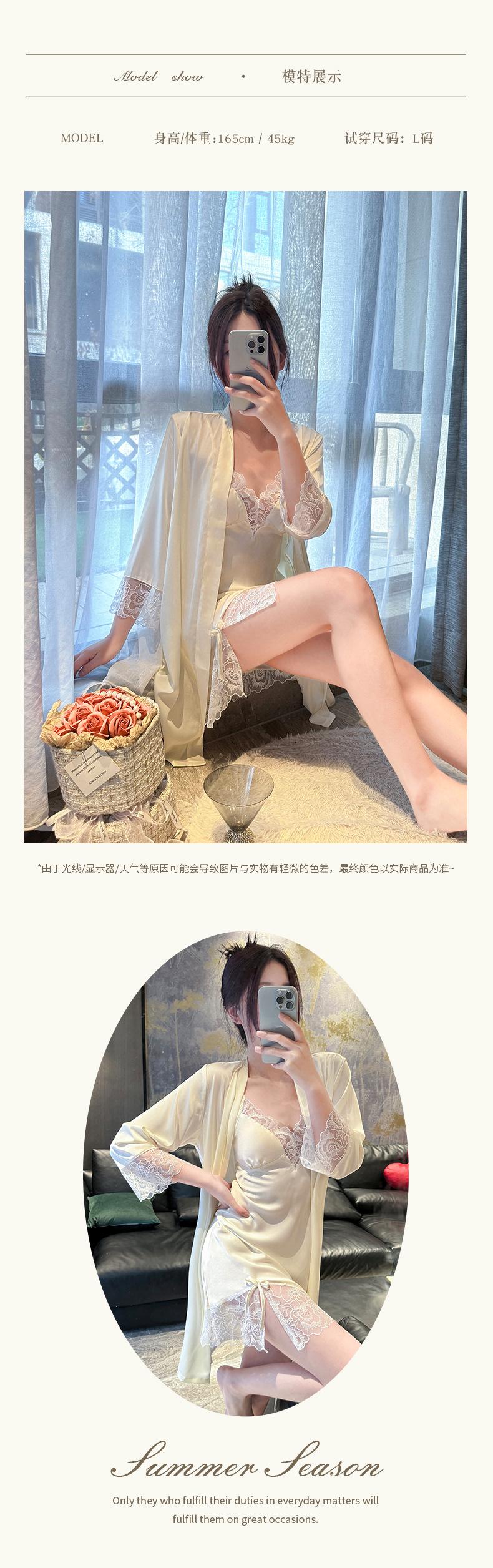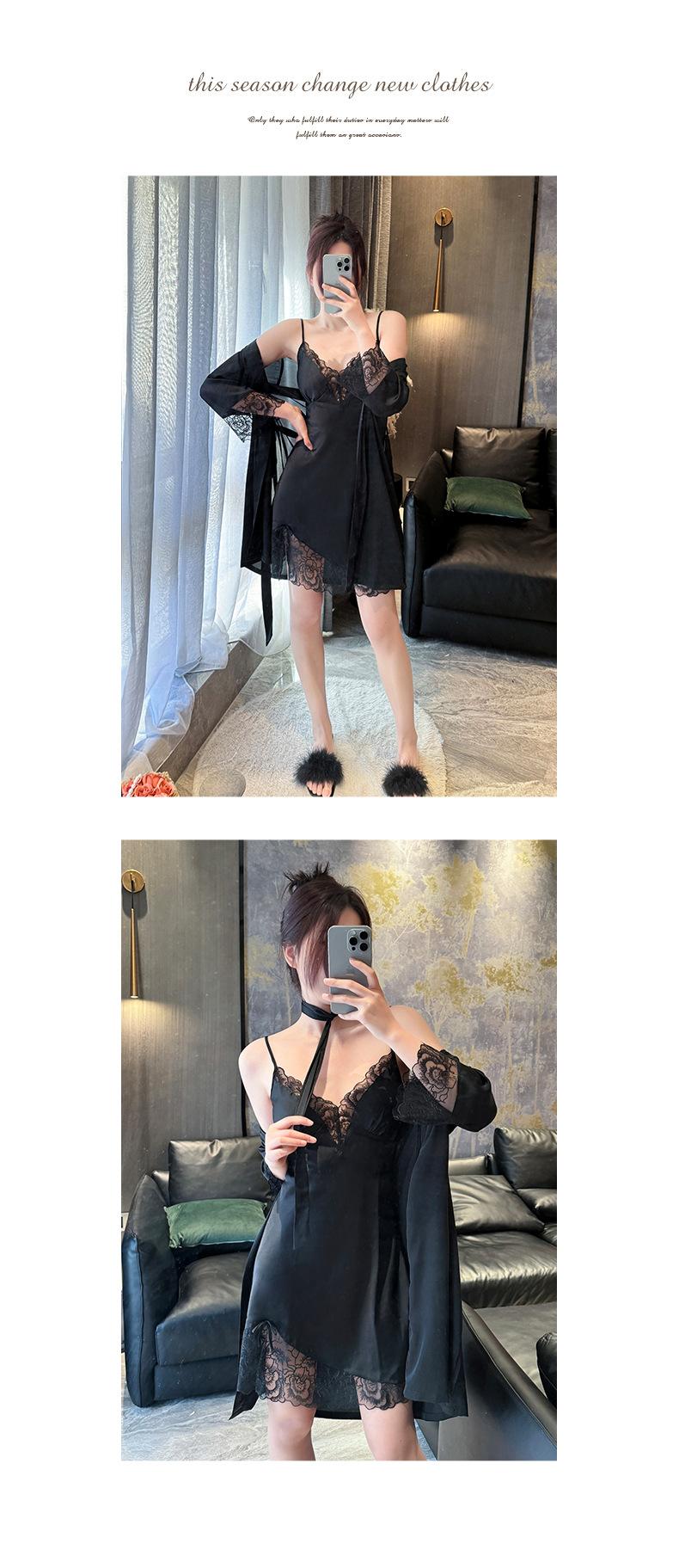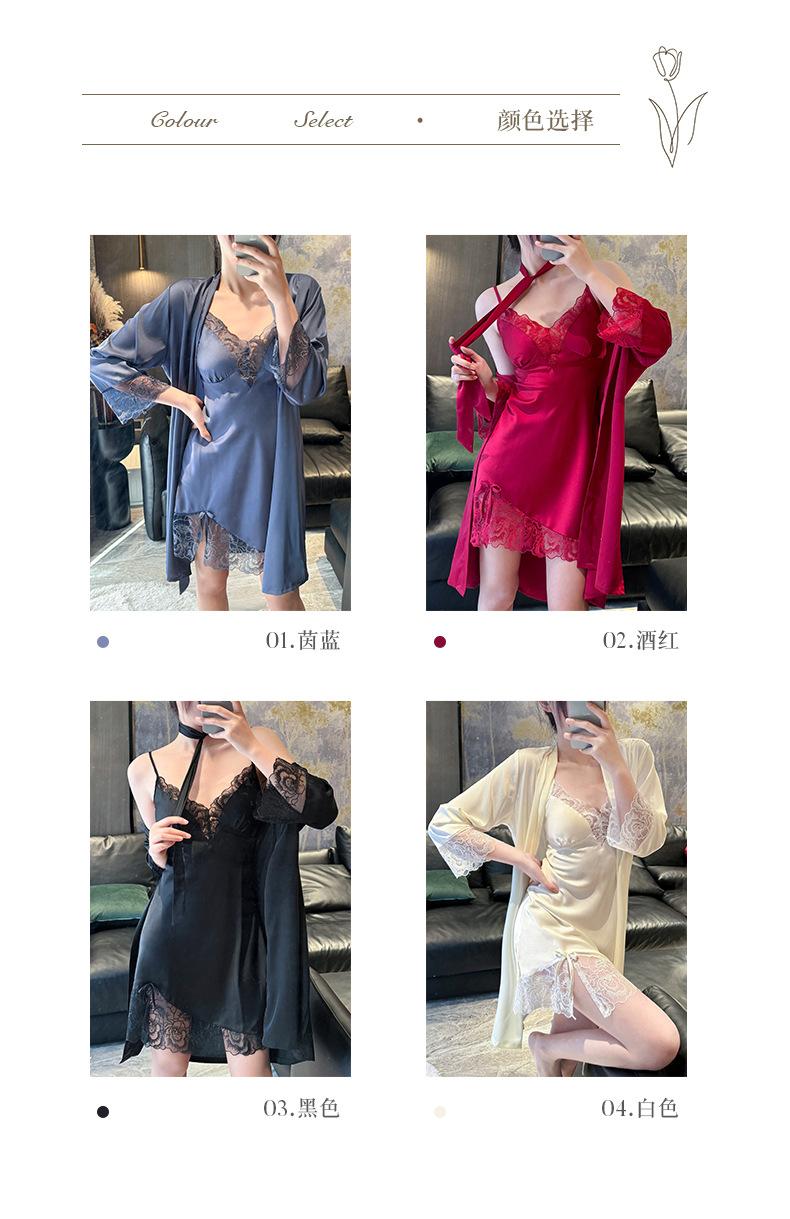 Conjunto de dos piezas de camisón de seda de hielo con tirantes sexys para primavera y verano, puro deseo, cinturón de viento, copas, traje de pijama para habitación privada, ropa de casa para mujer