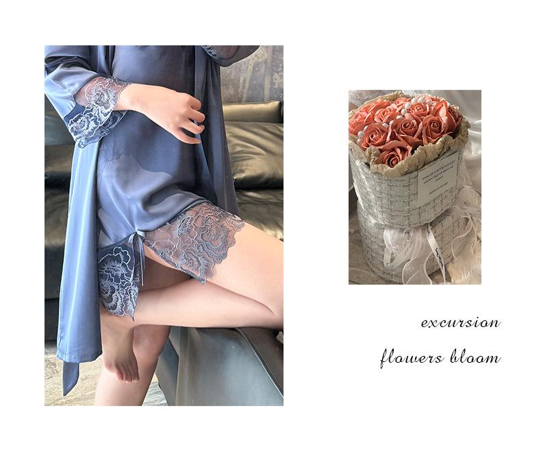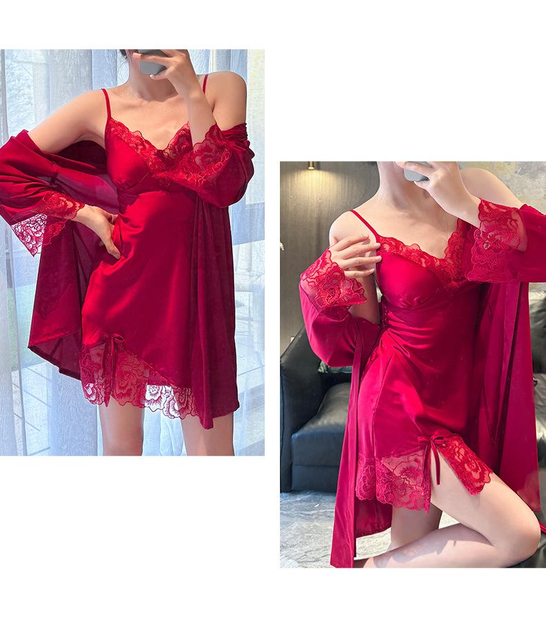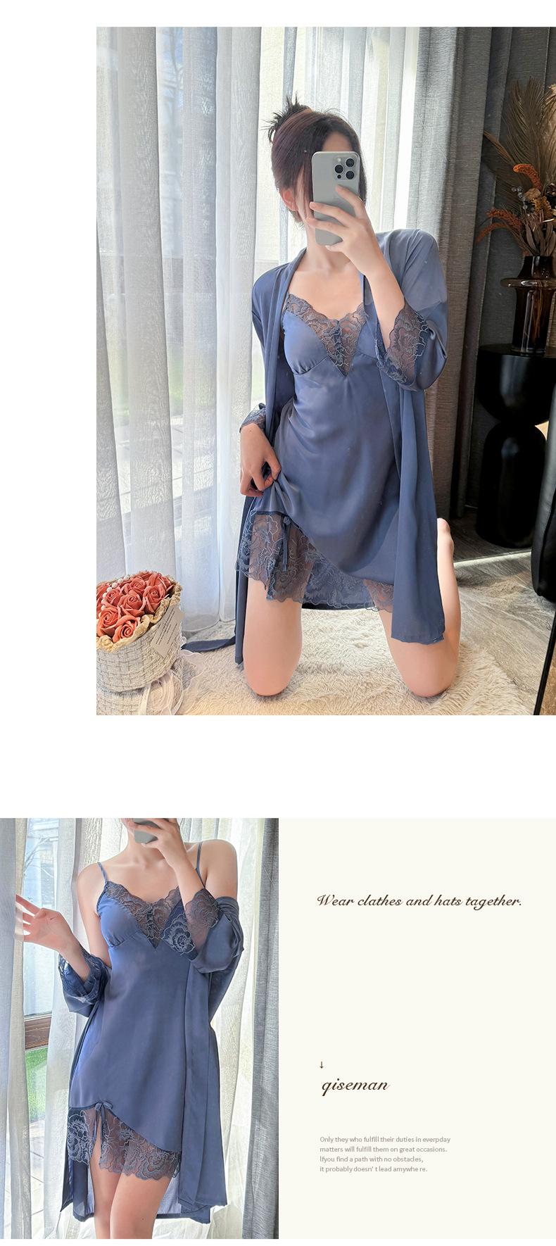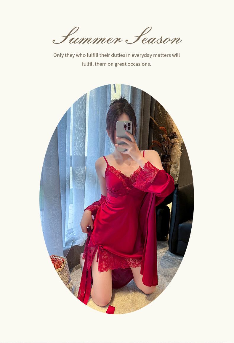 Conjunto de dos piezas de camisón de seda de hielo con tirantes sexys para primavera y verano, puro deseo, cinturón de viento, copas, traje de pijama para habitación privada, ropa de casa para mujer