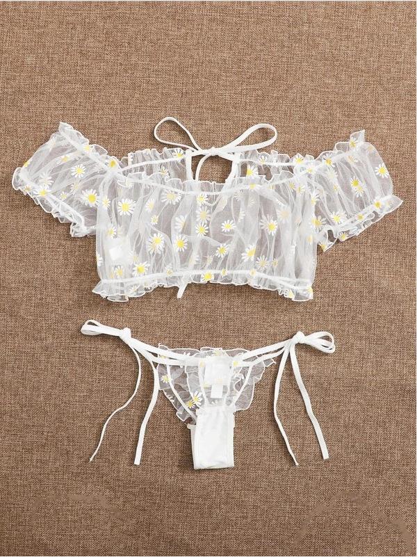 Productos Transfronterizos Nueva Lencería Sexy Europea y Americana Encaje Floral Sexy Dividido de Dos Piezas Lencería Sexy para el Hogar