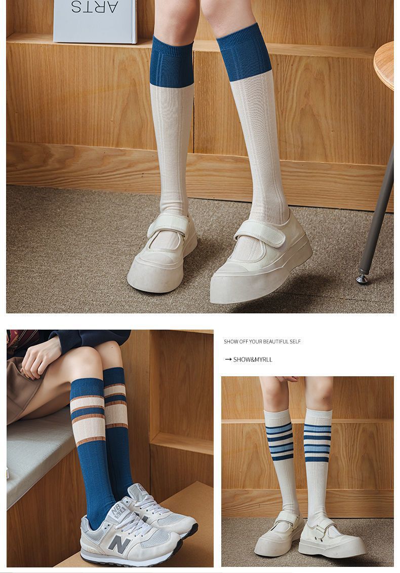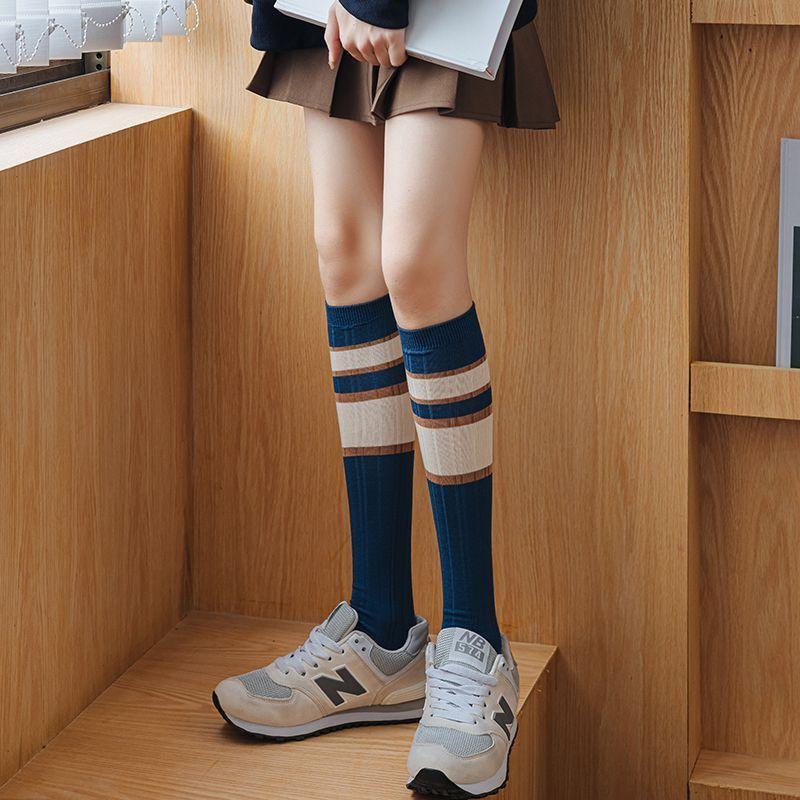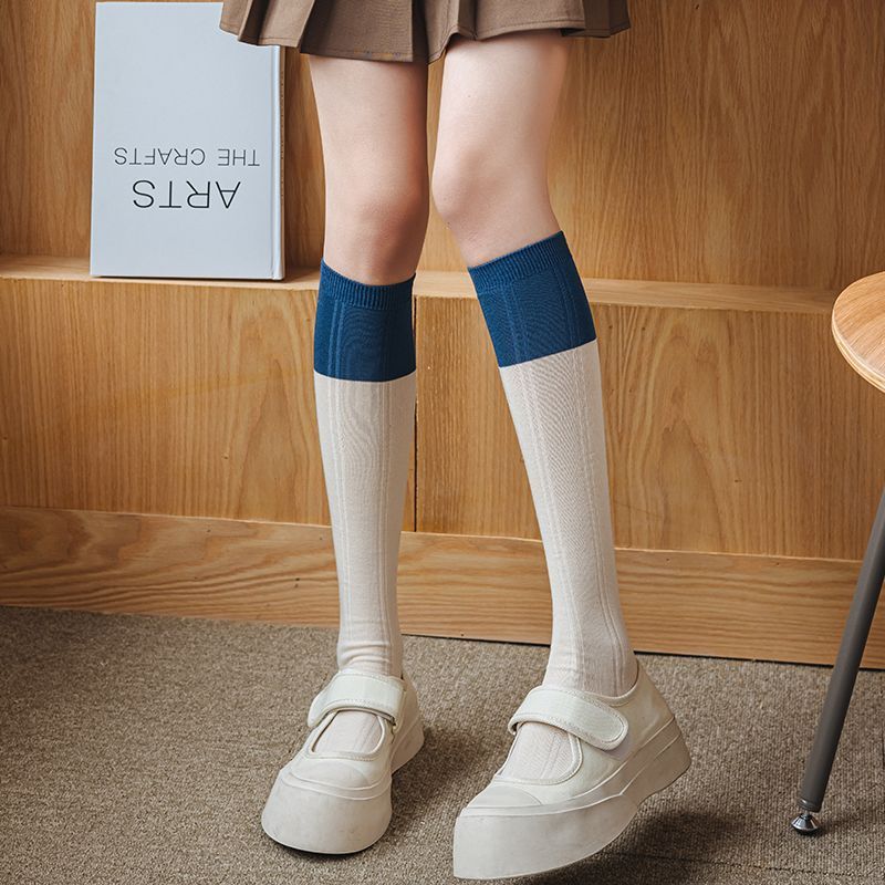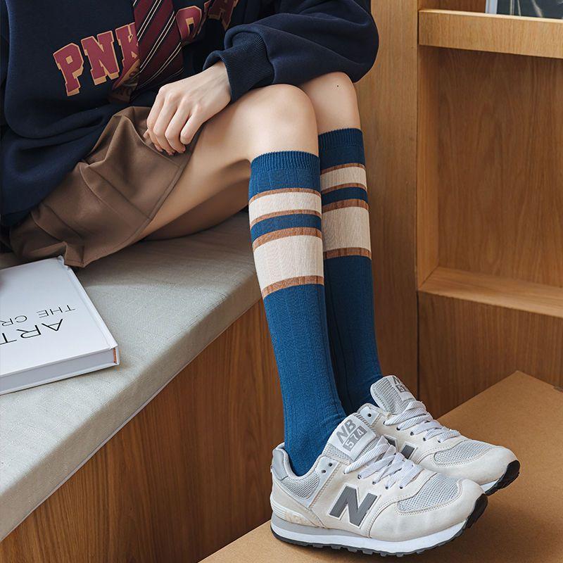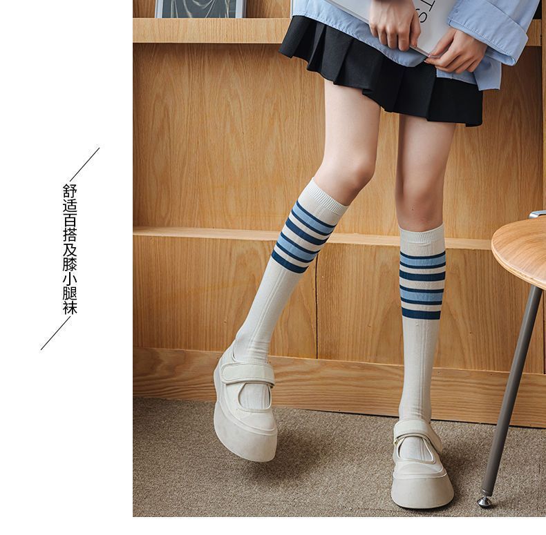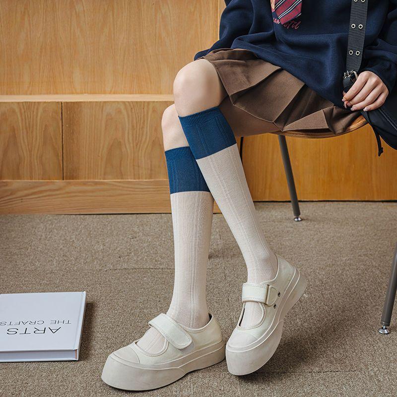 Ropa Exterior Azul Jk Calcetines de Pantorrilla para Mujer Primavera y Otoño Estilo Japonés Estilo Preppy Calcetines Dulces Look Adelgazante Calcetines hasta la Rodilla