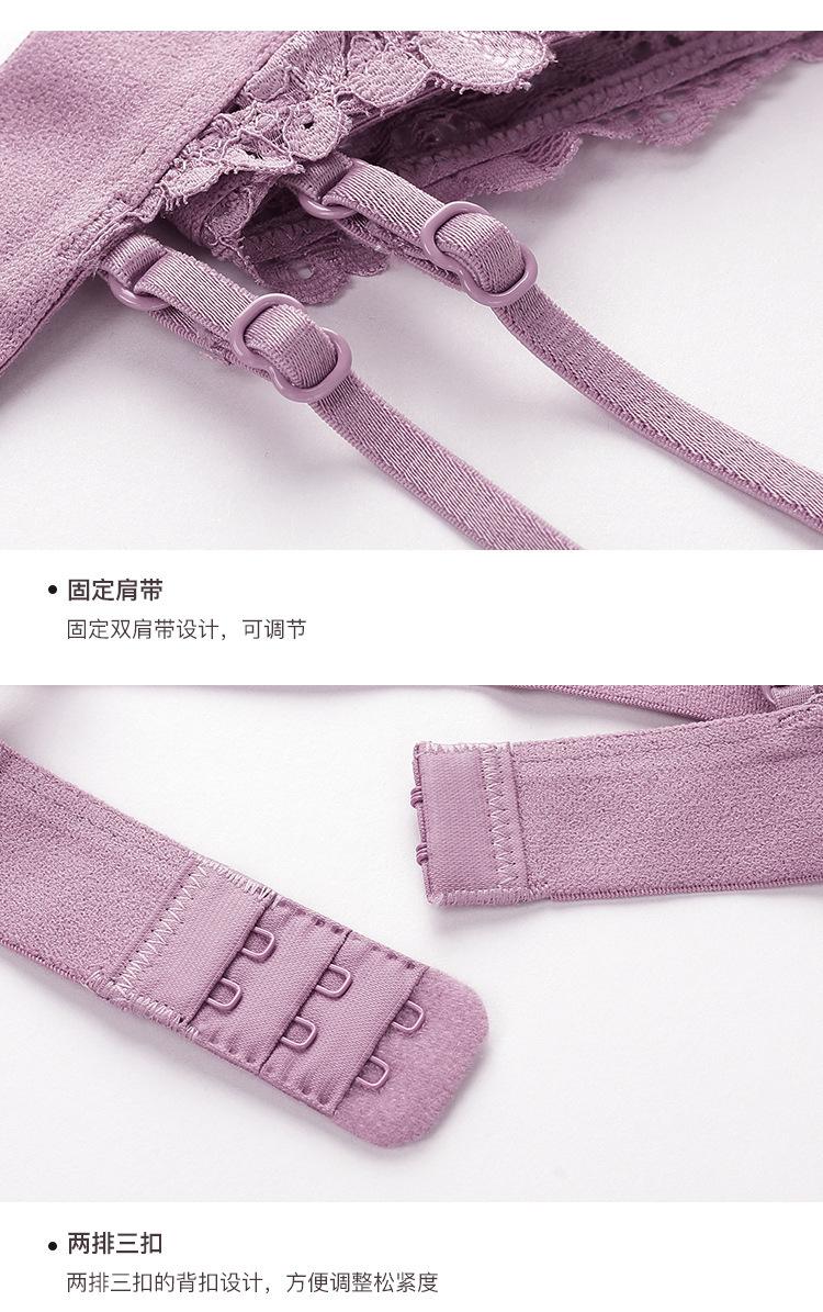 | Venta directa de fábrica, conjunto de ropa interior sexy francesa para mujer, sujetador de encaje fruncido transpirable de algodón fino, sujetador de talla grande |