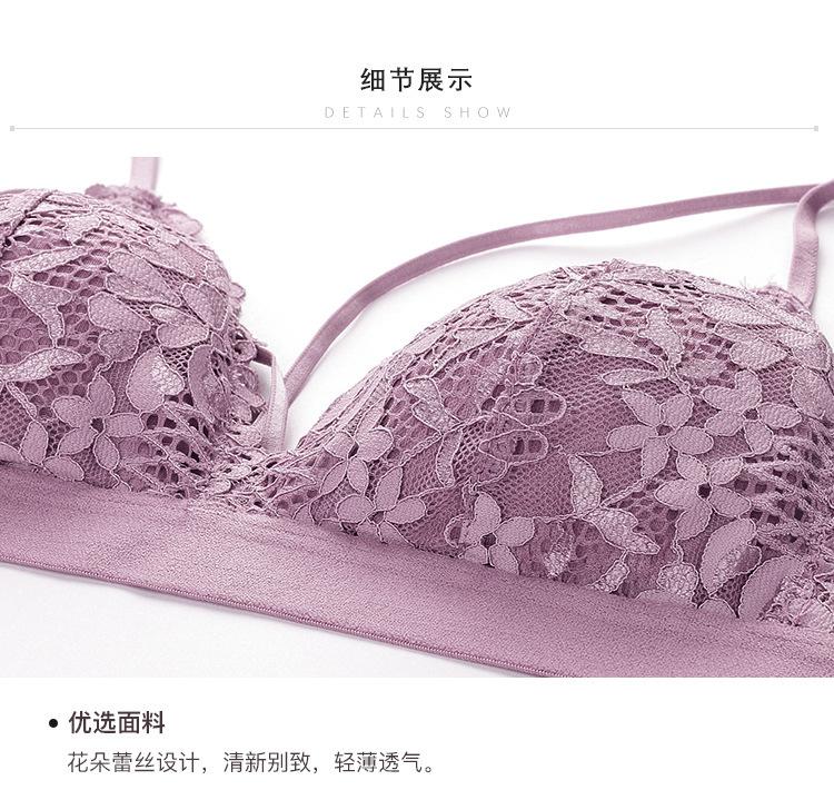 | Venta directa de fábrica, nueva ropa interior sexy de algodón fino para mujer, conjunto de sujetador push up de encaje pequeño con pecho grande |