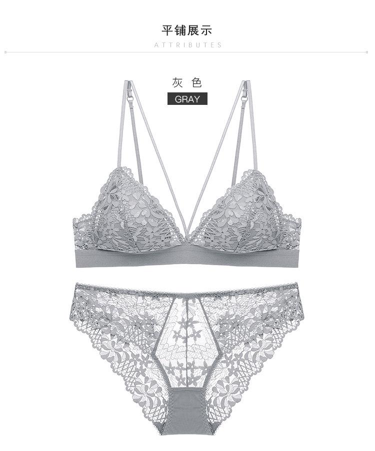 | Venta directa de fábrica, nuevo conjunto de sujetador sexy de encaje pequeño con pecho grande y ropa interior hueca ultrafina para mujer |