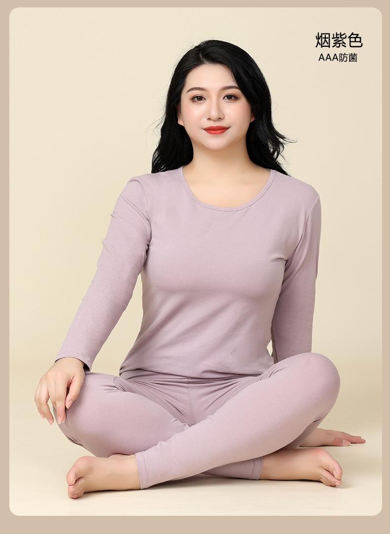 Talla extra grande para mujer, traje de ropa interior térmica de algodón de cuello bajo, ropa de algodón para otoño, pantalones largos, suéter de algodón fino para madre