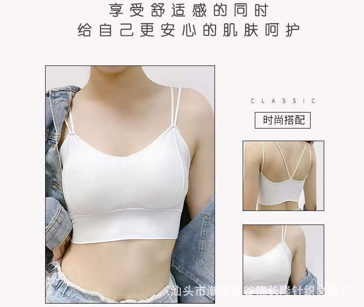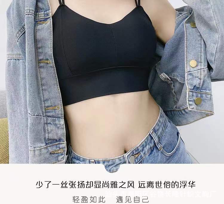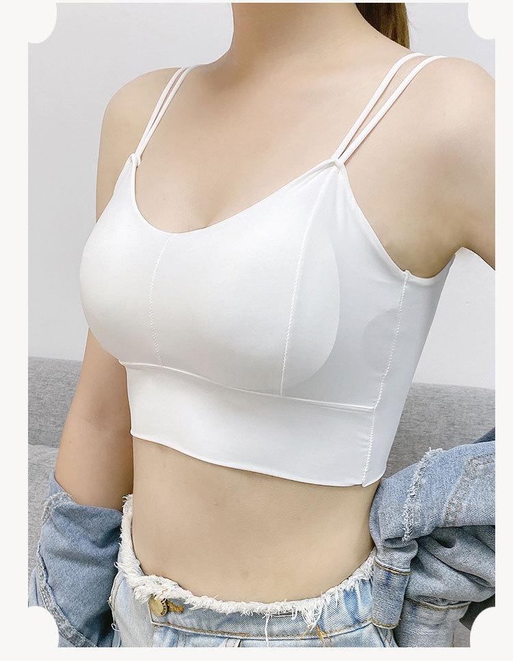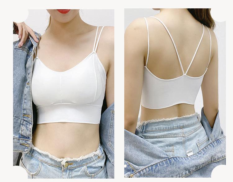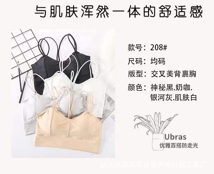 Top de tubo exterior de seda de hielo sin costuras con espalda cruzada y envuelto en el pecho, ropa interior deportiva sexy antiexposición push up para mujer