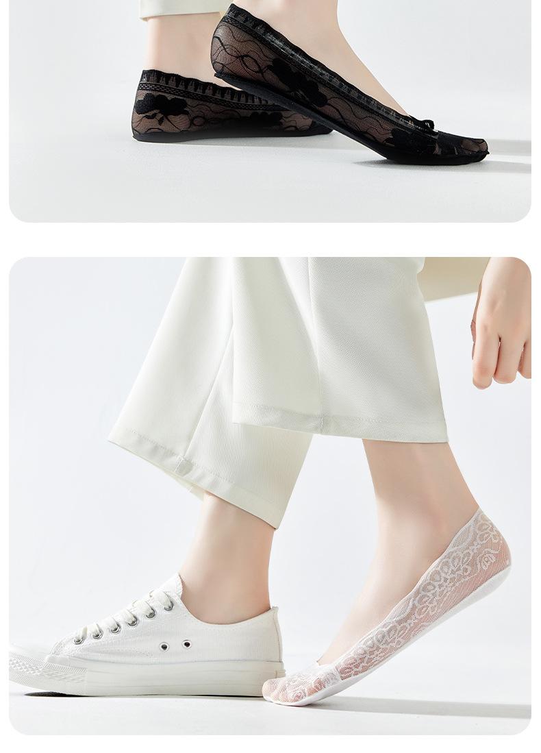 Calcetines de encaje antideslizantes con talón que no se caen, calcetines invisibles finos de boca baja de verano, calcetines de tacón alto, calcetines náuticos de algodón para mujer