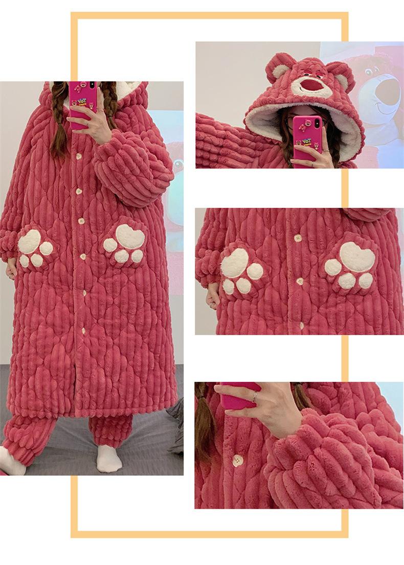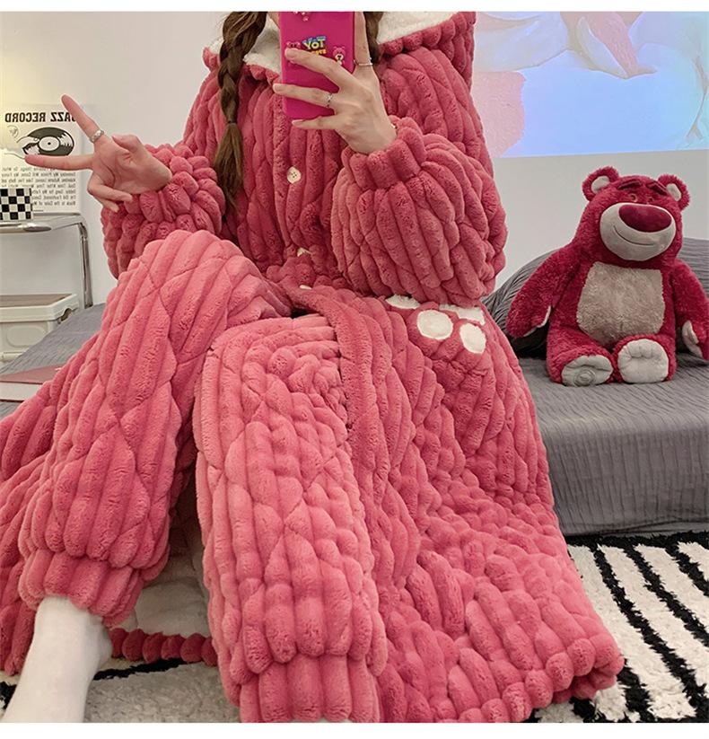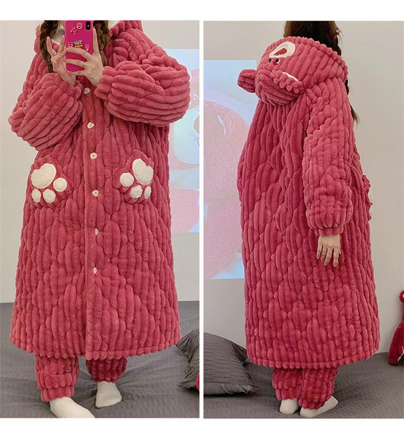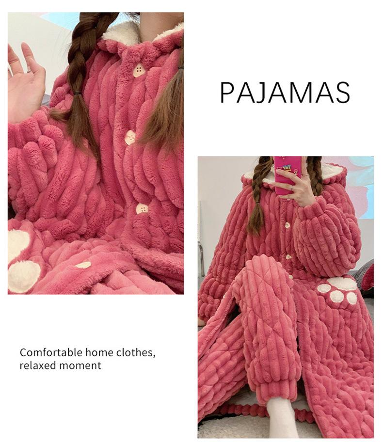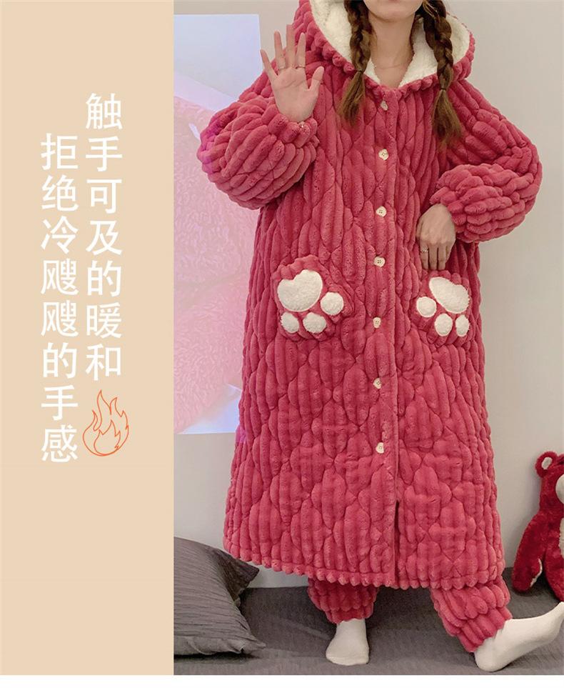 Pijamas acolchados de invierno para mujer, cálidos, forrados con vellón, ropa de casa gruesa, camisón, ropa informal para el hogar, conjunto de vestimenta exterior