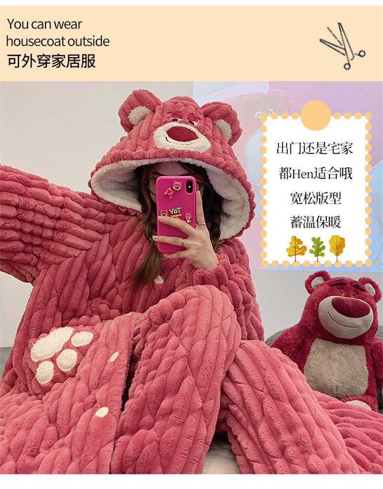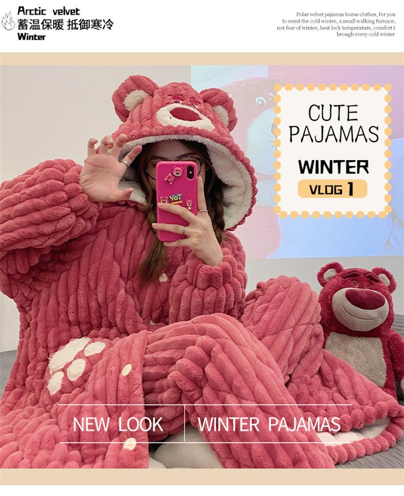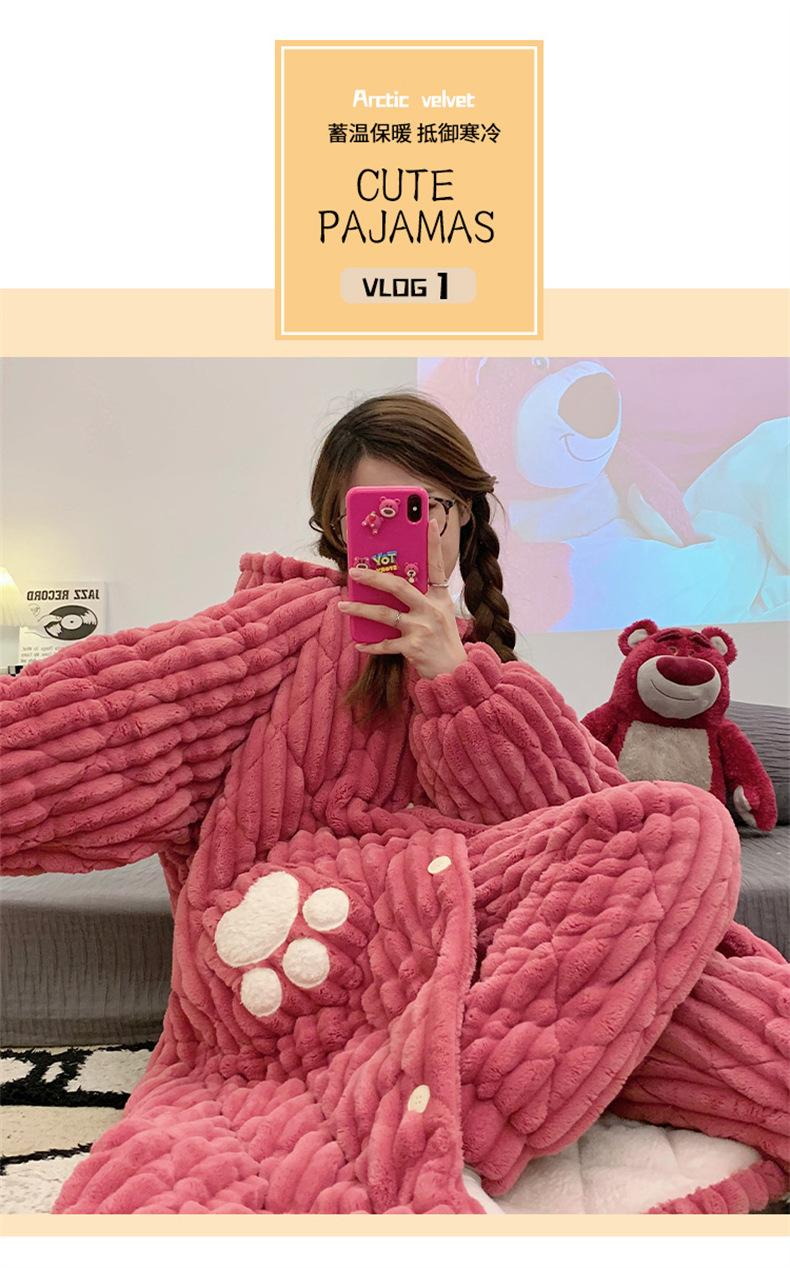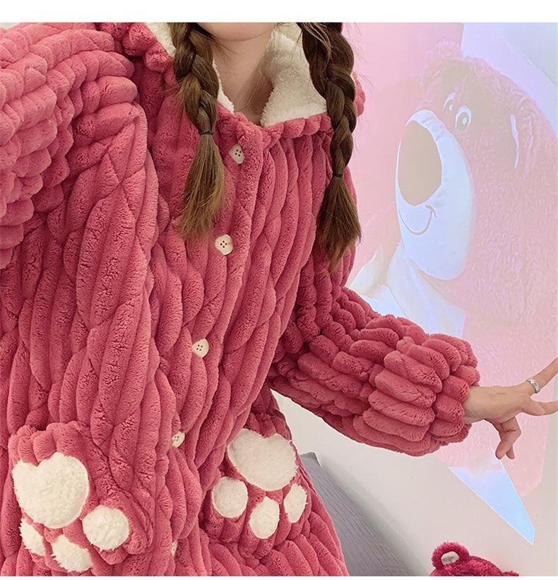 Pijamas acolchados de invierno para mujer, cálidos, forrados con vellón, ropa de casa gruesa, camisón, ropa informal para el hogar, conjunto de vestimenta exterior