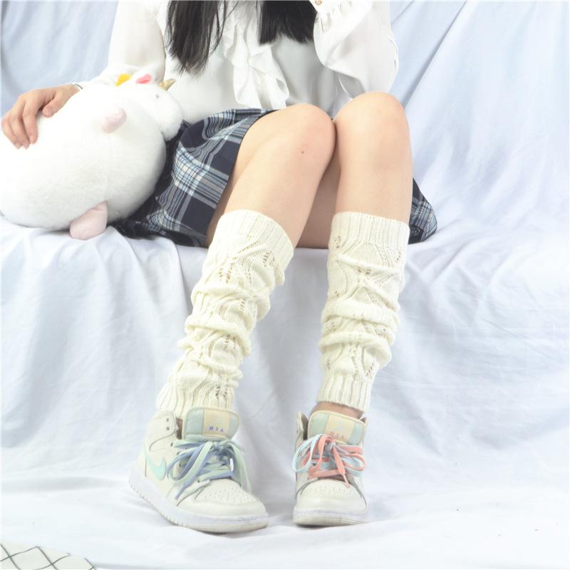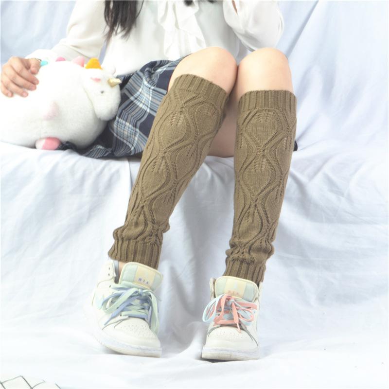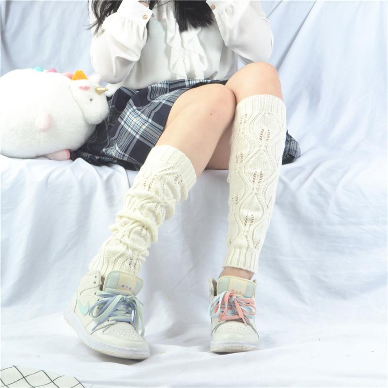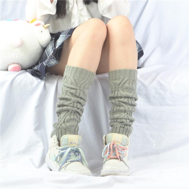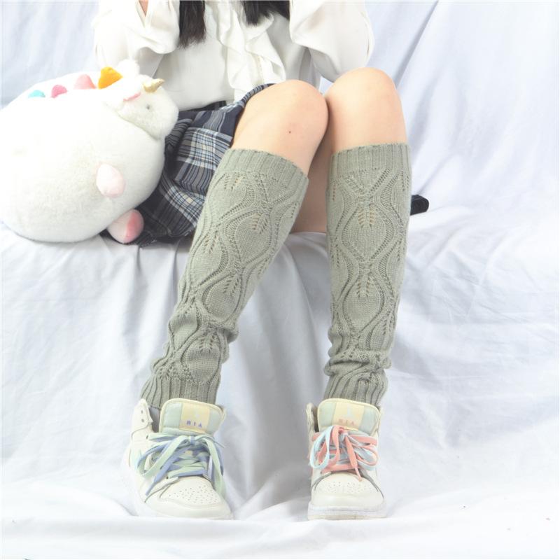 Calcetines Apilados con Patrón de Hojas para Mujer, Estilo Japonés Simple, Calentadores de Pierna de Color Sólido Frescos y Lindos, Estilo Jk Estilo Japonés