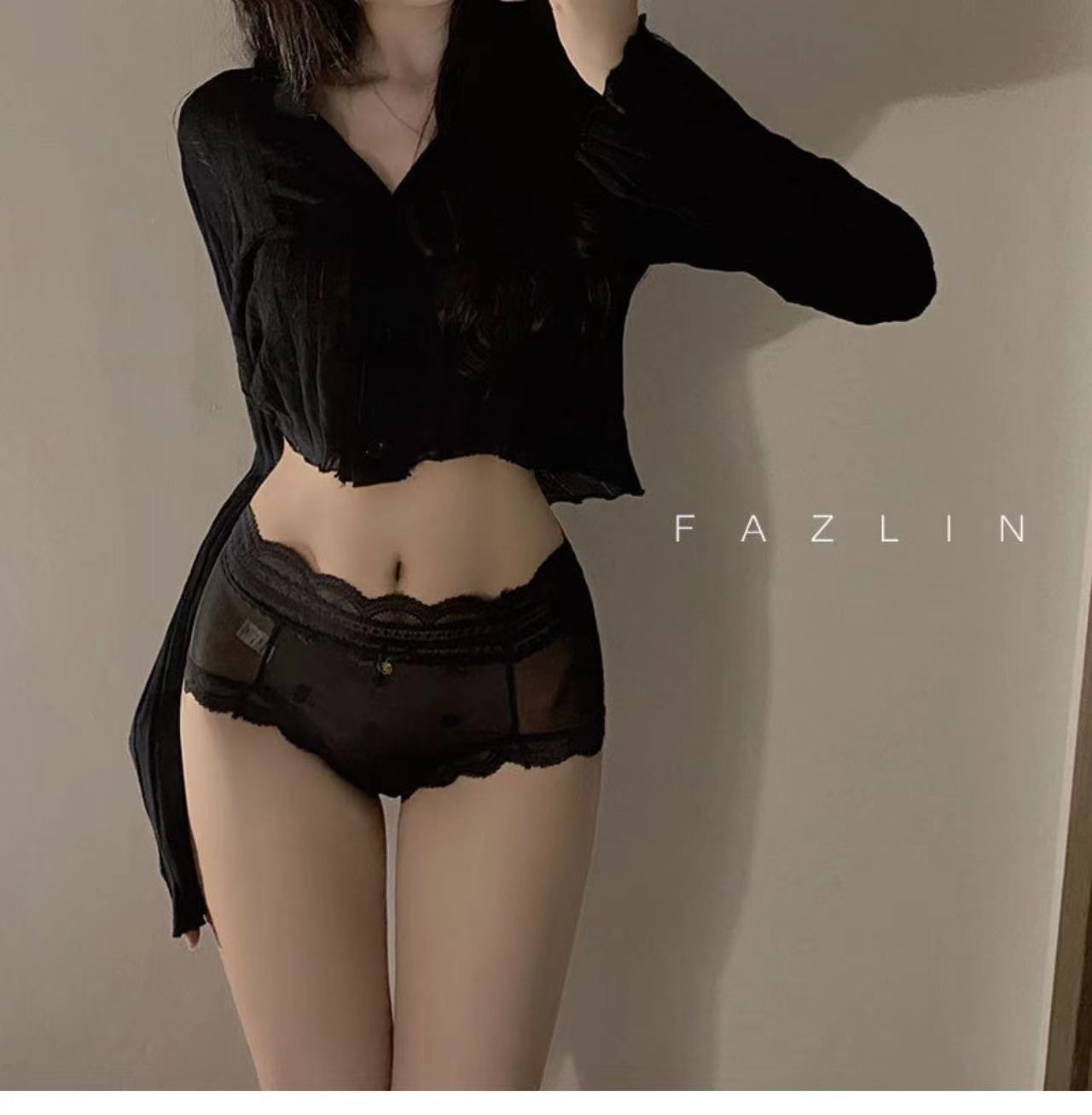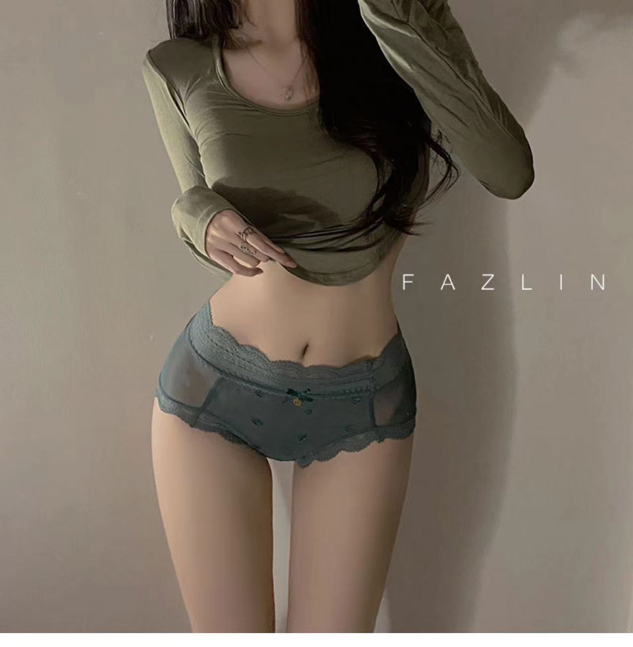 Ropa interior femenina de estilo japonés Pure Desire, de malla, con encaje, transpirable, sexy, de cintura media-alta, de algodón triangular con entrepierna.
