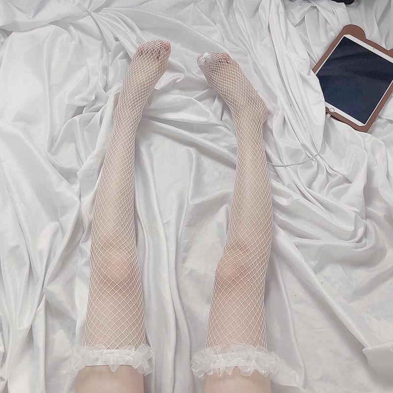 Medias de Seda Blancas Medias de Red de Encaje para Mujer Lolita Tubo Largo Arriba de la Rodilla Verano Delgadas Calcetines JK Blancos