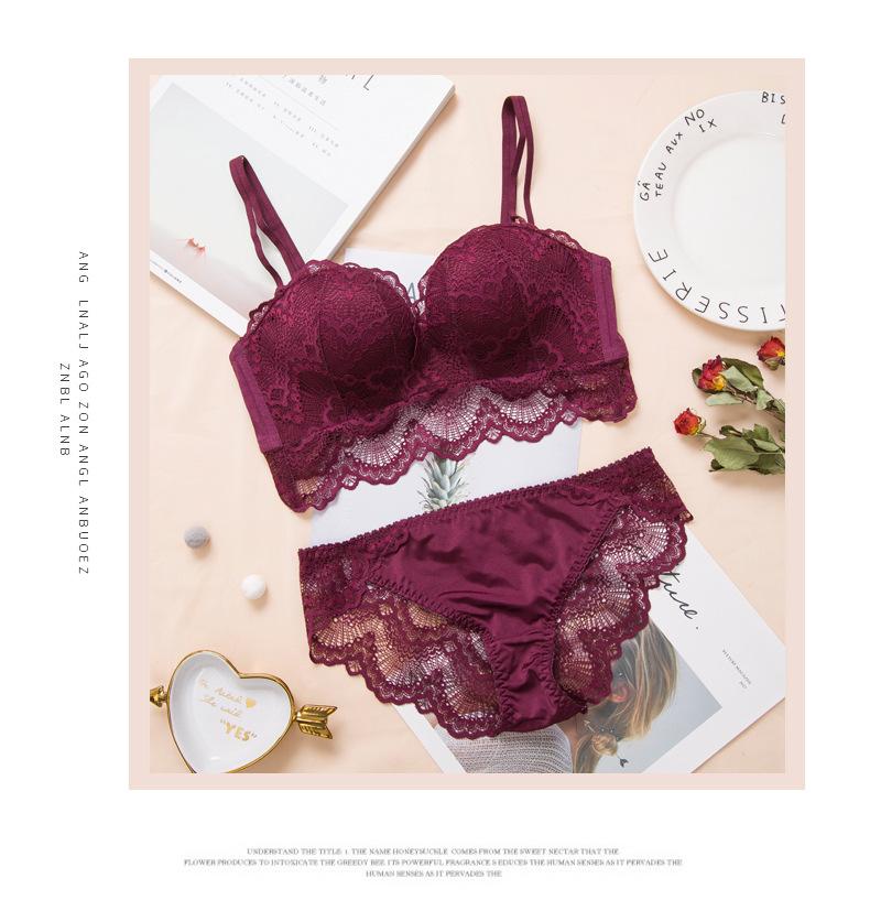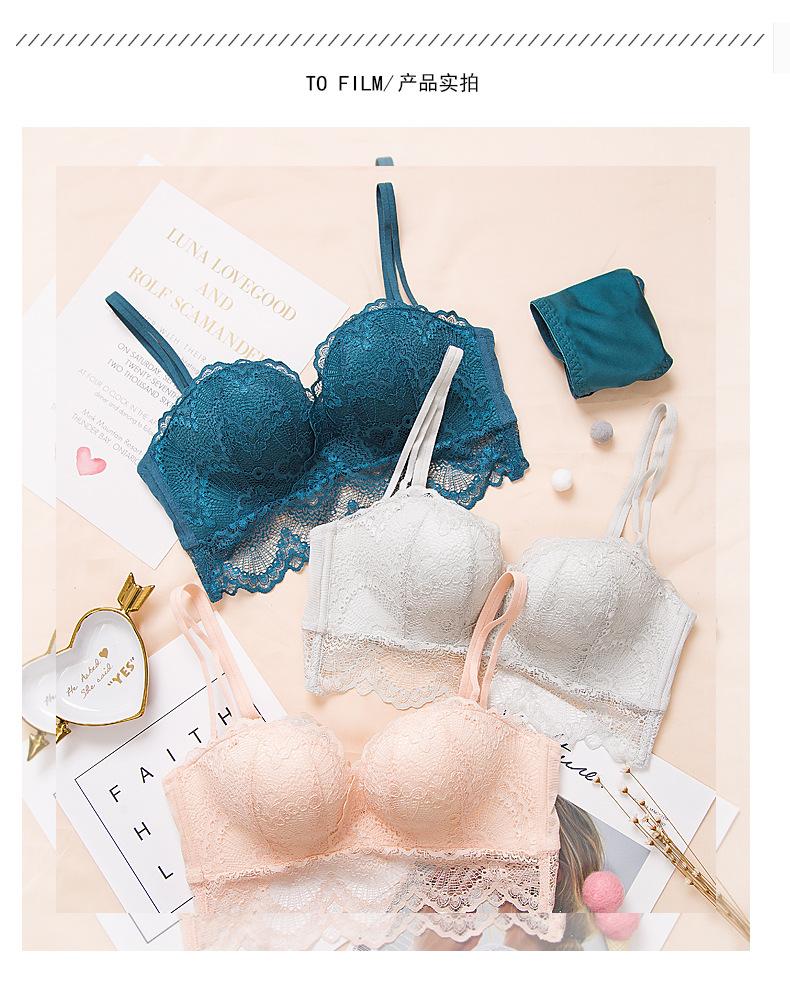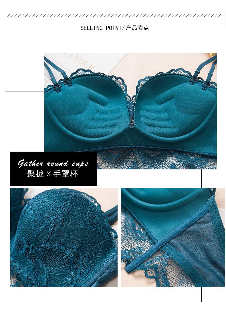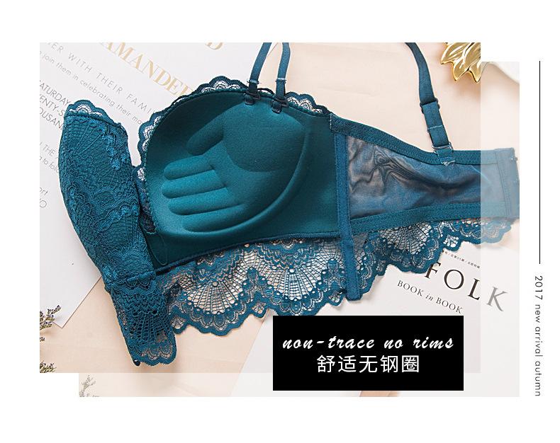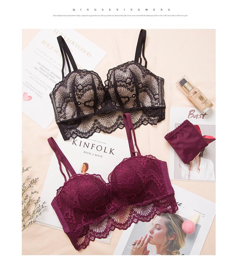 Otoño e Invierno Nuevo Sin Aro de Acero Encaje Borde Masaje Copa de Palma Sujetador Sexy Cómodo Reunir Ajustable Conjunto de Ropa Interior