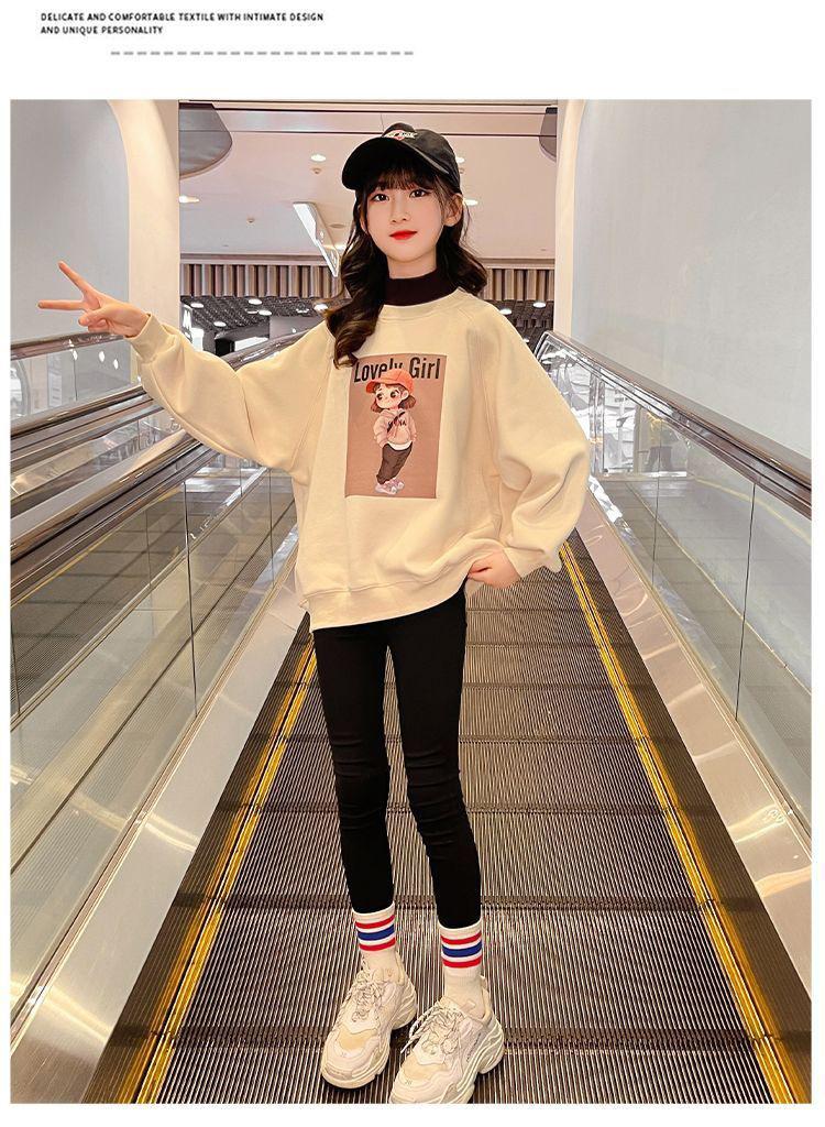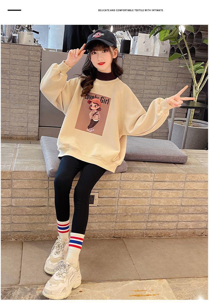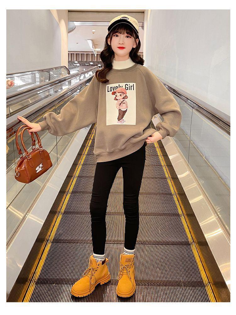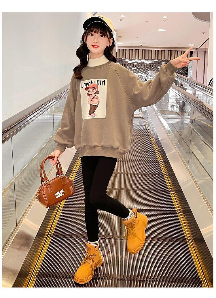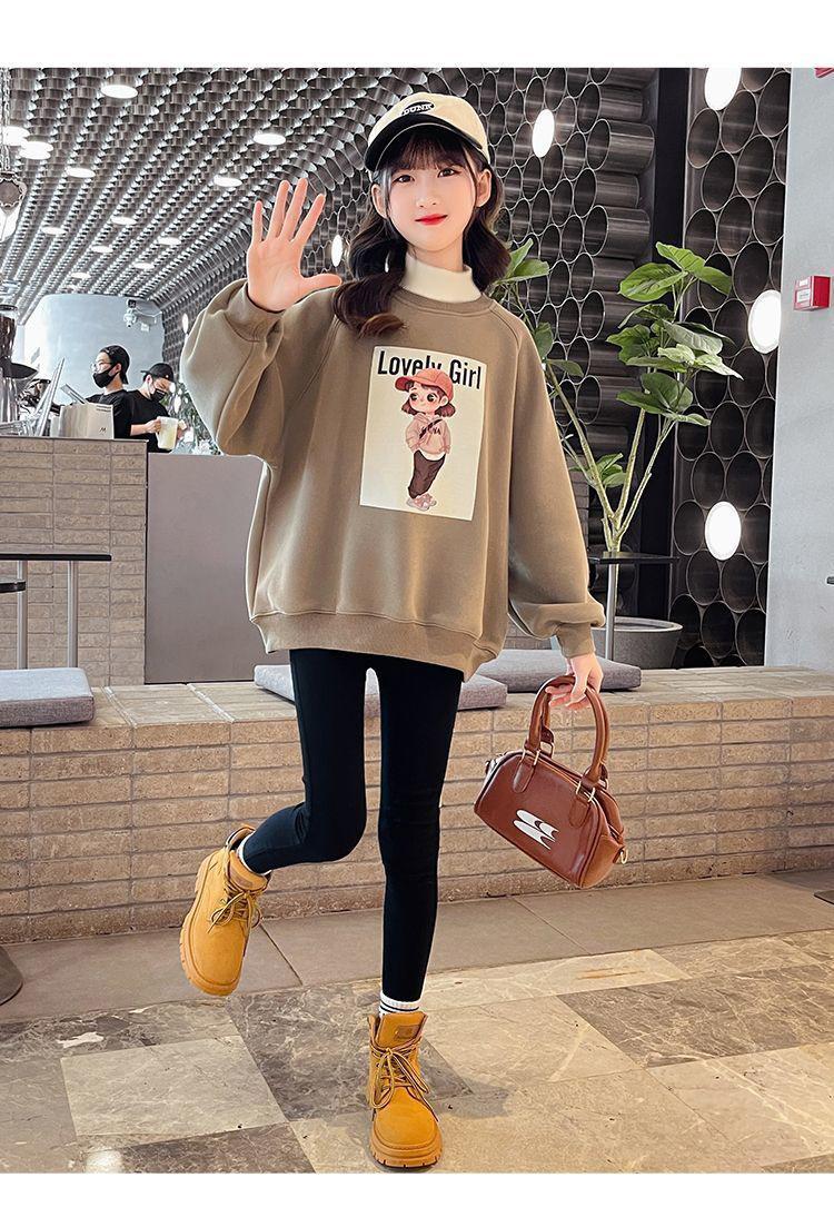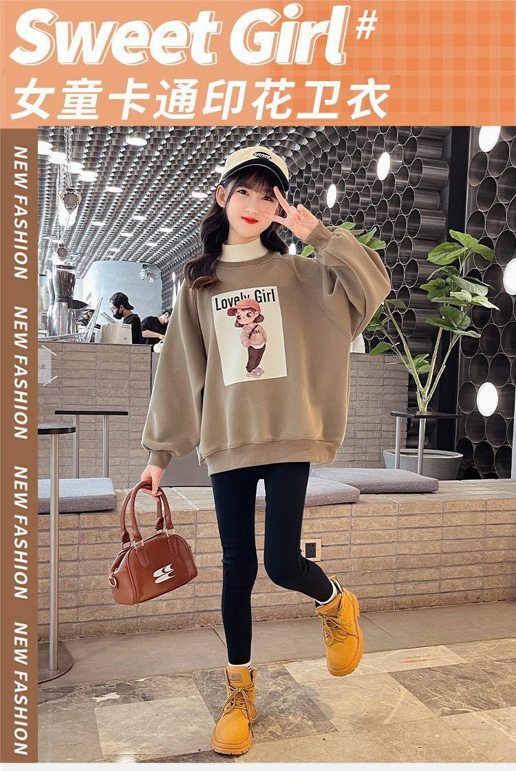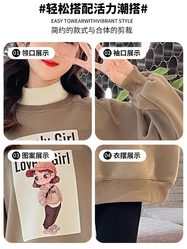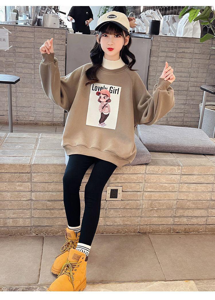 Sudadera Gruesa para Niñas con Forro Polar 2025 Otoño e Invierno Nuevo Estilo para Niños Mayores, Manga Raglán con Bloques de Color, Top Casual Versátil con Dibujos Animados