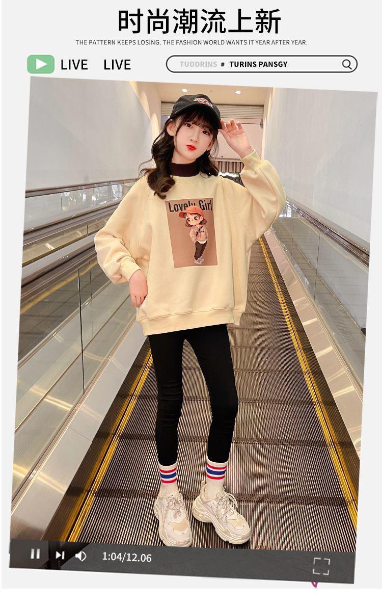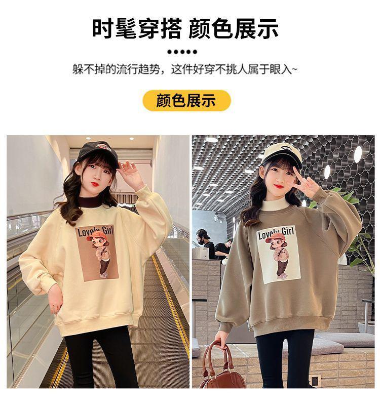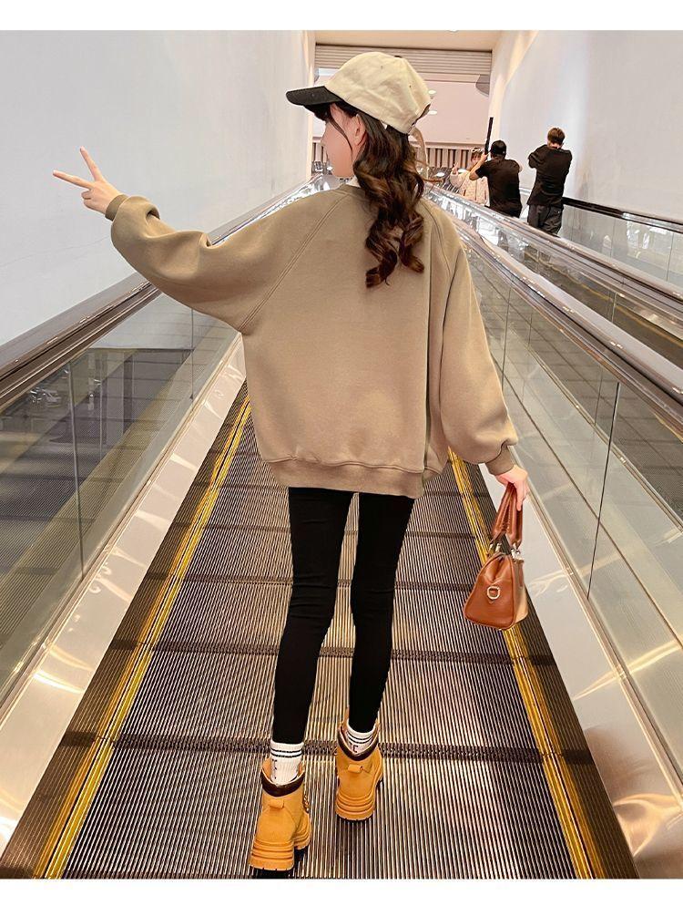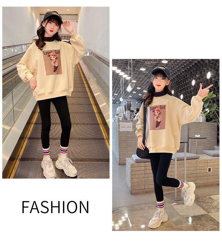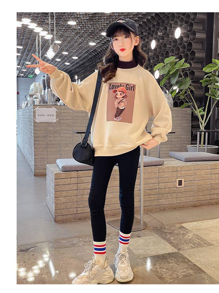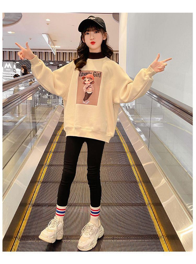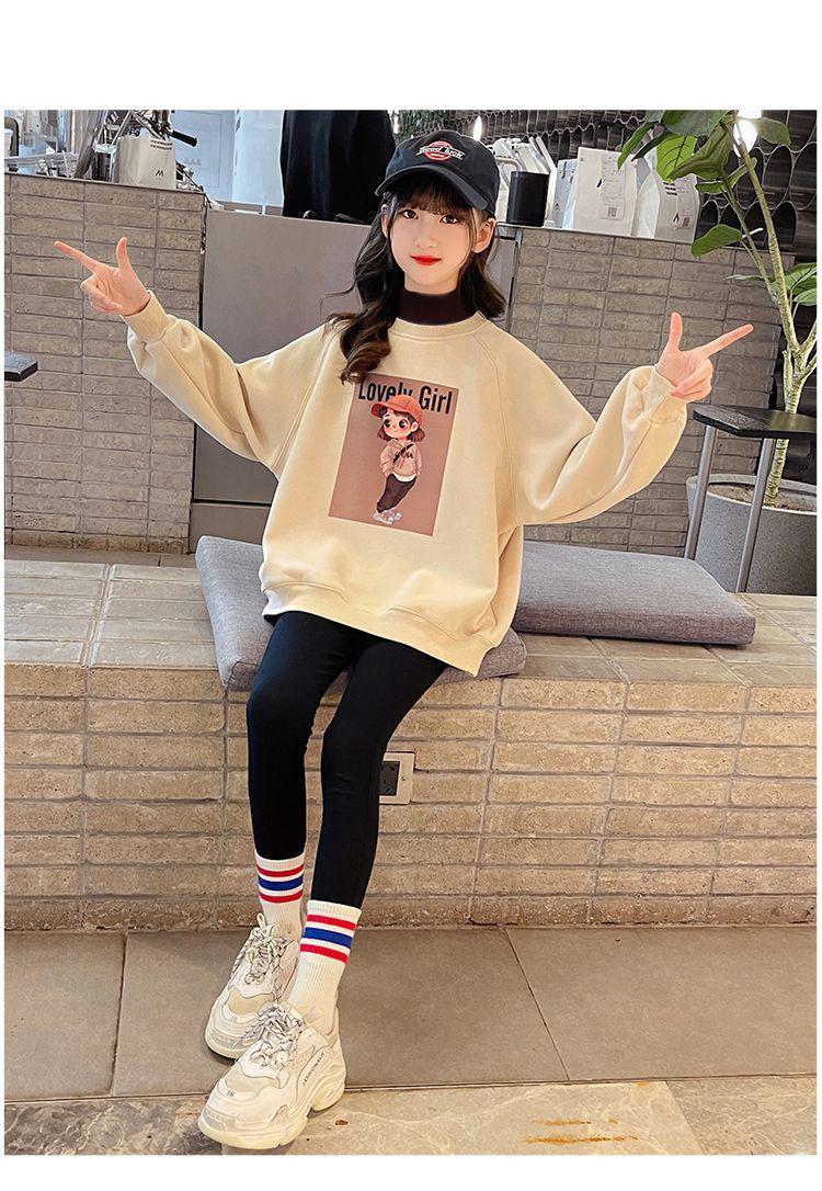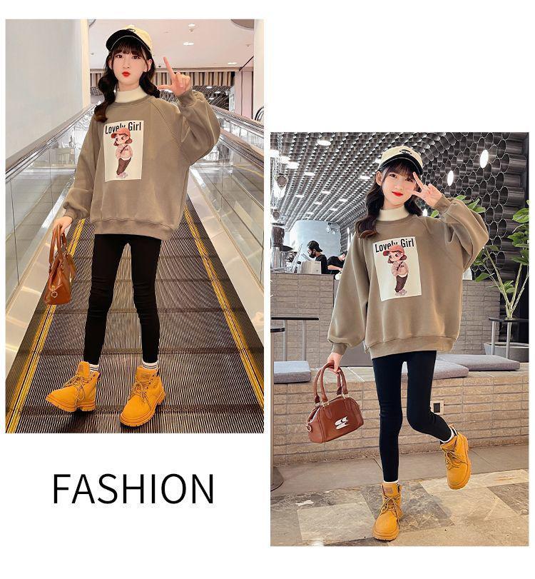 Sudadera Gruesa para Niñas con Forro Polar 2025 Otoño e Invierno Nuevo Estilo para Niños Mayores, Manga Raglán con Bloques de Color, Top Casual Versátil con Dibujos Animados