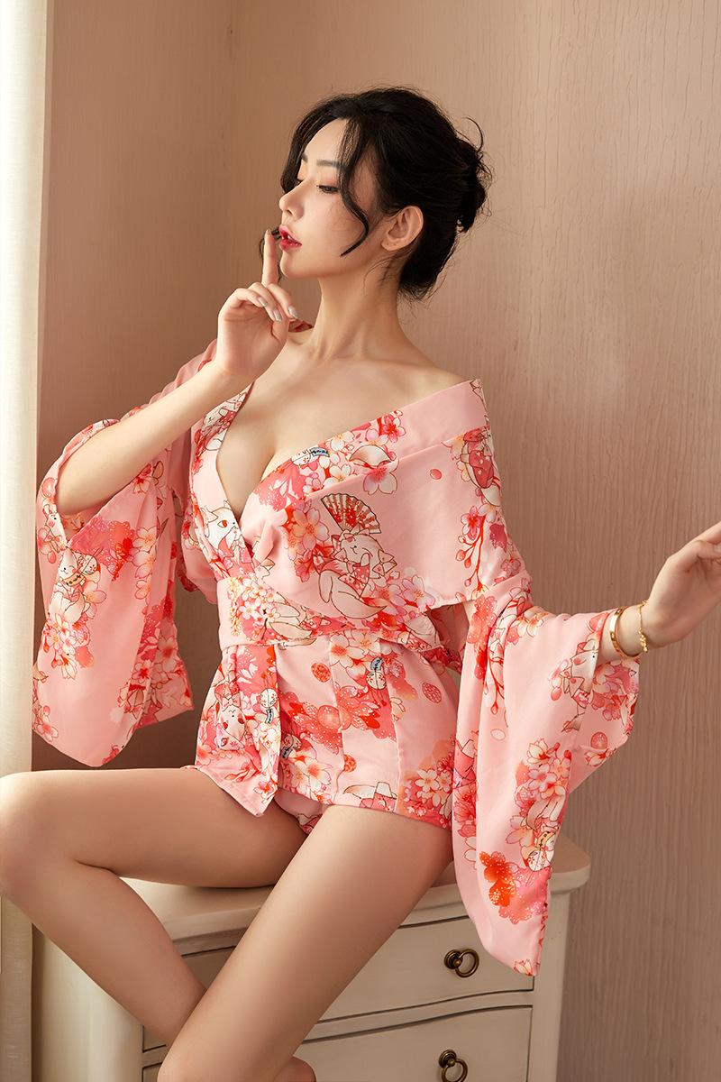 Lencería Sexy Kimono Japonés Streamer Femenino Uniforme Sexy Pasión de Club Nocturno Traje Estilo Bruja