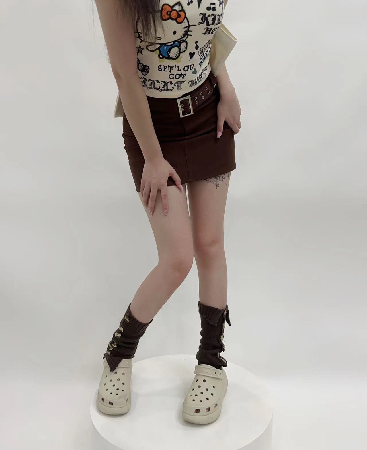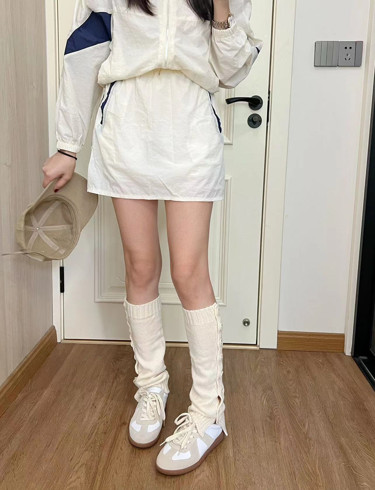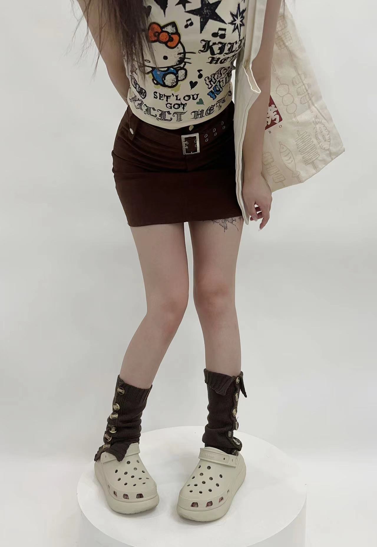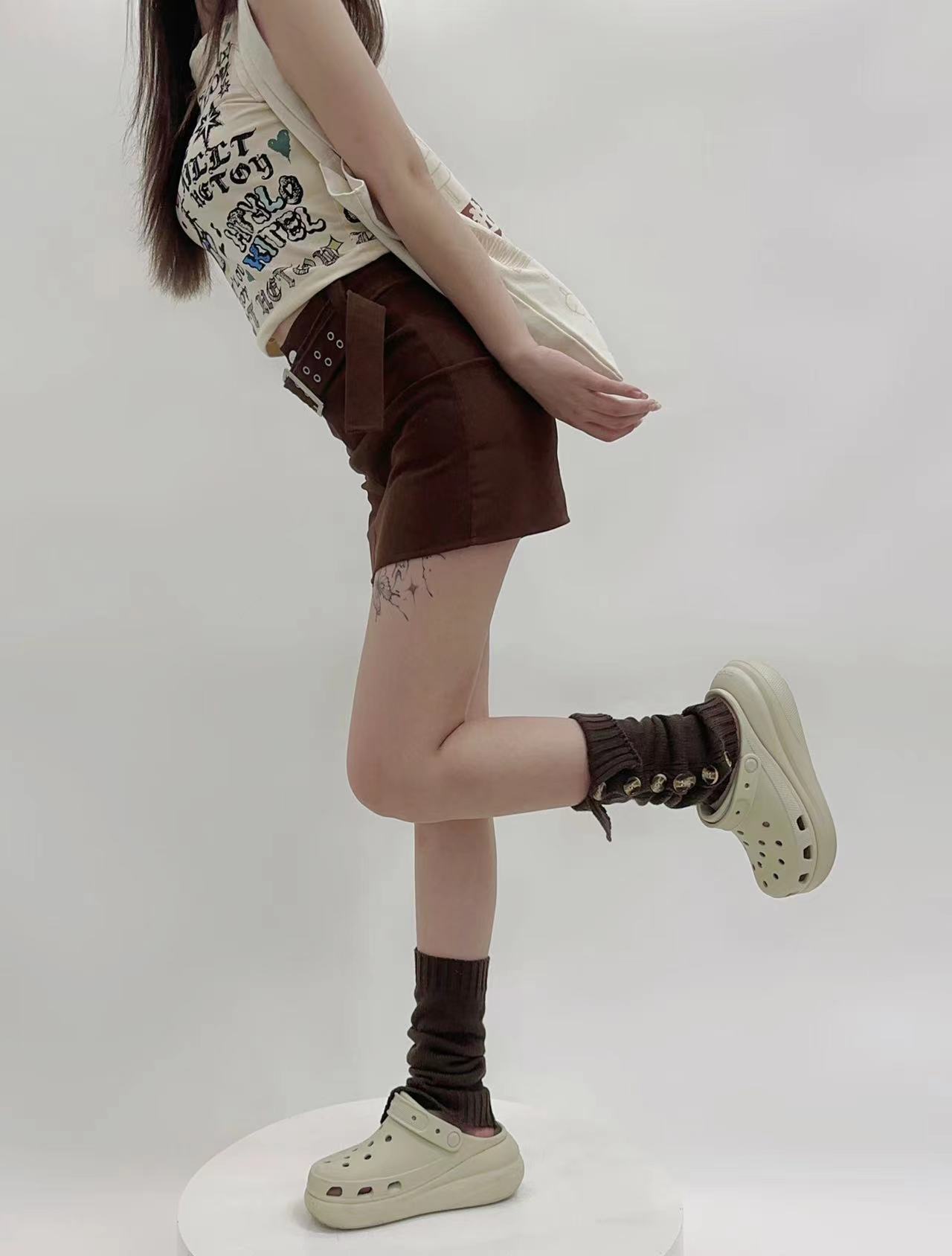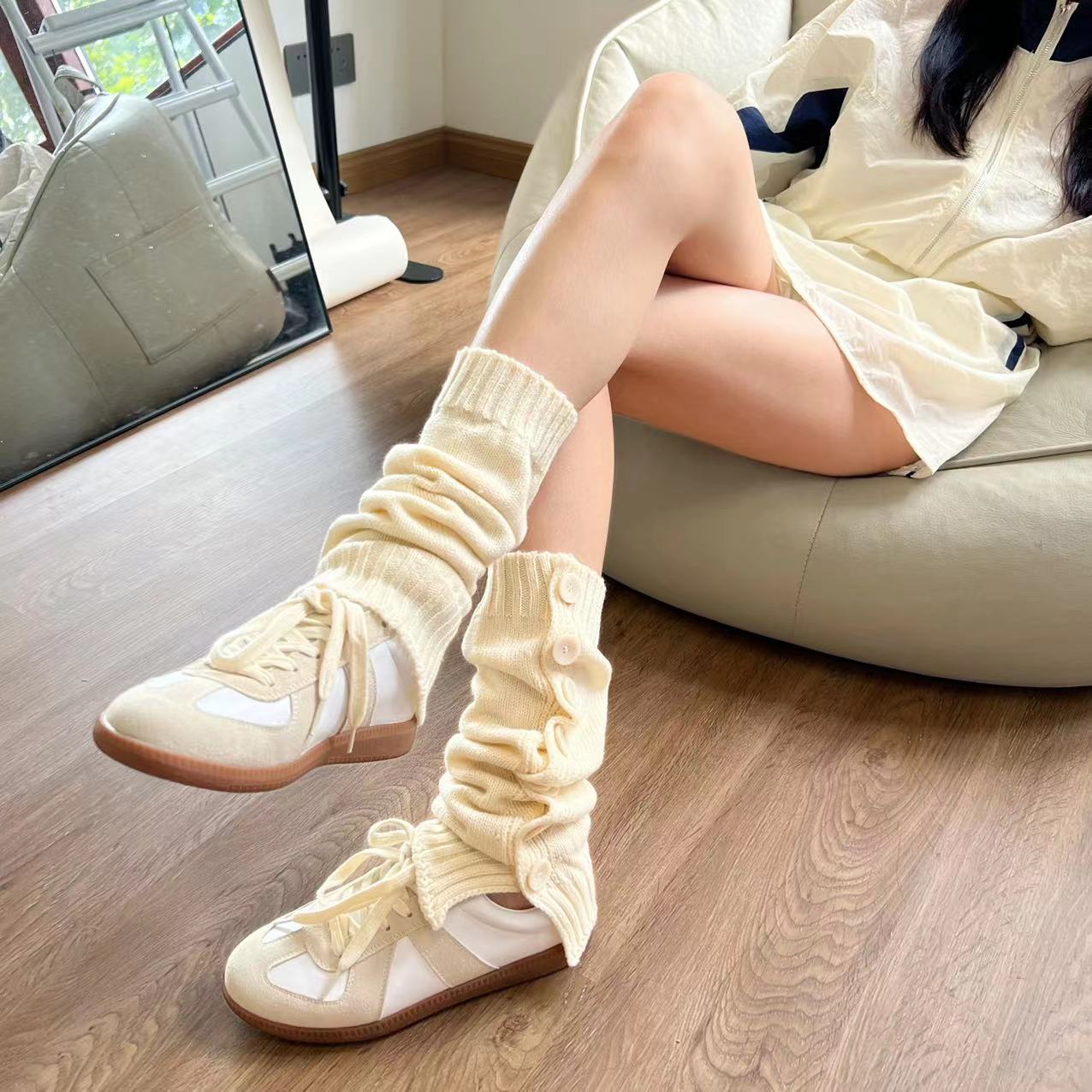Calcetines de otoño e invierno con nuevo diseño de cubierta de pierna, versátiles, de lana tejida a mano, ajustables, con hebillas retorcidas múltiples, para mujer