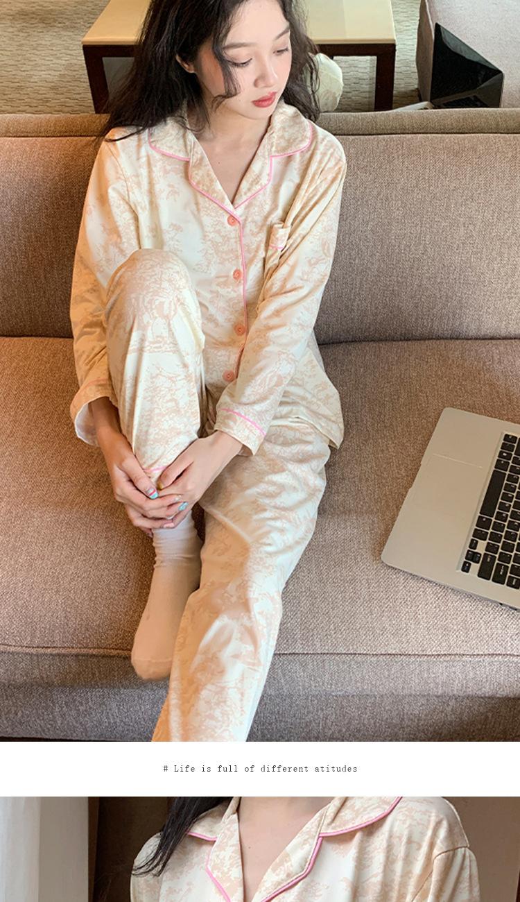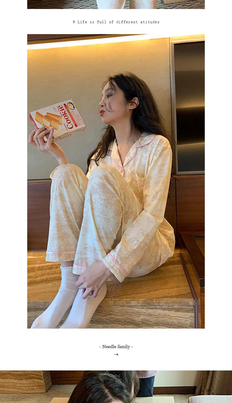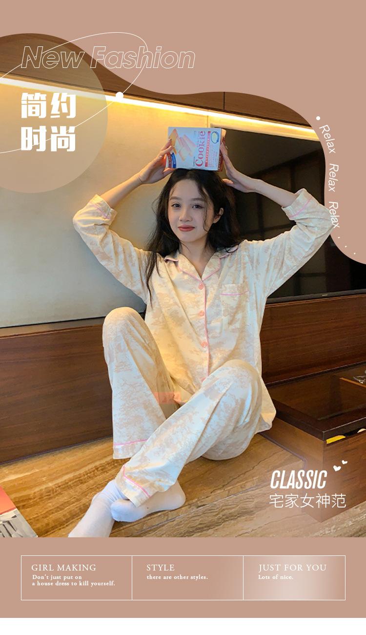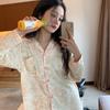 Pijamas de dibujos animados de estilo coreano para niña, pantalones de manga larga con estampado de animales para mujer, conjunto de dos piezas para el hogar, venta al por mayor