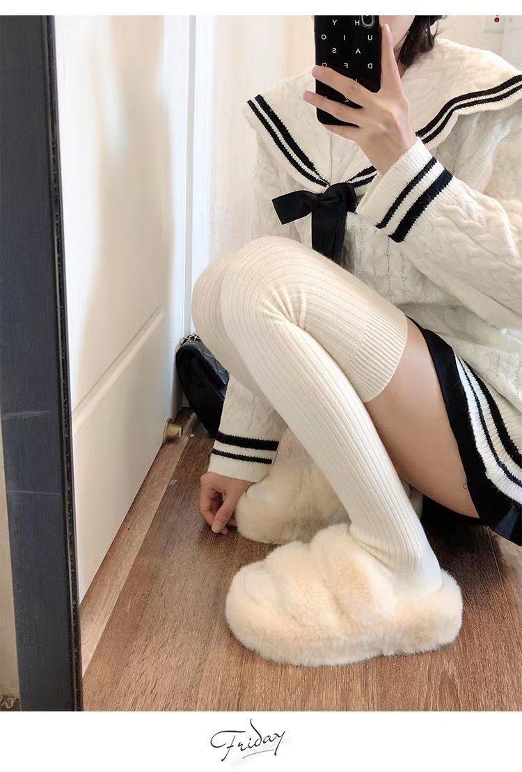 Calcetines hasta el muslo, medias por encima de la rodilla, calcetines altos alargados blancos gruesos para mujer, calcetines adelgazantes con rayas verticales, calcetines cálidos hasta la rodilla