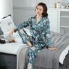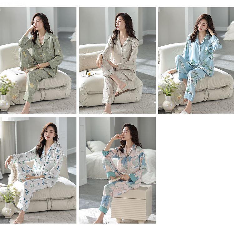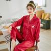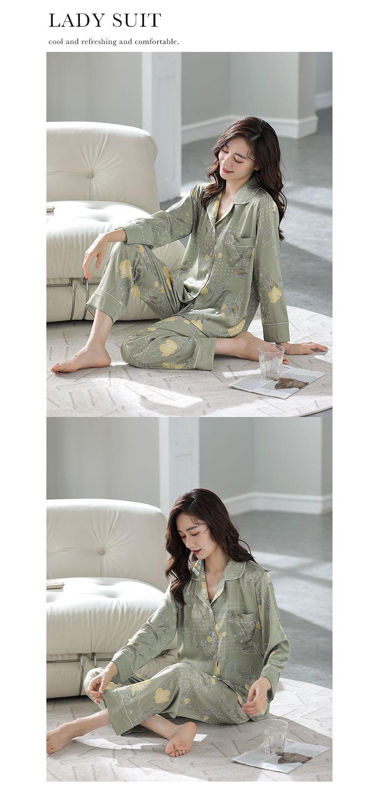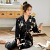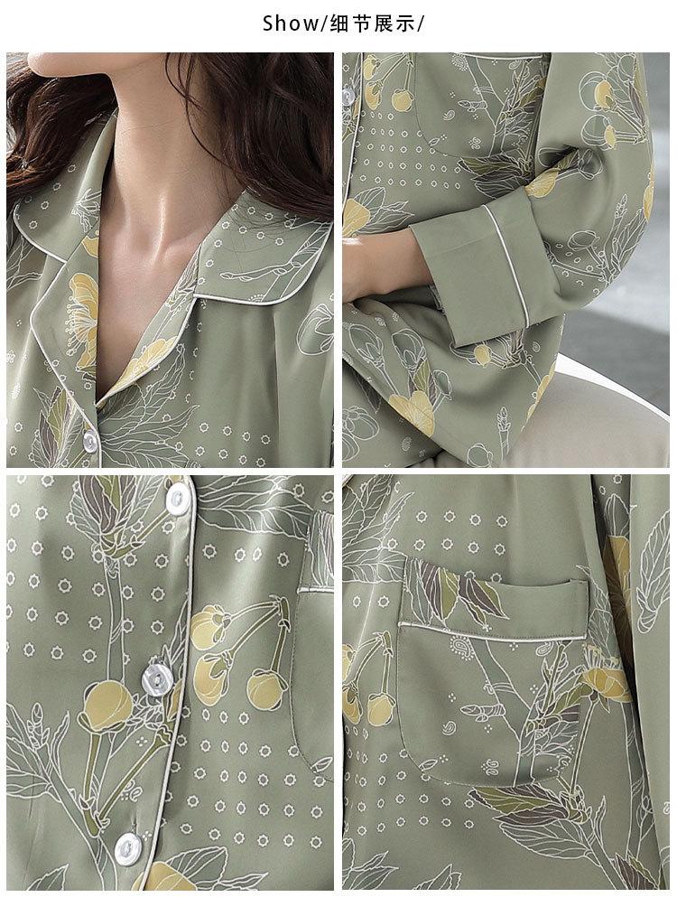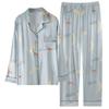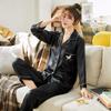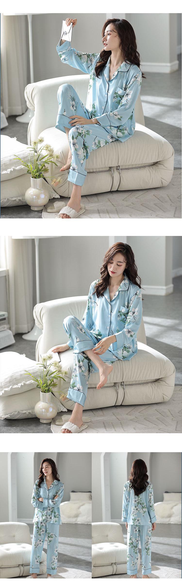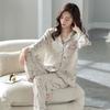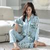 Pijamas de seda Han Yatong para mujer, primavera y otoño, nuevos, de manga larga, estampados, de imitación de seda, ropa para el hogar, traje de seda helada, verano