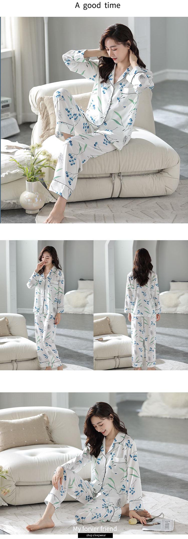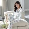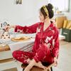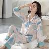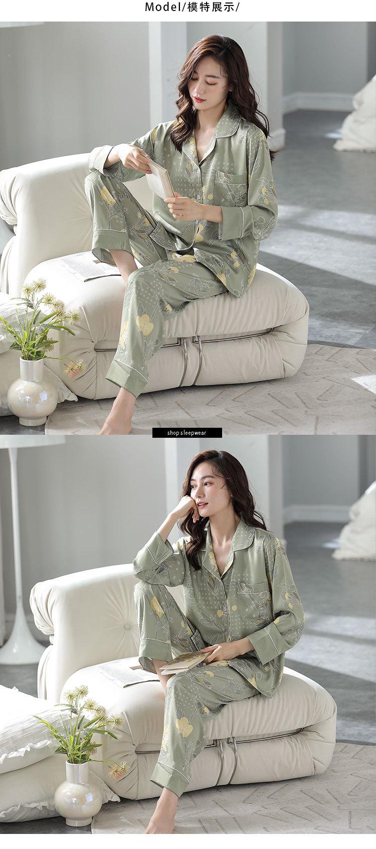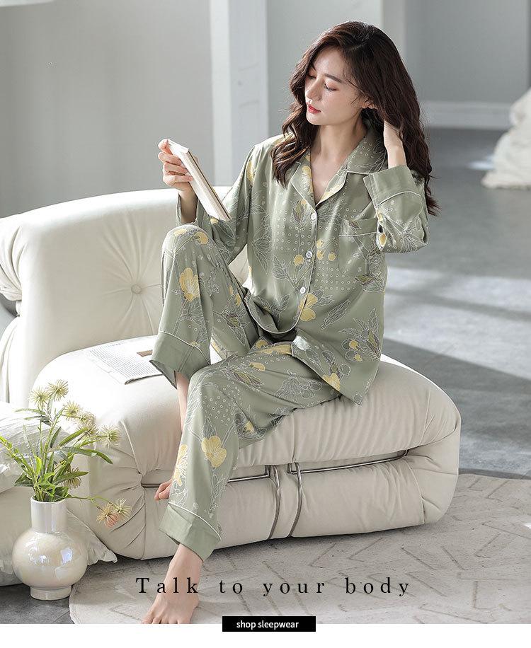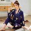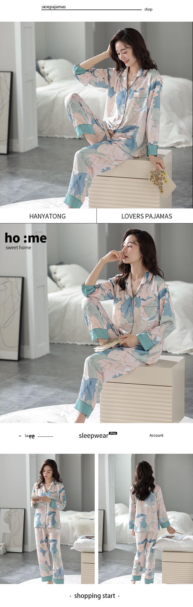 Pijamas de seda Han Yatong para mujer, primavera y otoño, nuevos, de manga larga, estampados, de imitación de seda, ropa para el hogar, traje de seda helada, verano