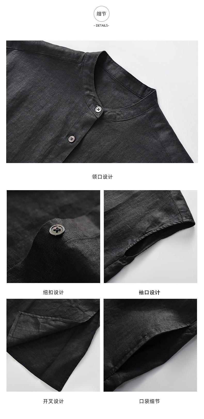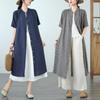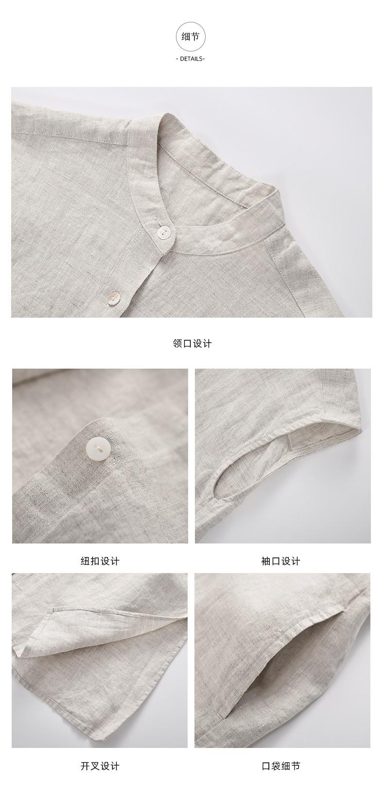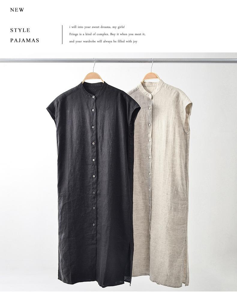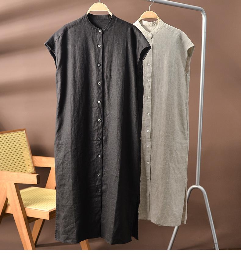 Vestido de Lino Japonés de Verano de Manga Corta para Mujer Talla Grande Lavado Cuello Mao Falda Suelta Camisa Casual Falda Larga