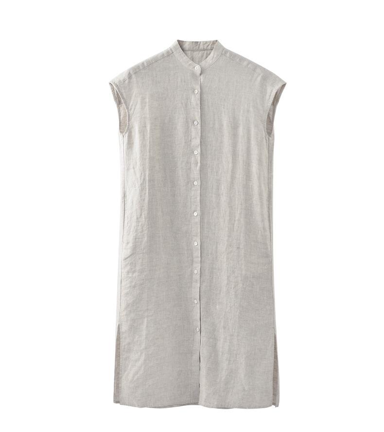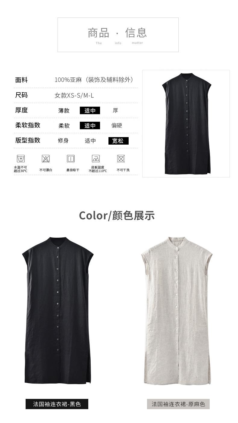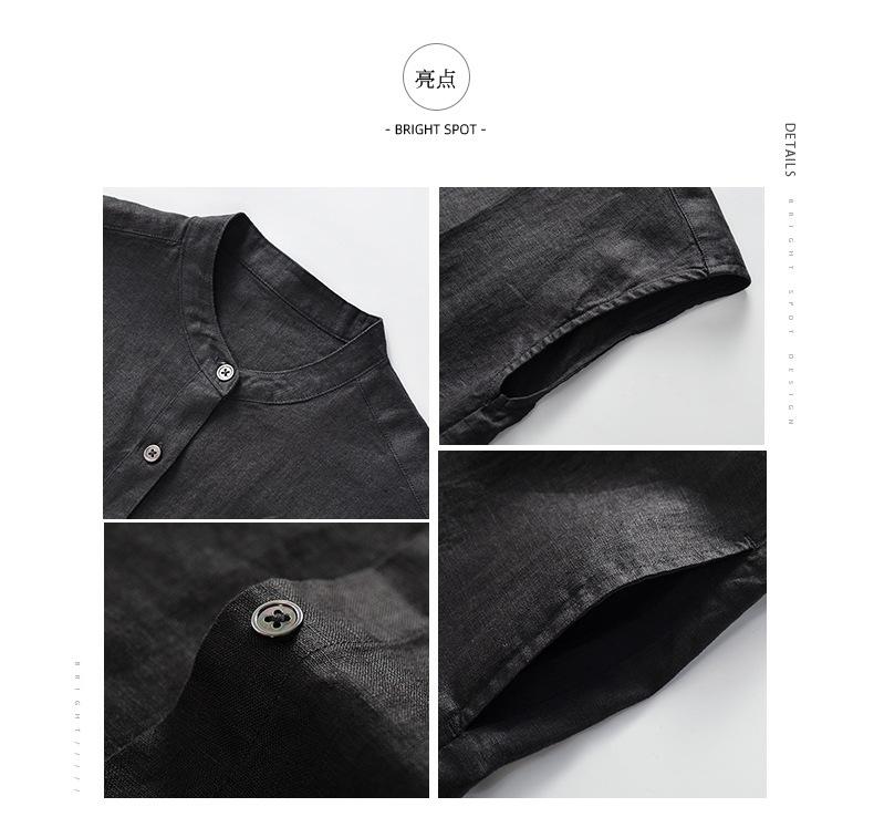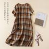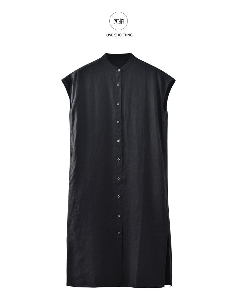 Vestido de Lino Japonés de Verano de Manga Corta para Mujer Talla Grande Lavado Cuello Mao Falda Suelta Camisa Casual Falda Larga