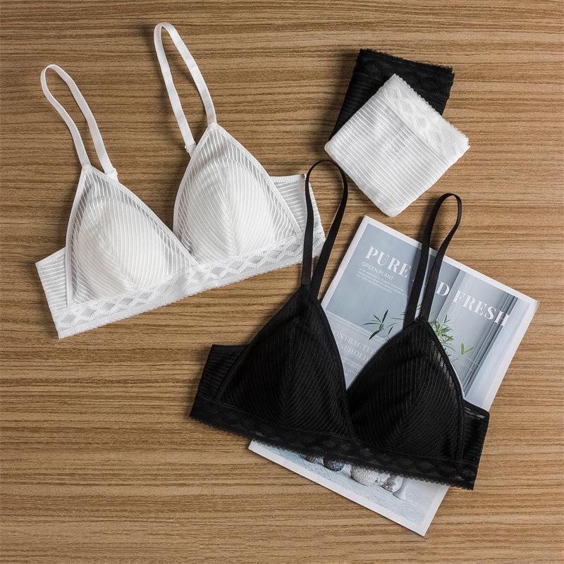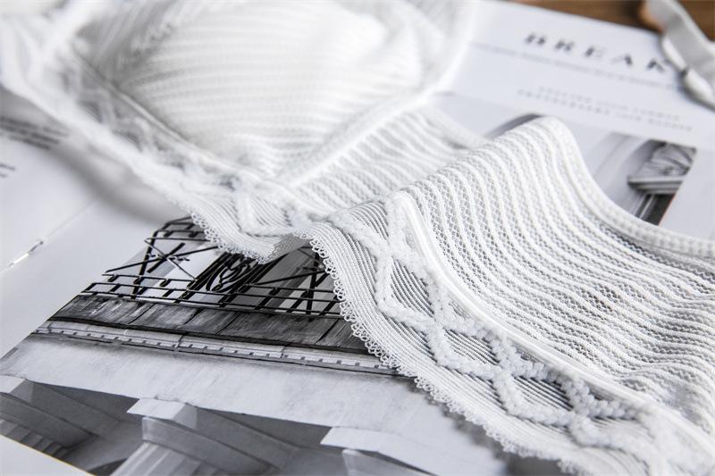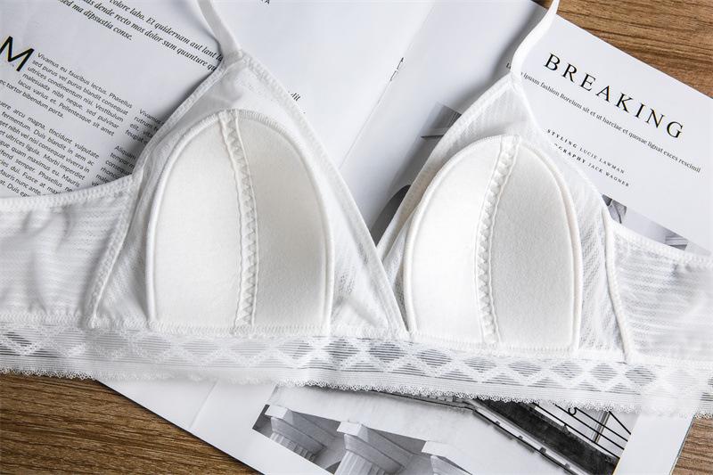 Sujetador de encaje con escote en V profundo y orejas de conejo sexy, fino, estilo francés, ropa interior inalámbrica, tentación, estilo puro deseo, traje de sujetador para mujer