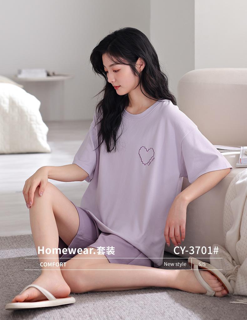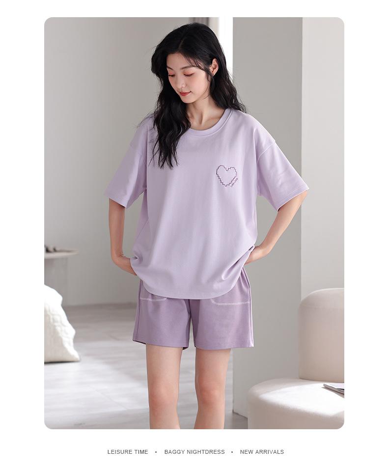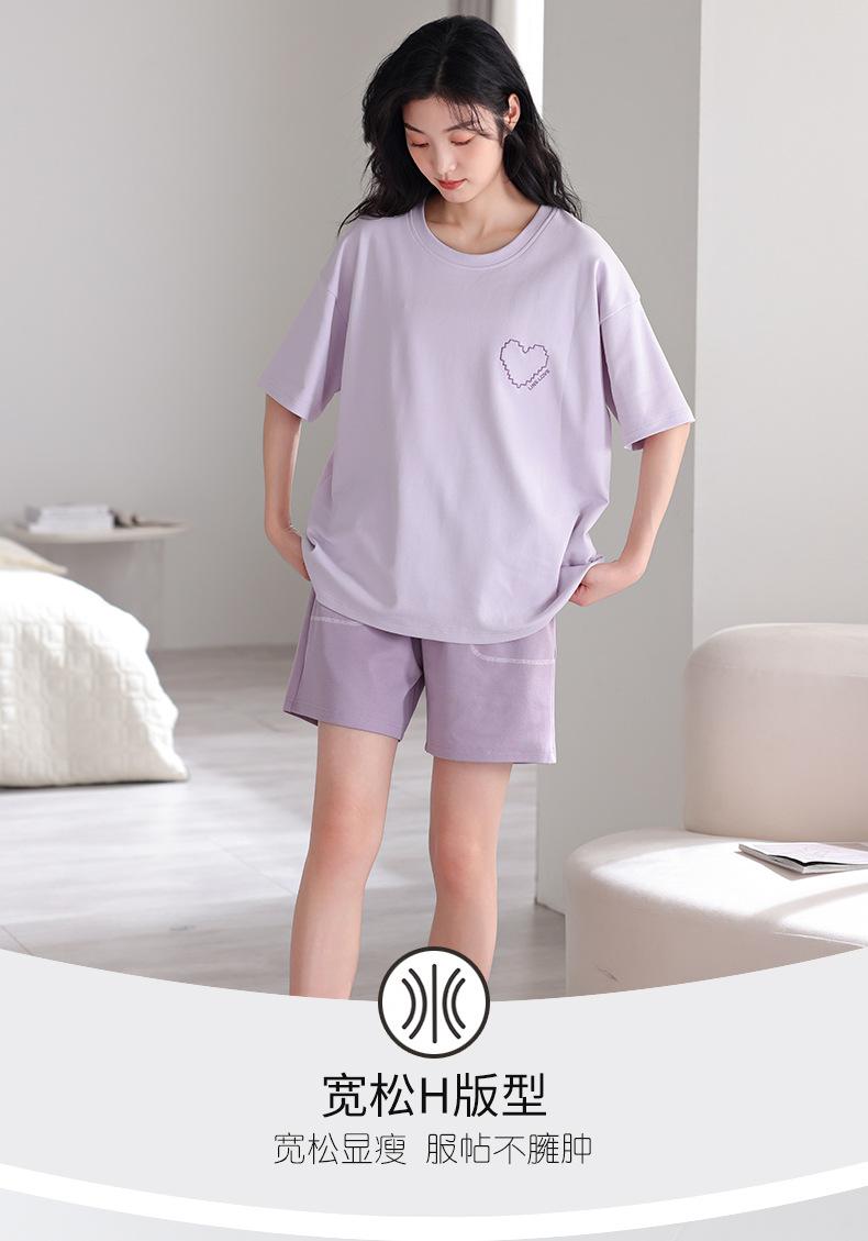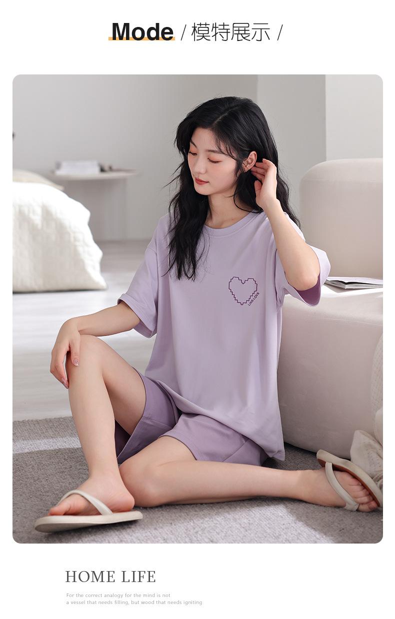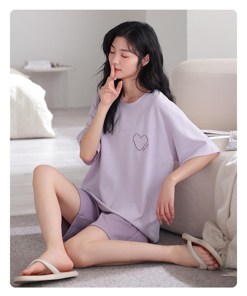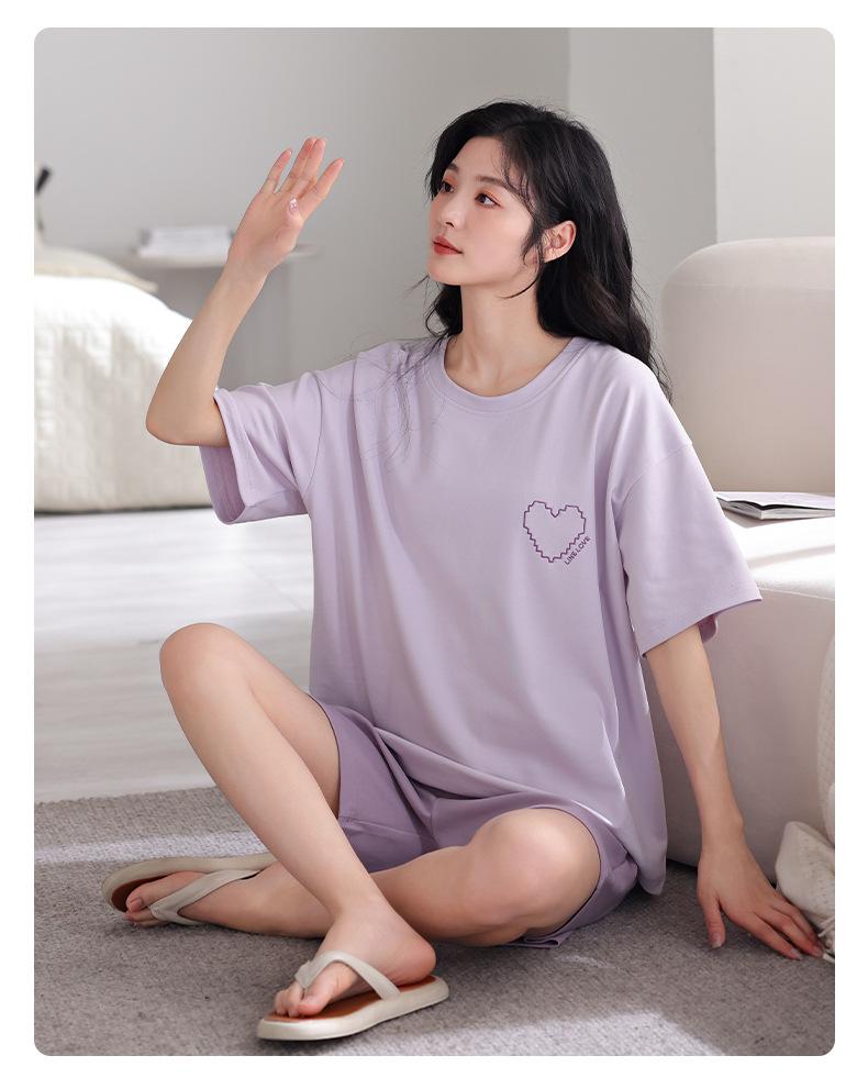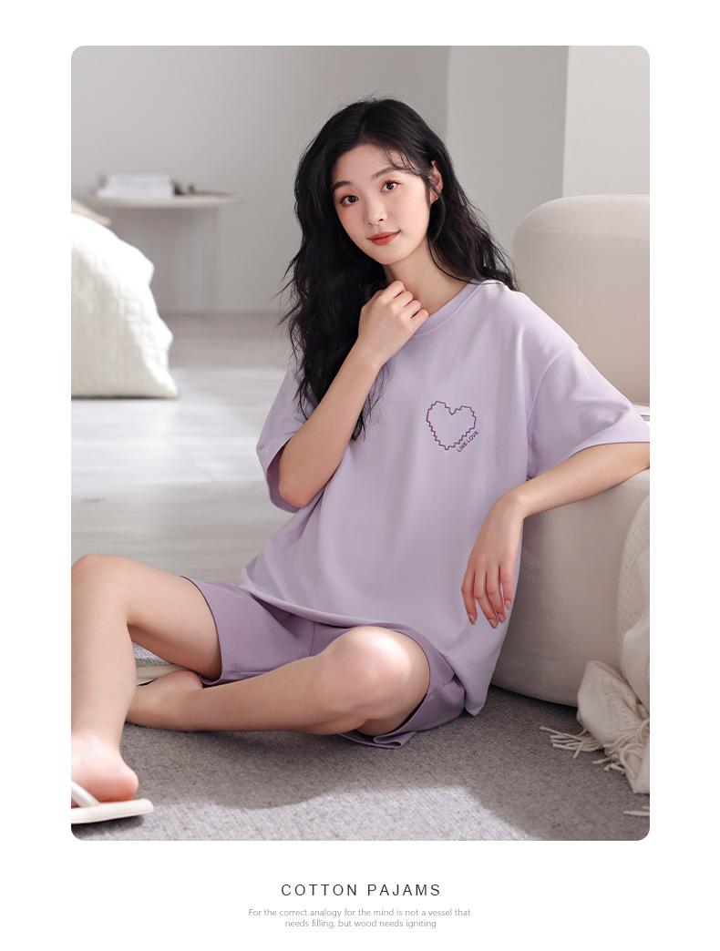 Pijama de Verano 2025 para Mujer de Algodón Puro de Manga Corta Suelto Talla Grande Traje Delgado Se Puede Usar Afuera Estilo Simple Ropa para el Hogar