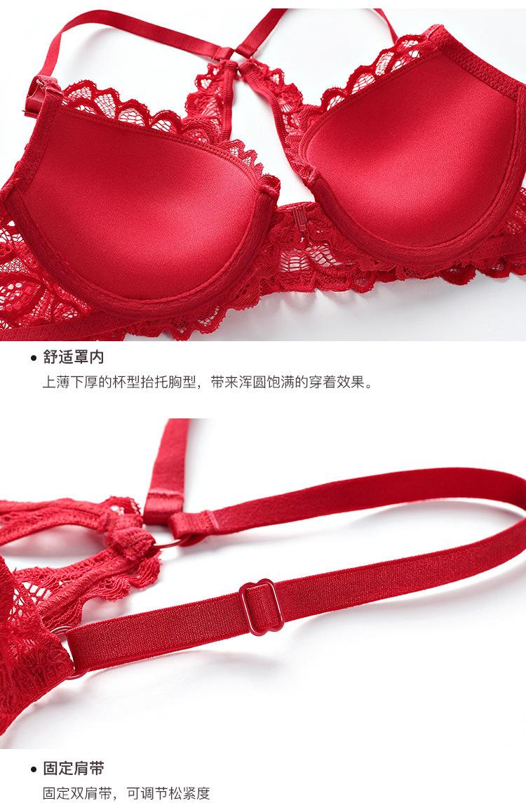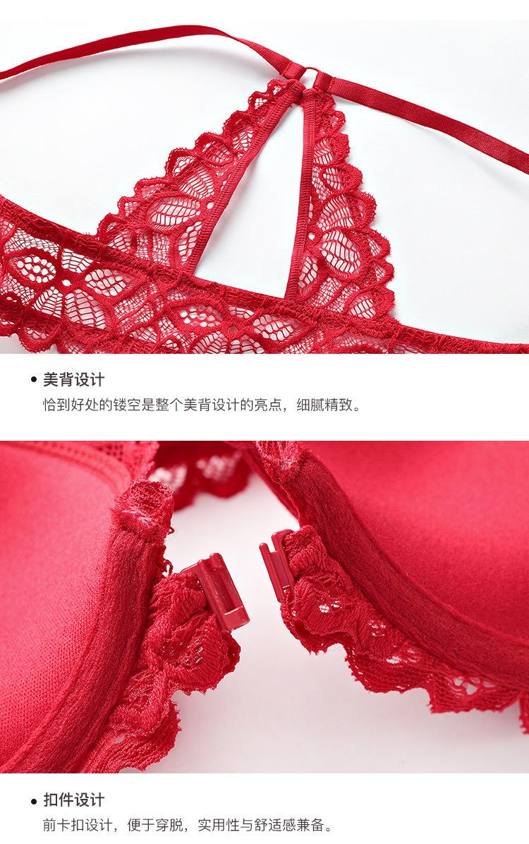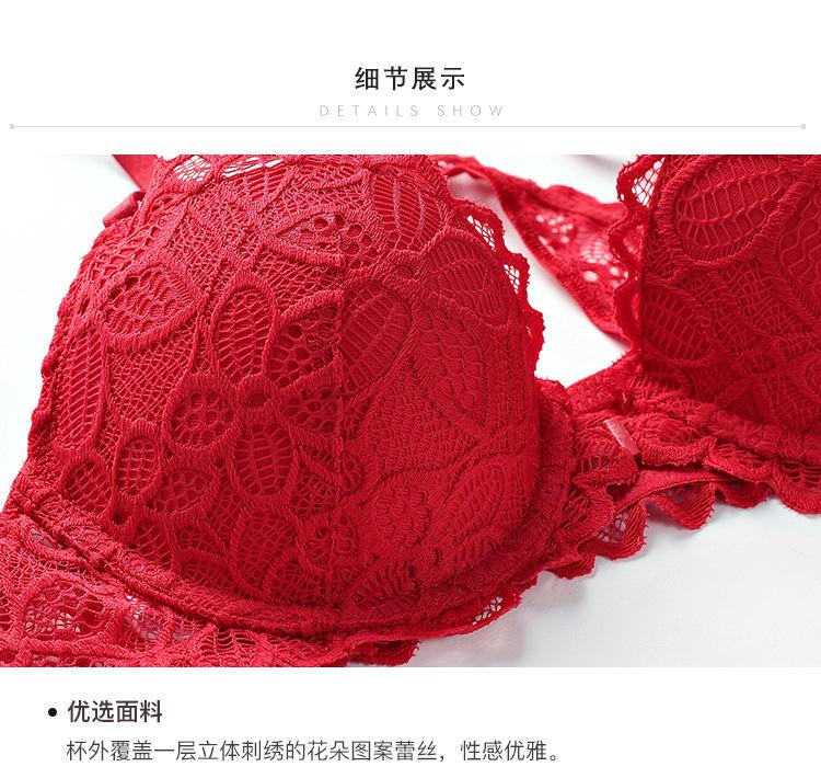Ropa Interior Sexy de Encaje Francés Transfronterizo Botón Delantero Hermoso Sujetador de Espalda Rojo Año Animal Sujetador Push-Up para Mujer