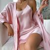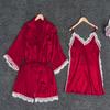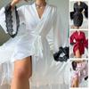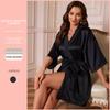 Camisón de seda helada de primavera y verano, pijama sexy de alta gama, cárdigan, bata de encaje para mujer, traje sexy