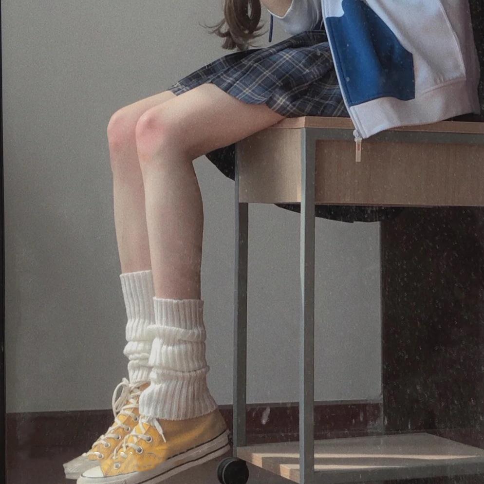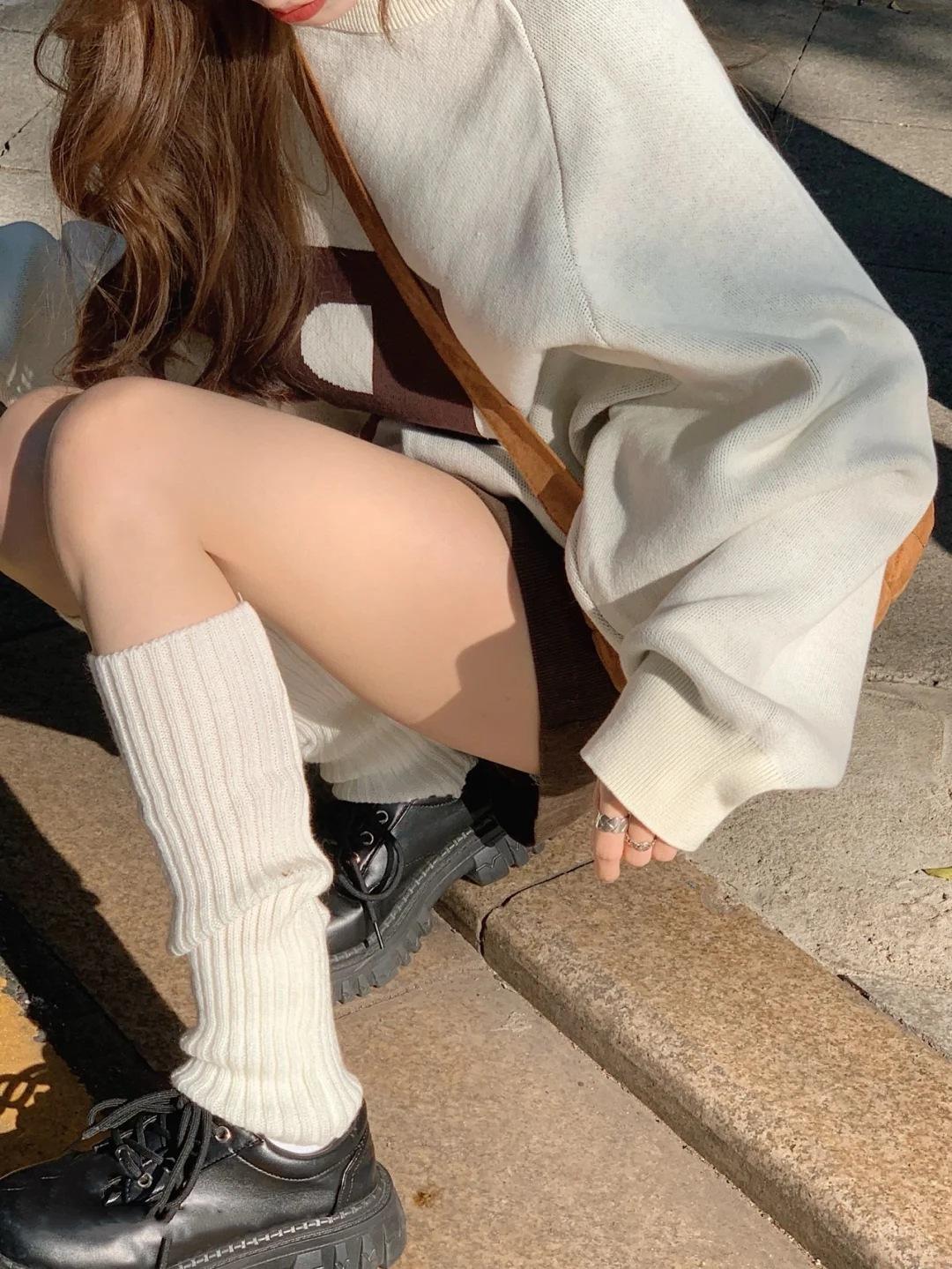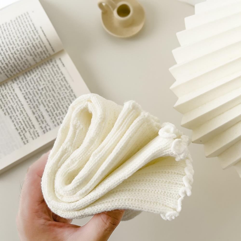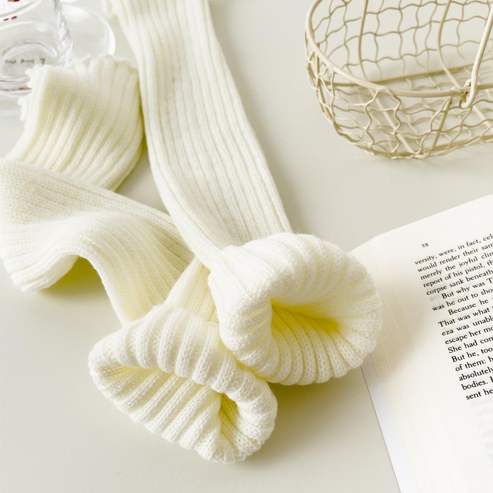 Calcetines de Punto JK de Rayas Verticales para Mujer Blancos Largos hasta la Pantorrilla Cubrepiernas Otoño e Invierno Cálidos Calcetines Apilados Lolita Combinan con Todo