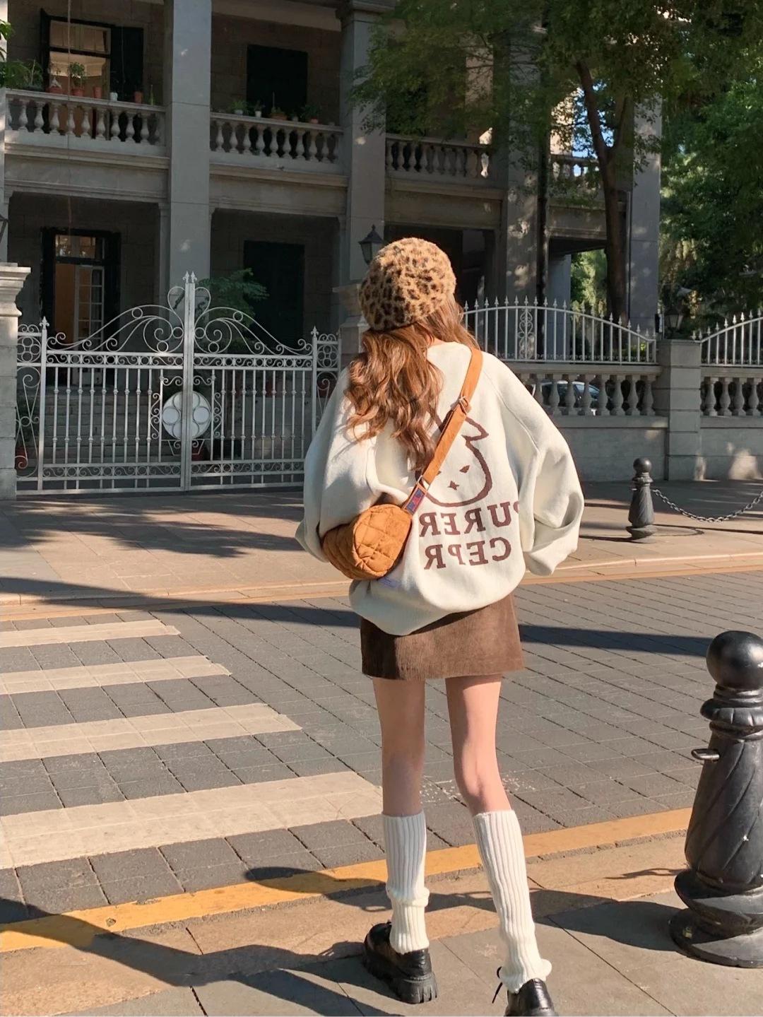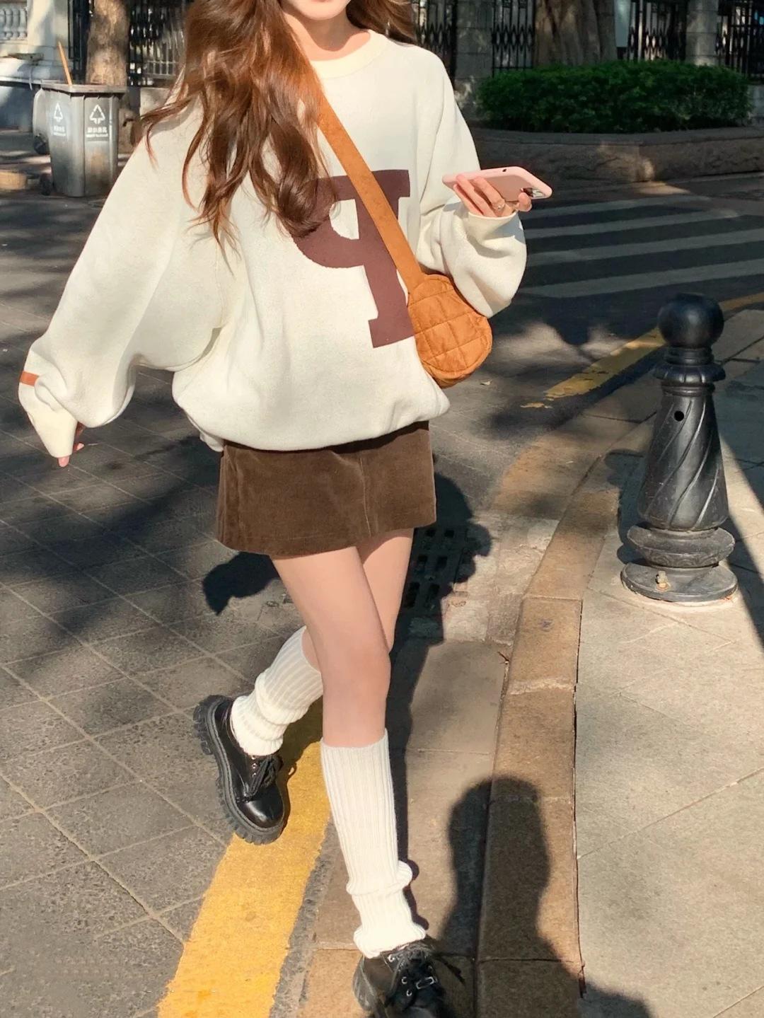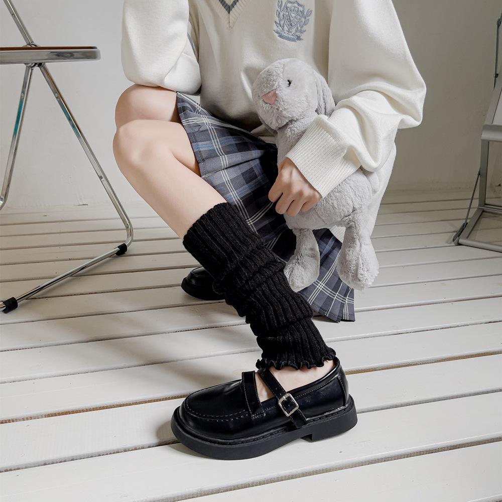 Calcetines de Punto JK de Rayas Verticales para Mujer Blancos Largos hasta la Pantorrilla Cubrepiernas Otoño e Invierno Cálidos Calcetines Apilados Lolita Combinan con Todo