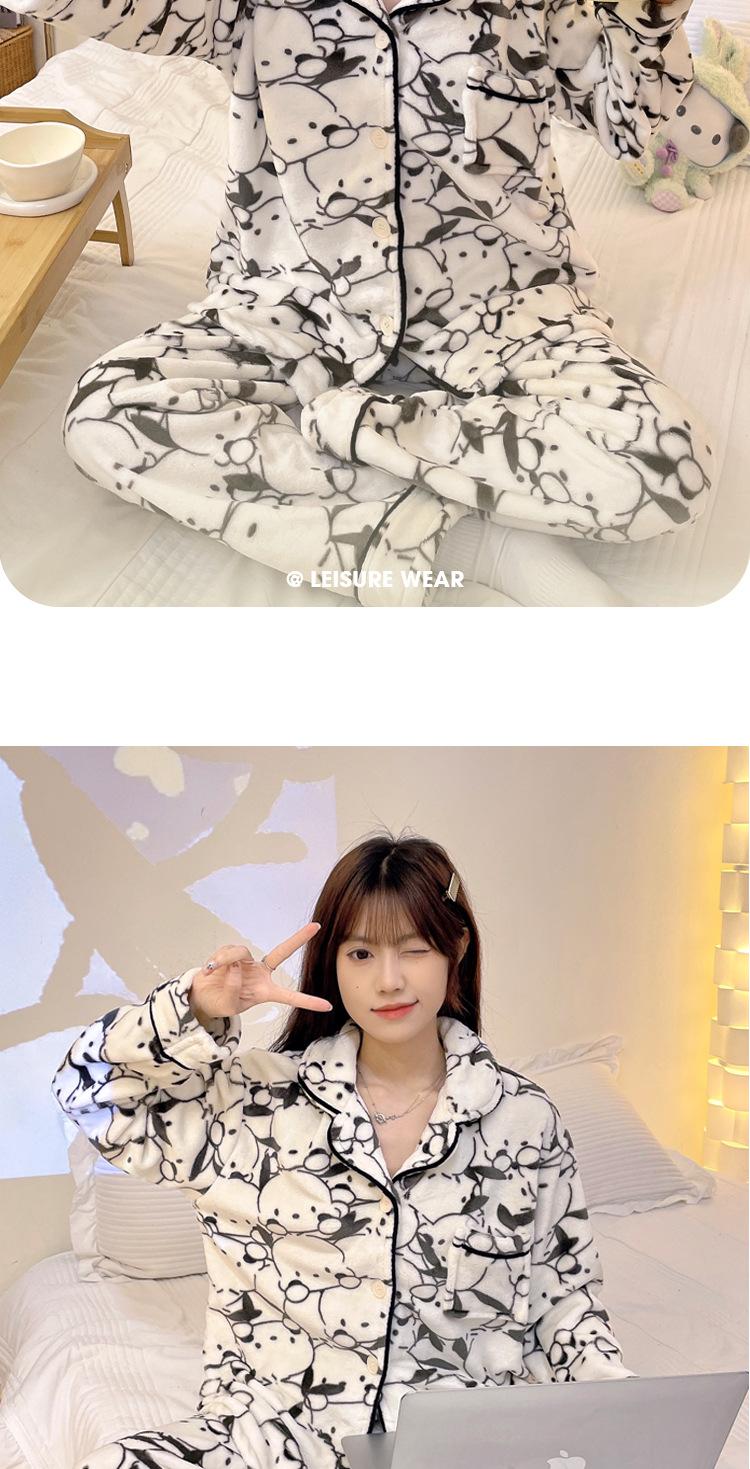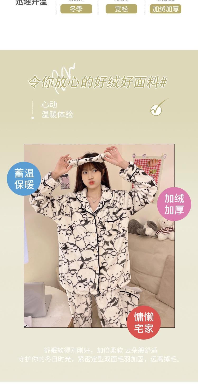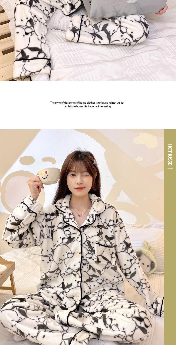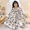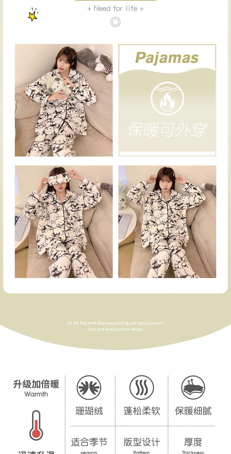 Pijama de Terciopelo Coral con Estampado Completo de Cachorros para Mujer Otoño e Invierno Nuevo Cárdigan Terciopelo Grueso Franela Cálido Traje Venta al por Mayor