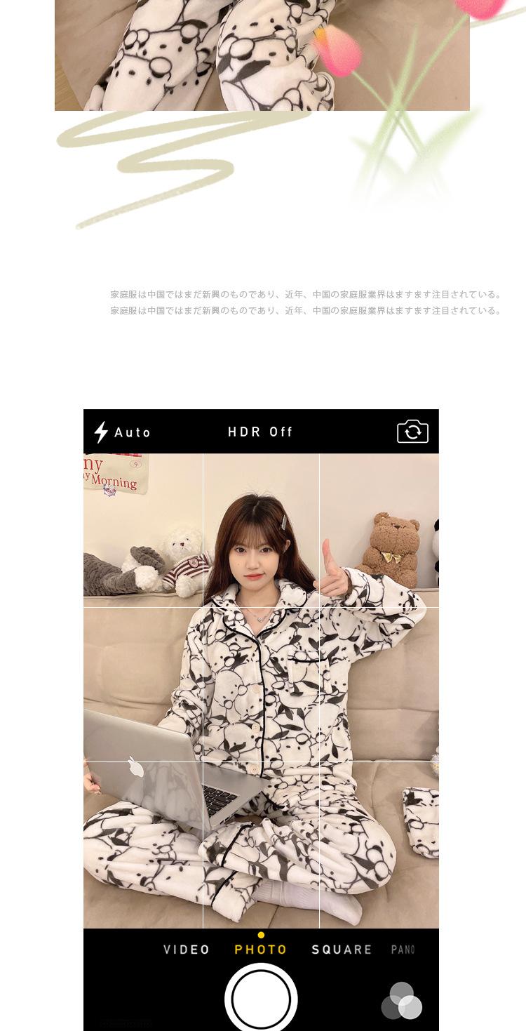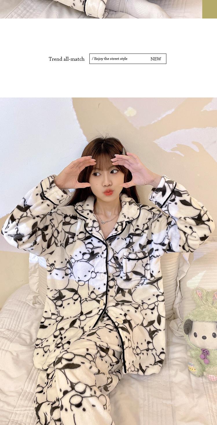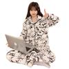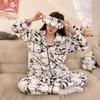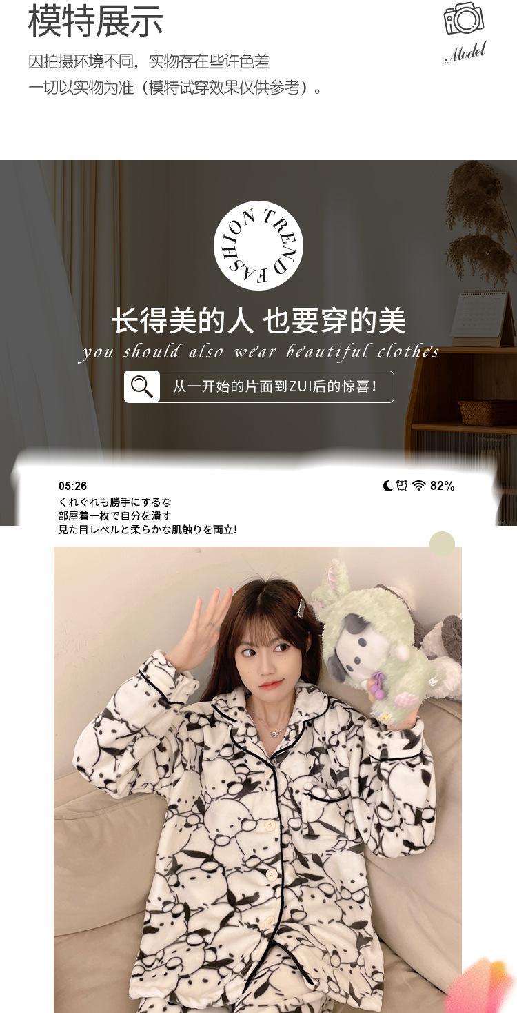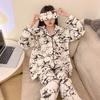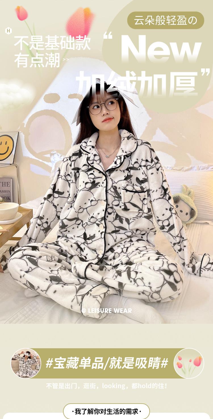 Pijama de Terciopelo Coral con Estampado Completo de Cachorros para Mujer Otoño e Invierno Nuevo Cárdigan Terciopelo Grueso Franela Cálido Traje Venta al por Mayor