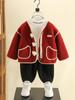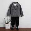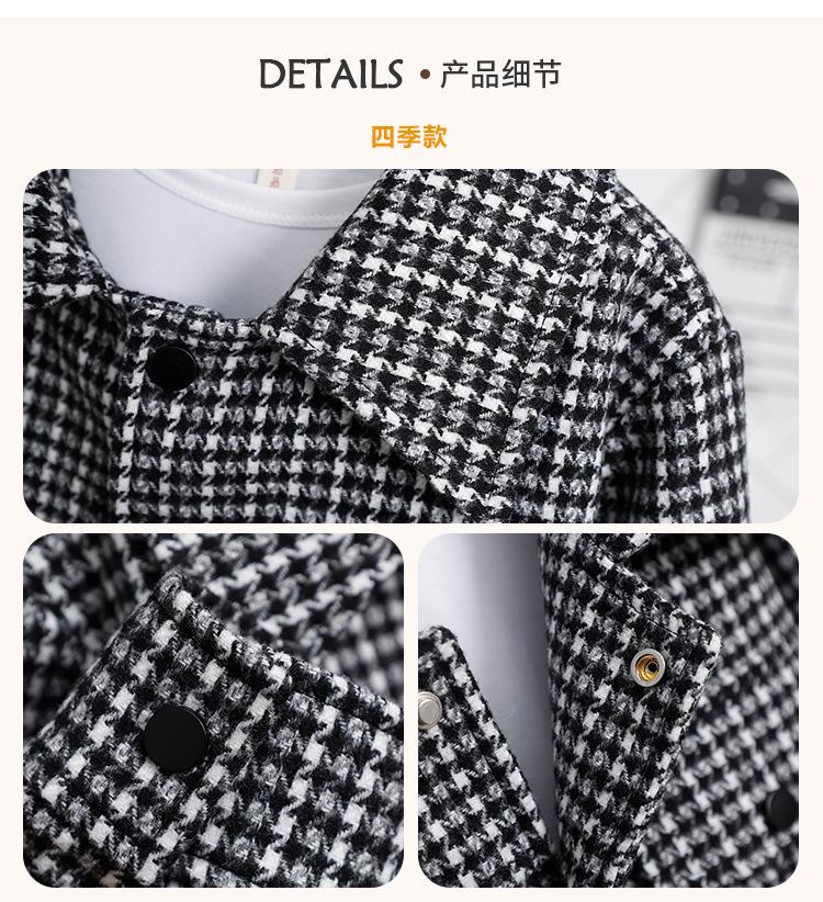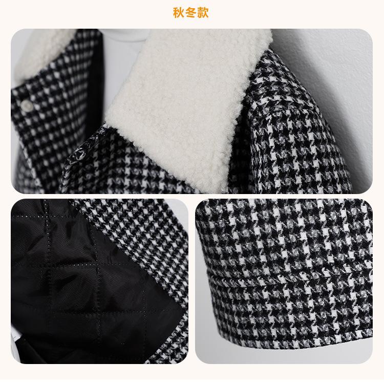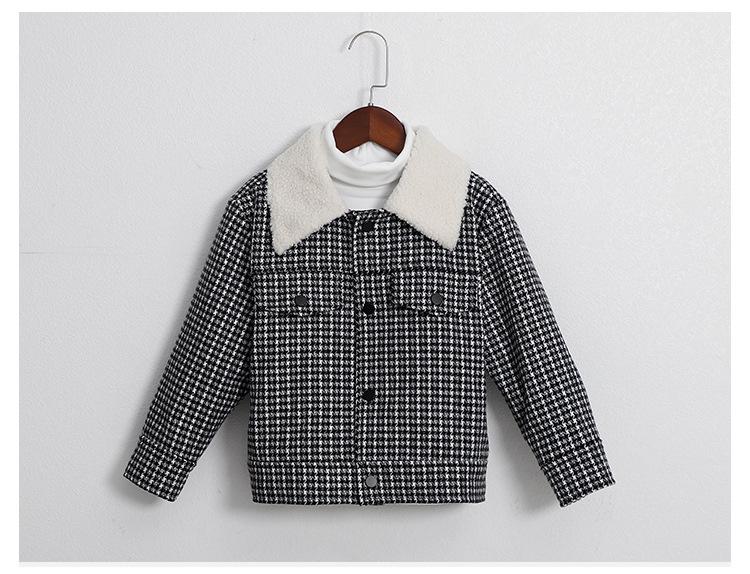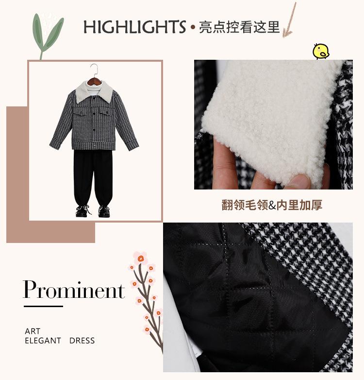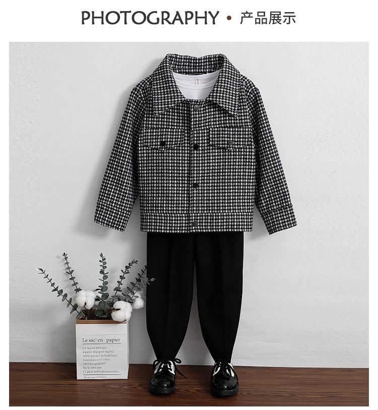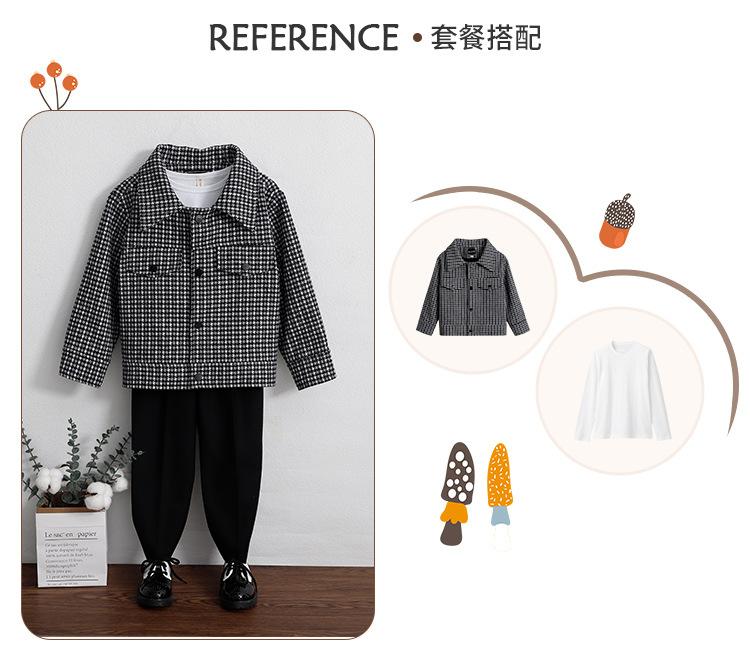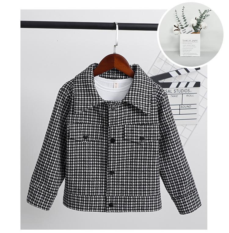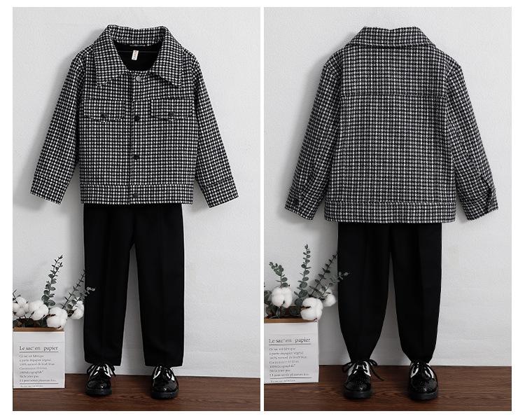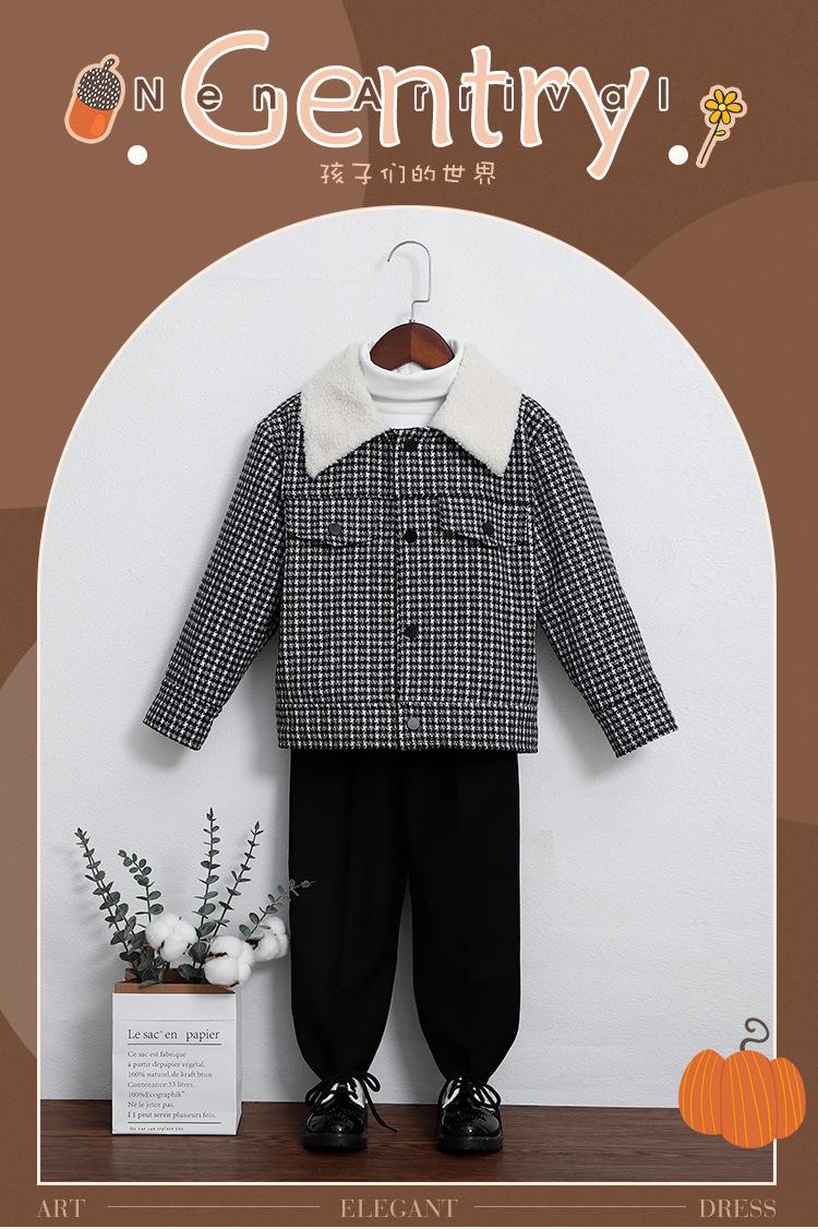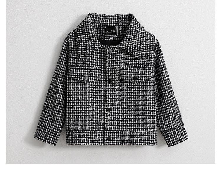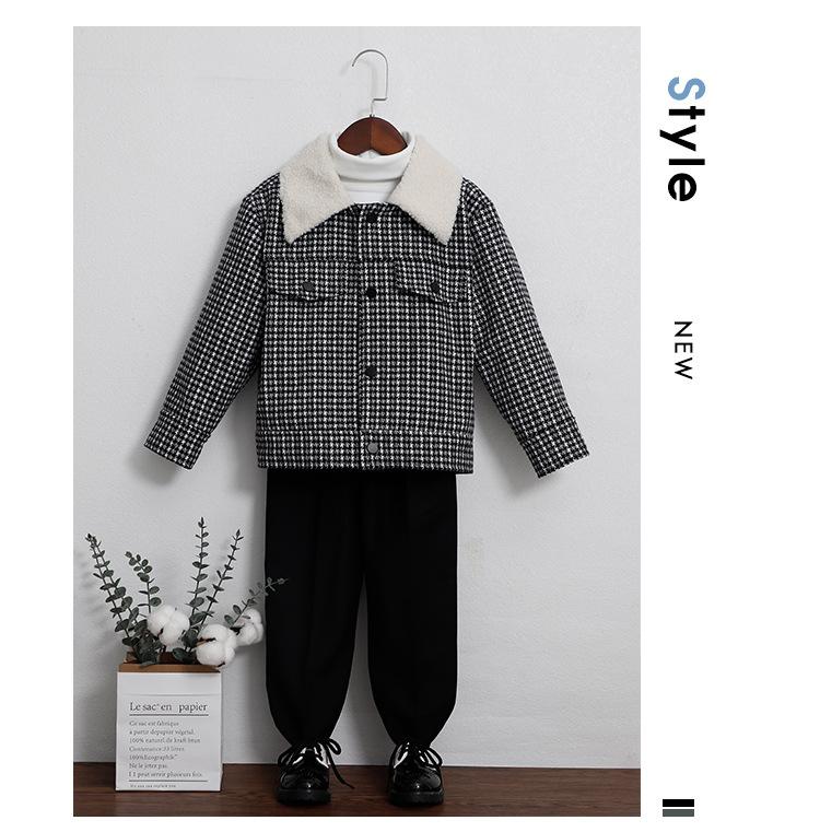 Abrigo a cuadros grueso de otoño e invierno para niños, abrigo de lana acolchado de estilo occidental para niños de talla mediana y grande, ropa de actuación para anfitriones